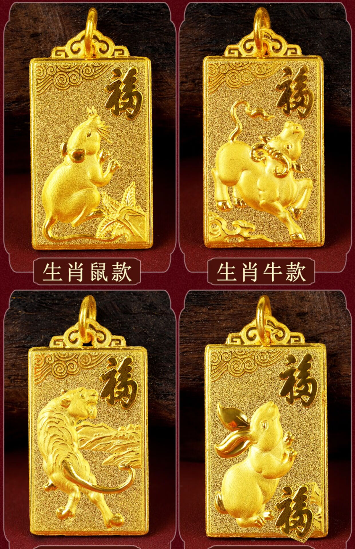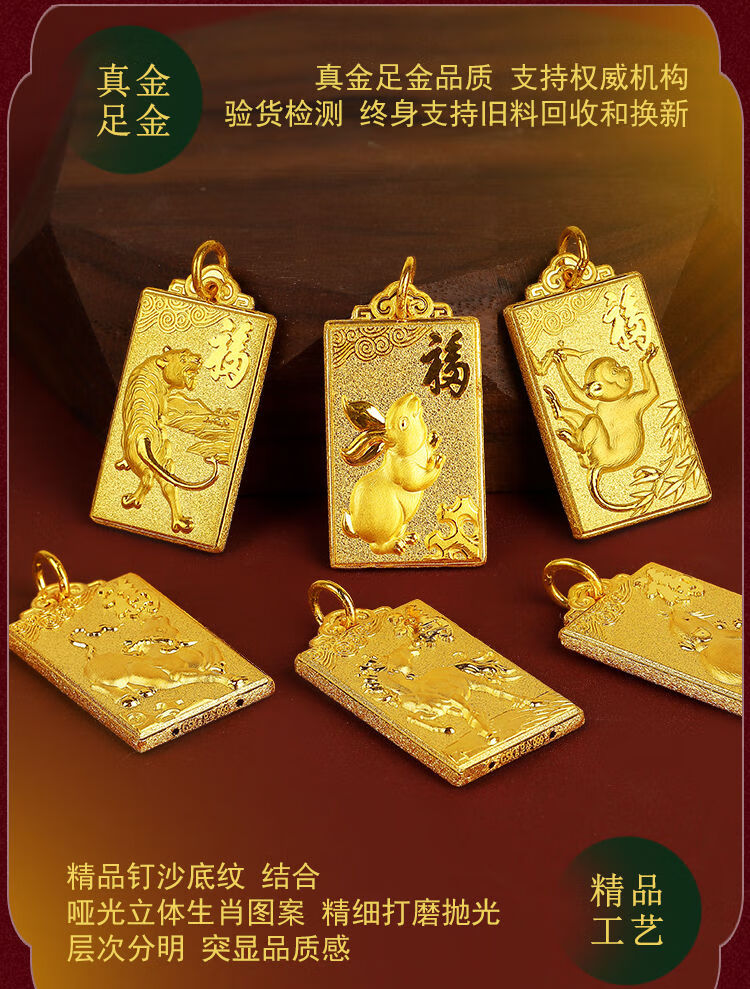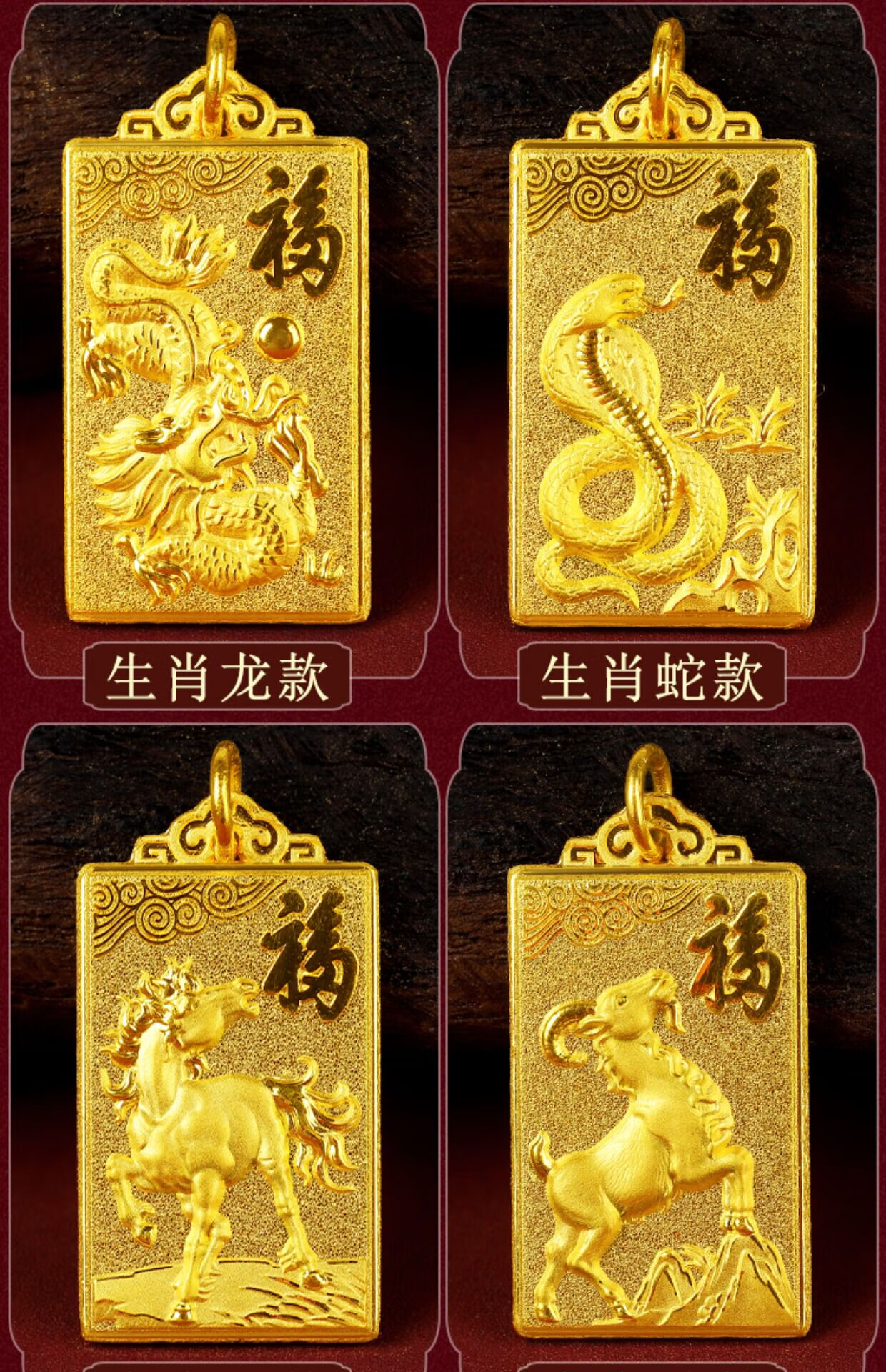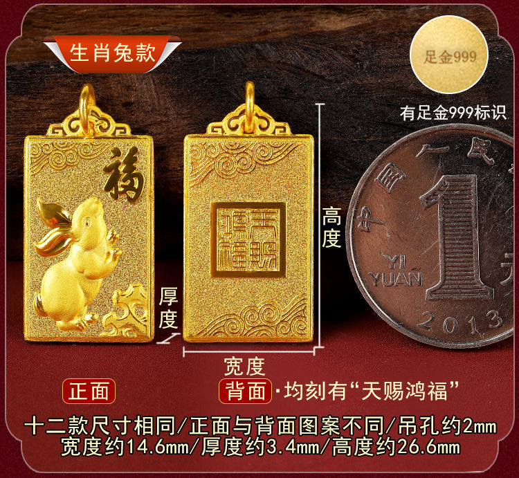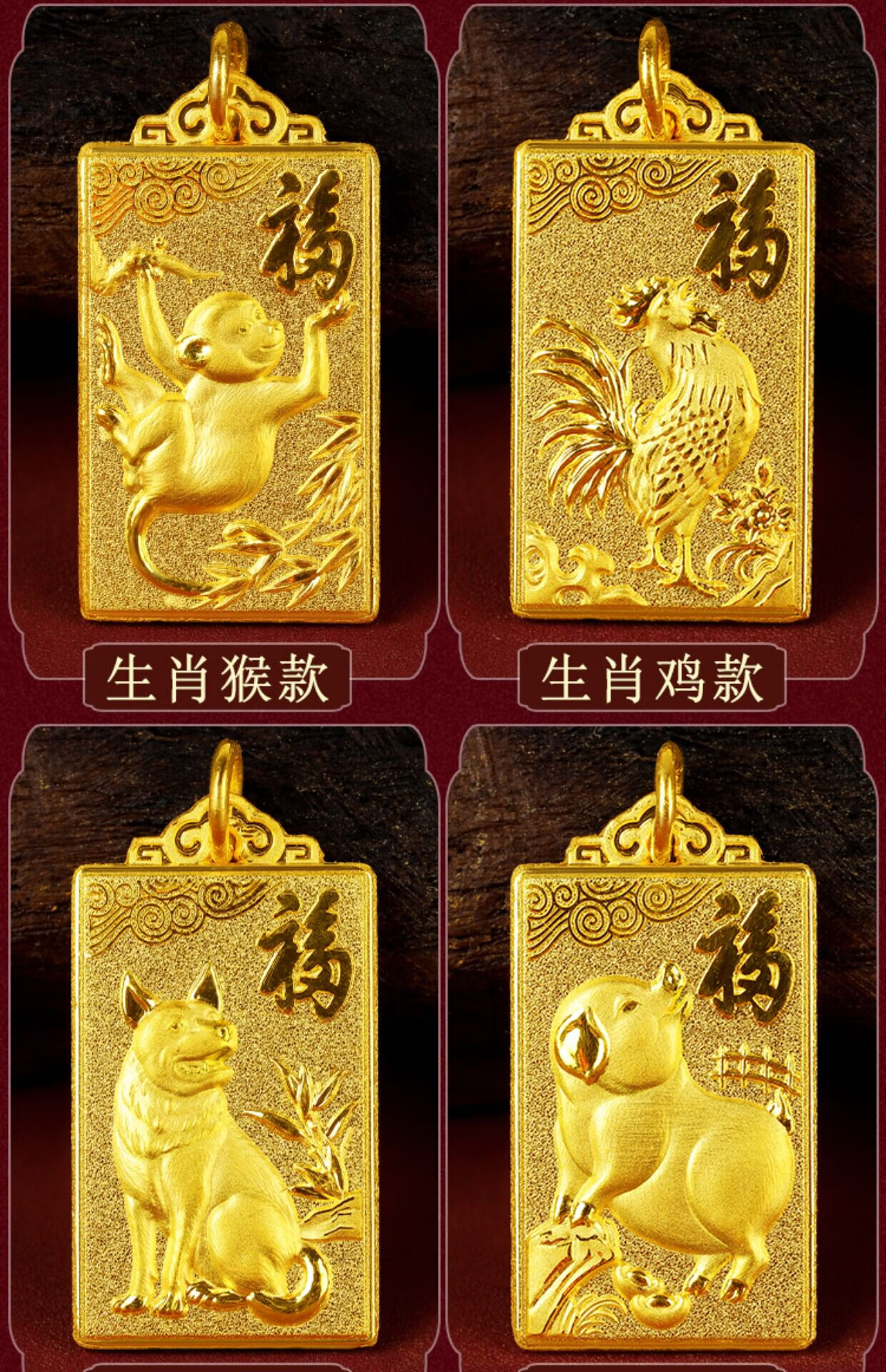 Libiao pure gold 999 twelve zodiac gold pendants with engraving services, diversified selection of New Year gifts, Zodiac dog-style pendant, one pendant/free lanyard (5.16