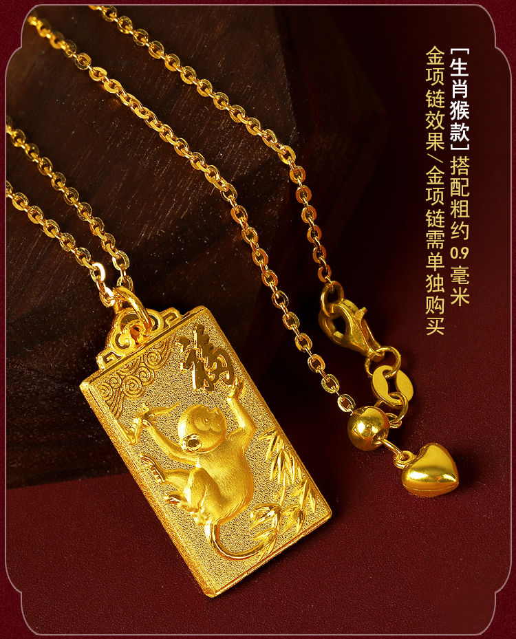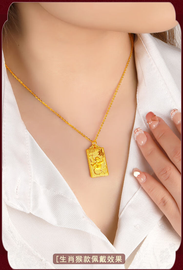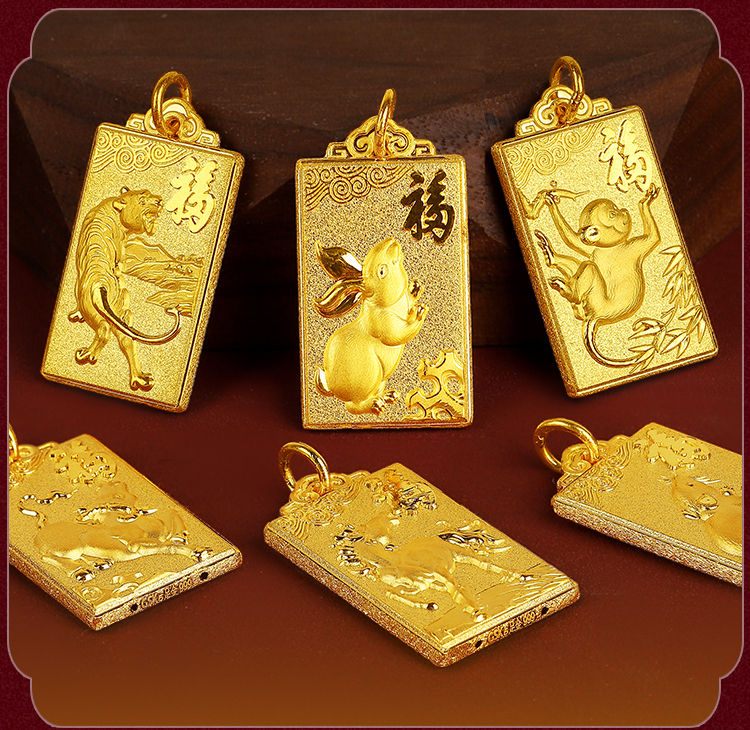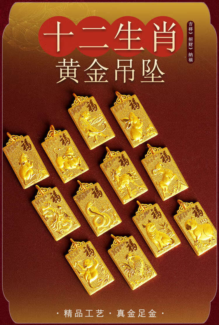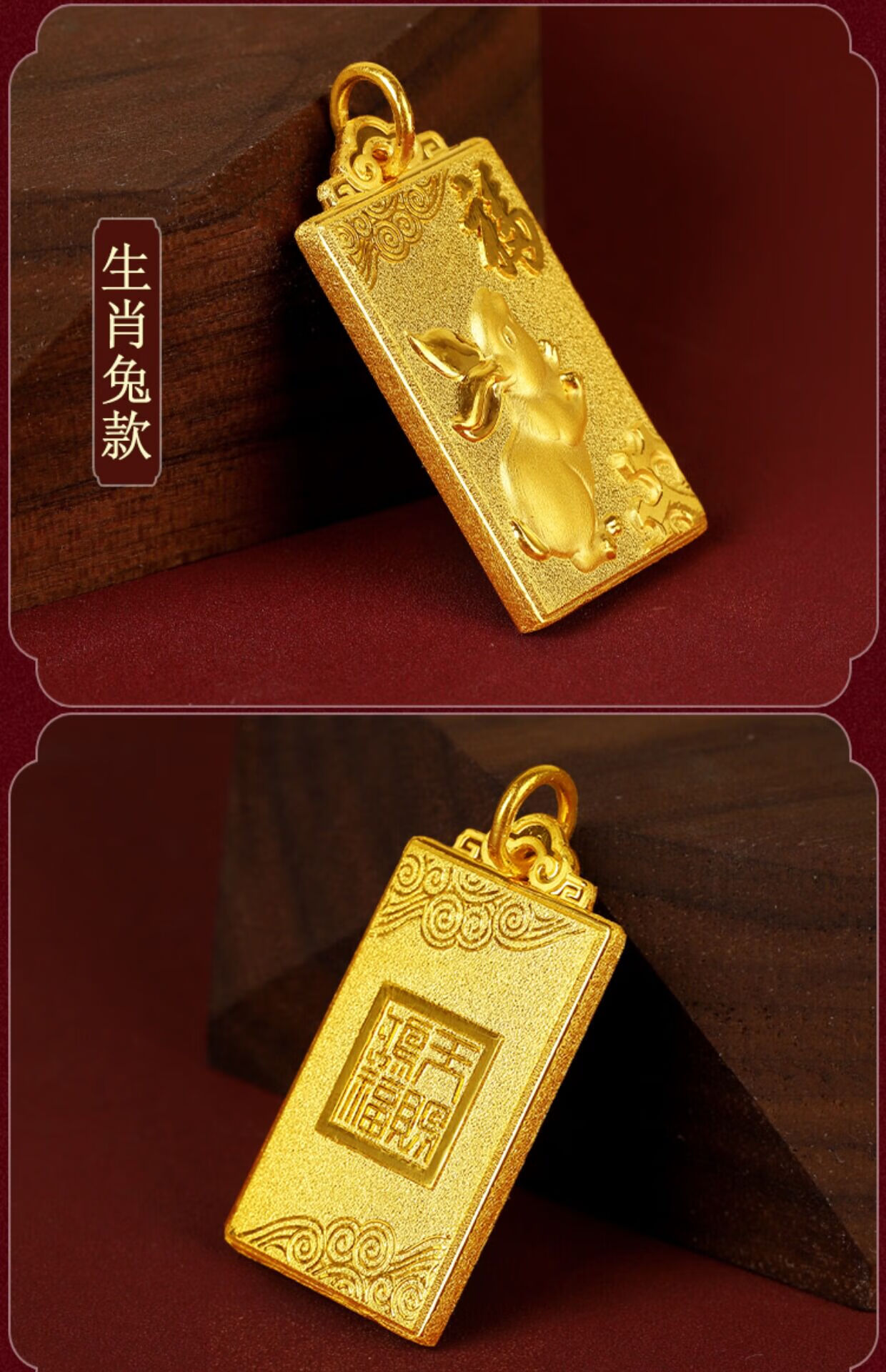 Libiao pure gold 999 twelve zodiac gold pendants with engraving services, diversified selection of New Year gifts, Zodiac dog-style pendant, one pendant/free lanyard (5.16
