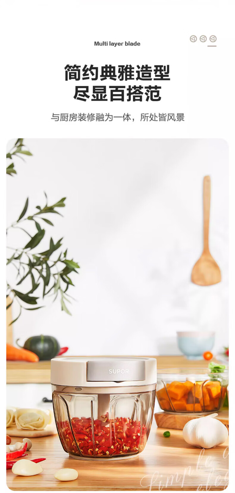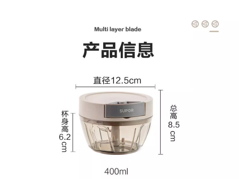 SUPOR's new product, manual garlic press, garlic masher, garlic masher, garlic grinder, minced garlic, small size 400ml, multi-functional food processor