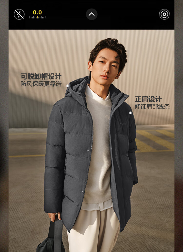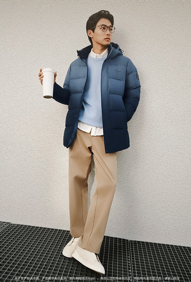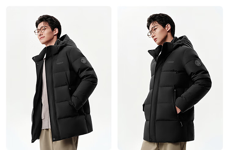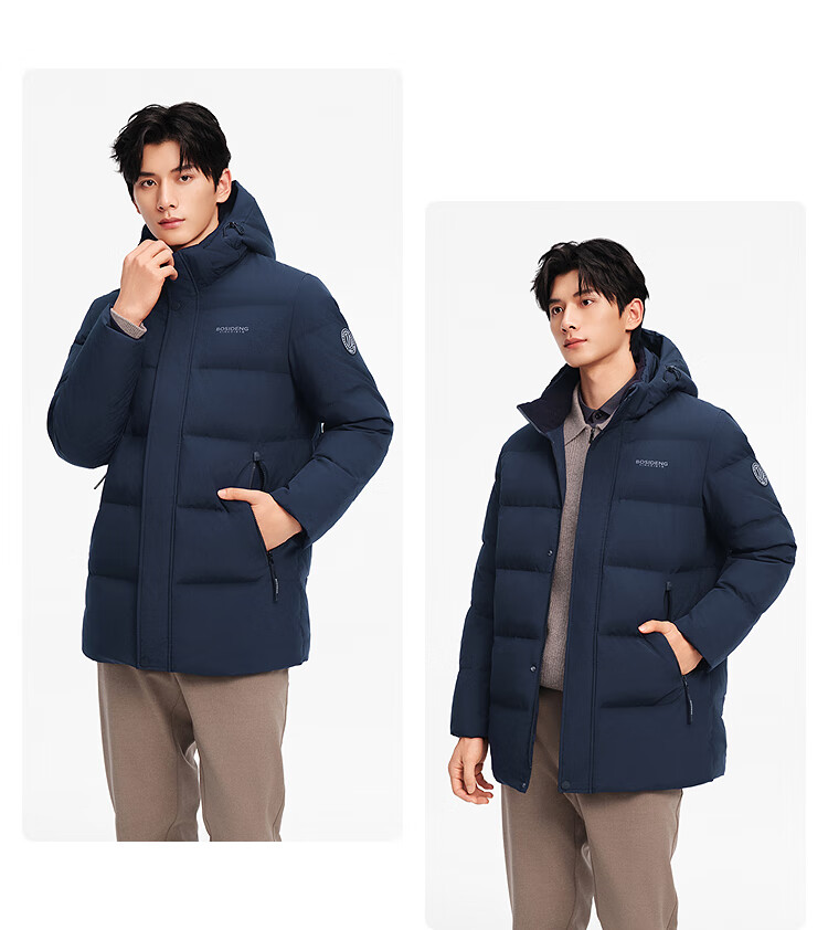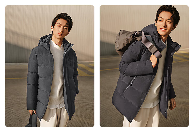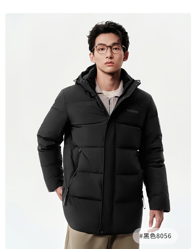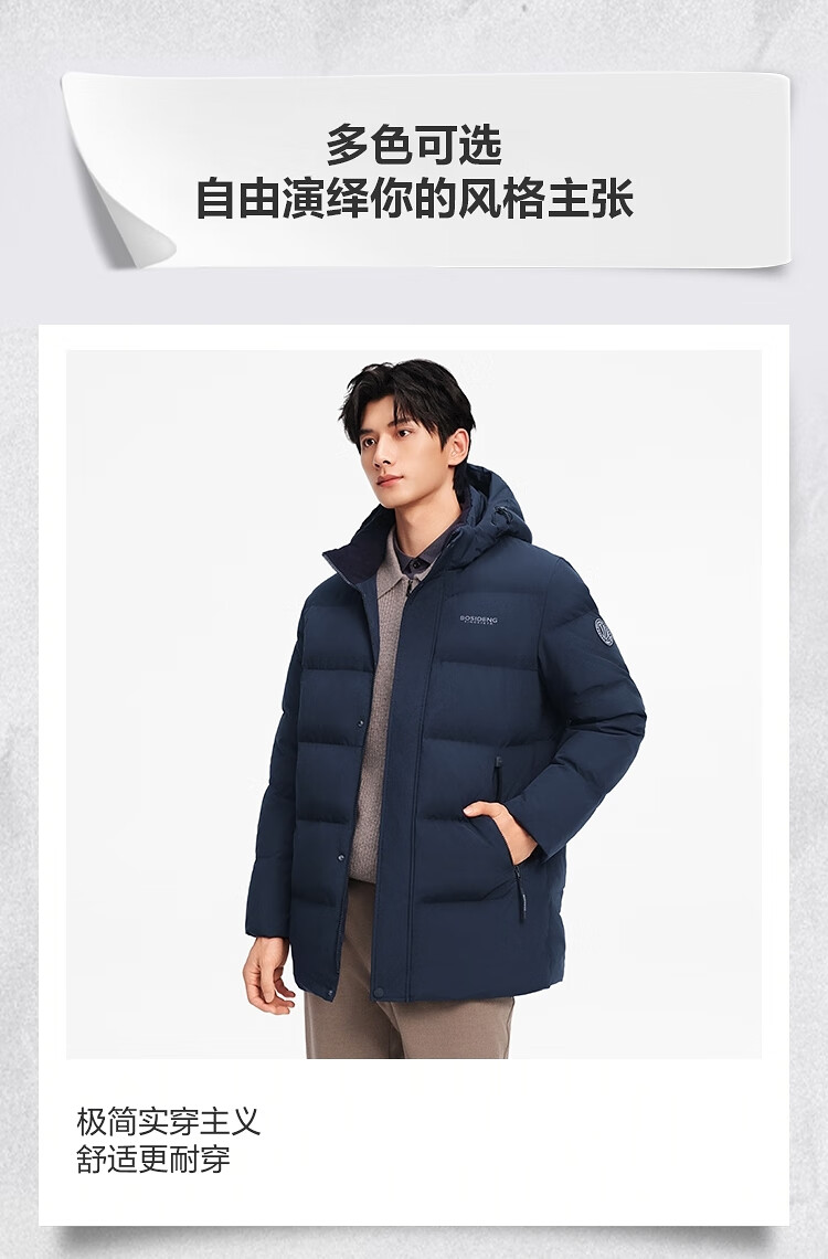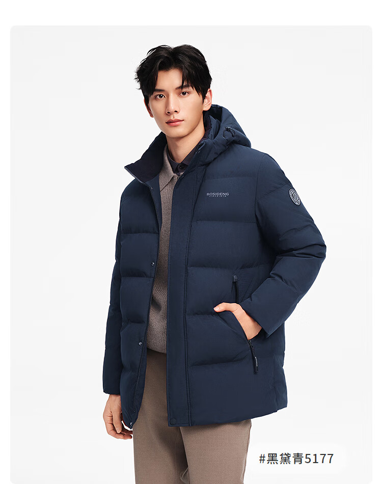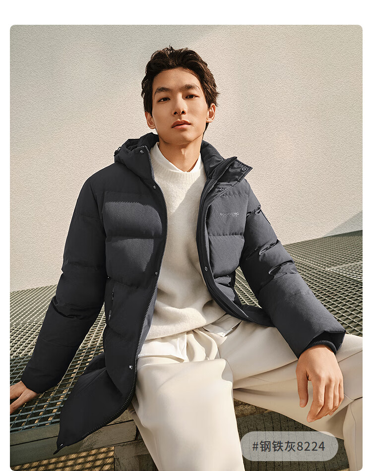 BOSIDENG 2025 New Down Jacket Short Men's 90 Down Commuting Mid-Length Windproof Hooded Warm Jacket Steel Gray 8224 Store Manager Recommendation M 175/96A Weight Approximately 130-140 Jin Jin equals 0.5 kg