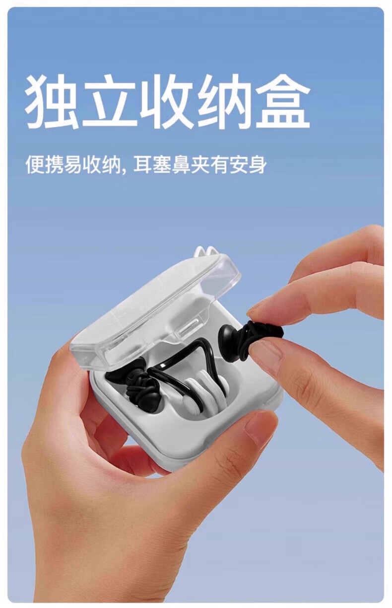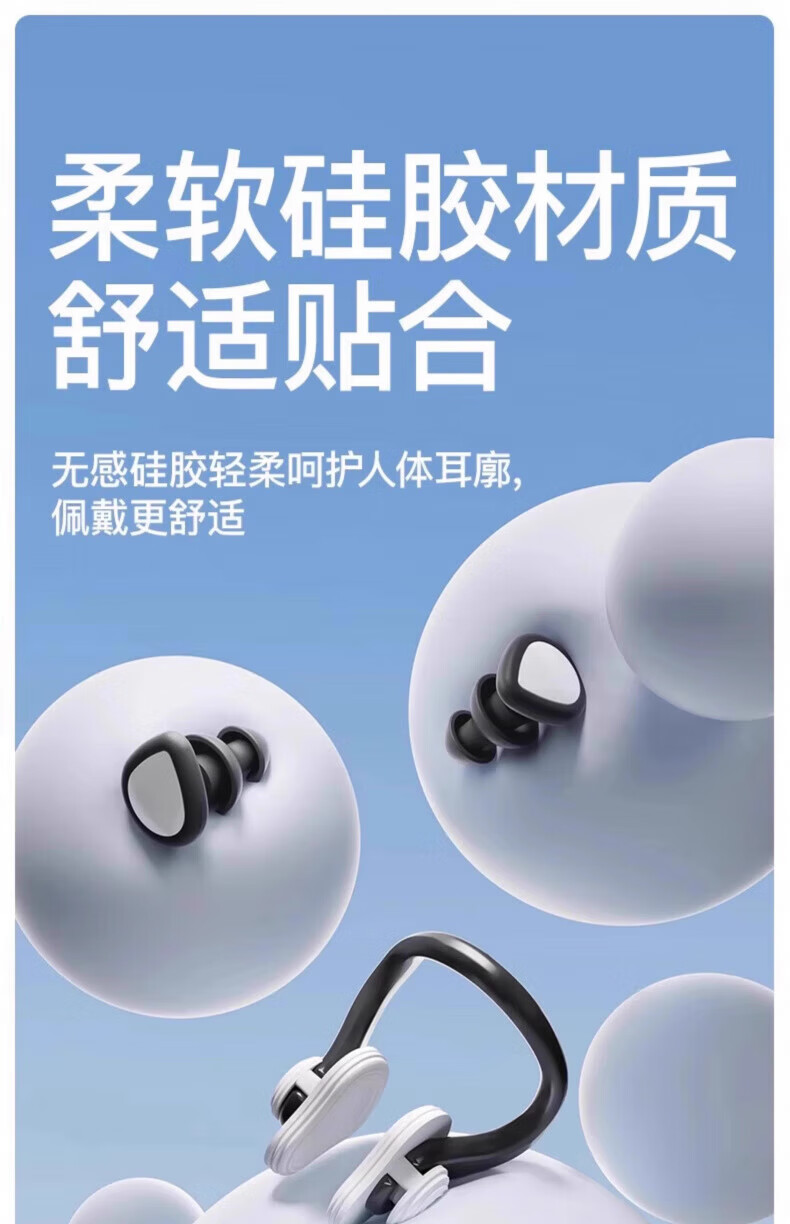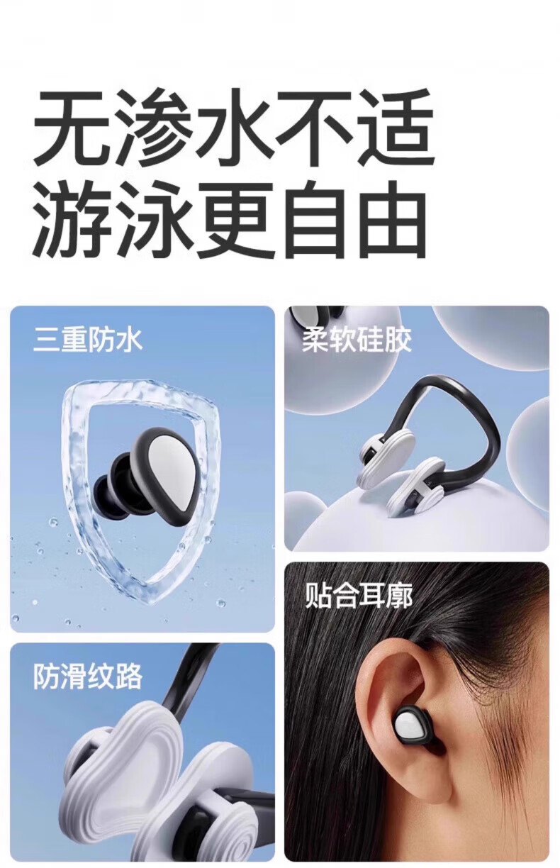 JCZS German children's swimming earplugs nose clip special waterproof anti-middle ear silicone inflammation non-swelling ear fit non-falling set removable lanyard black nose clip + earplugs