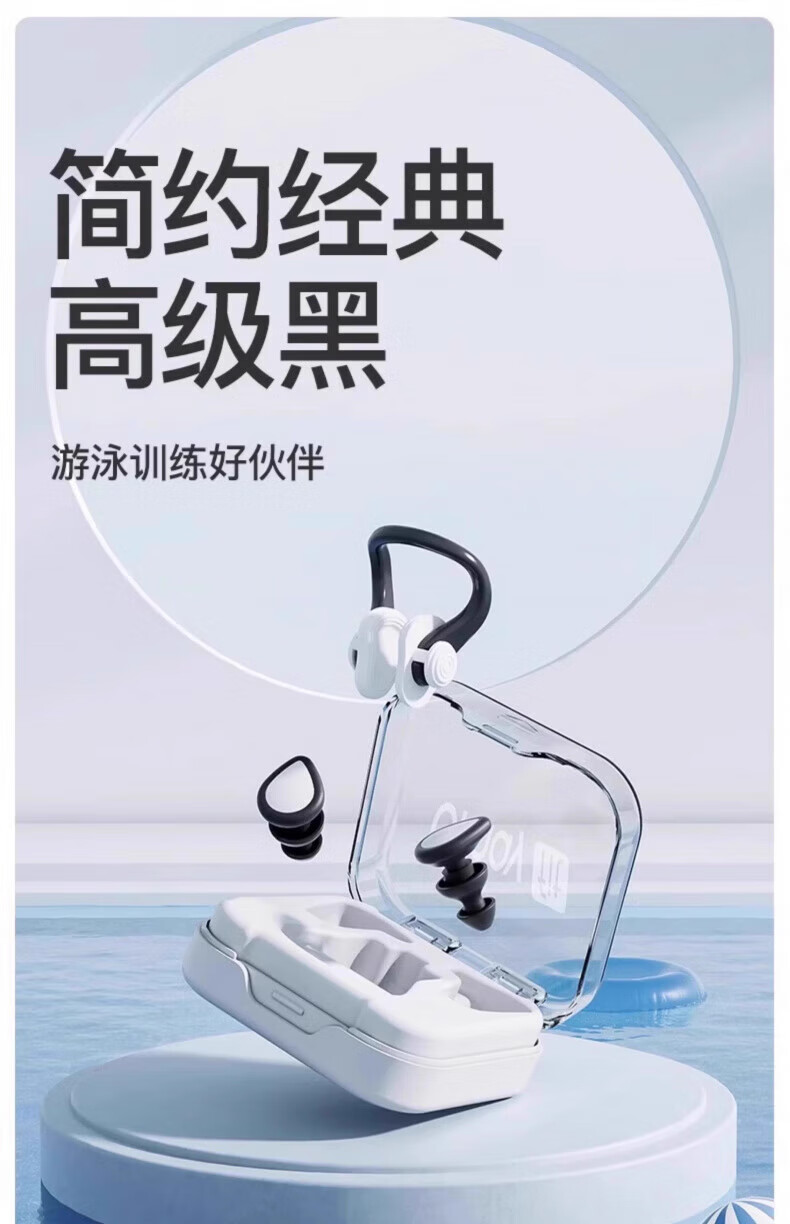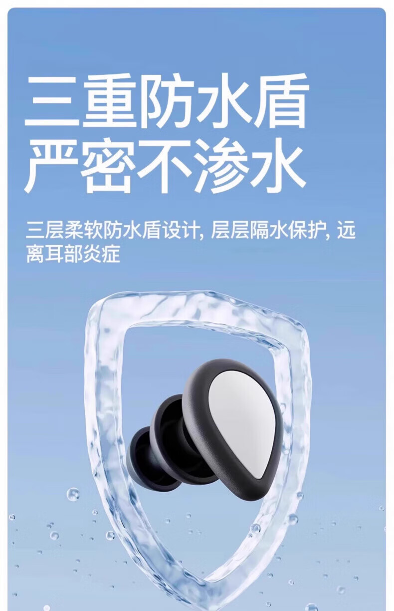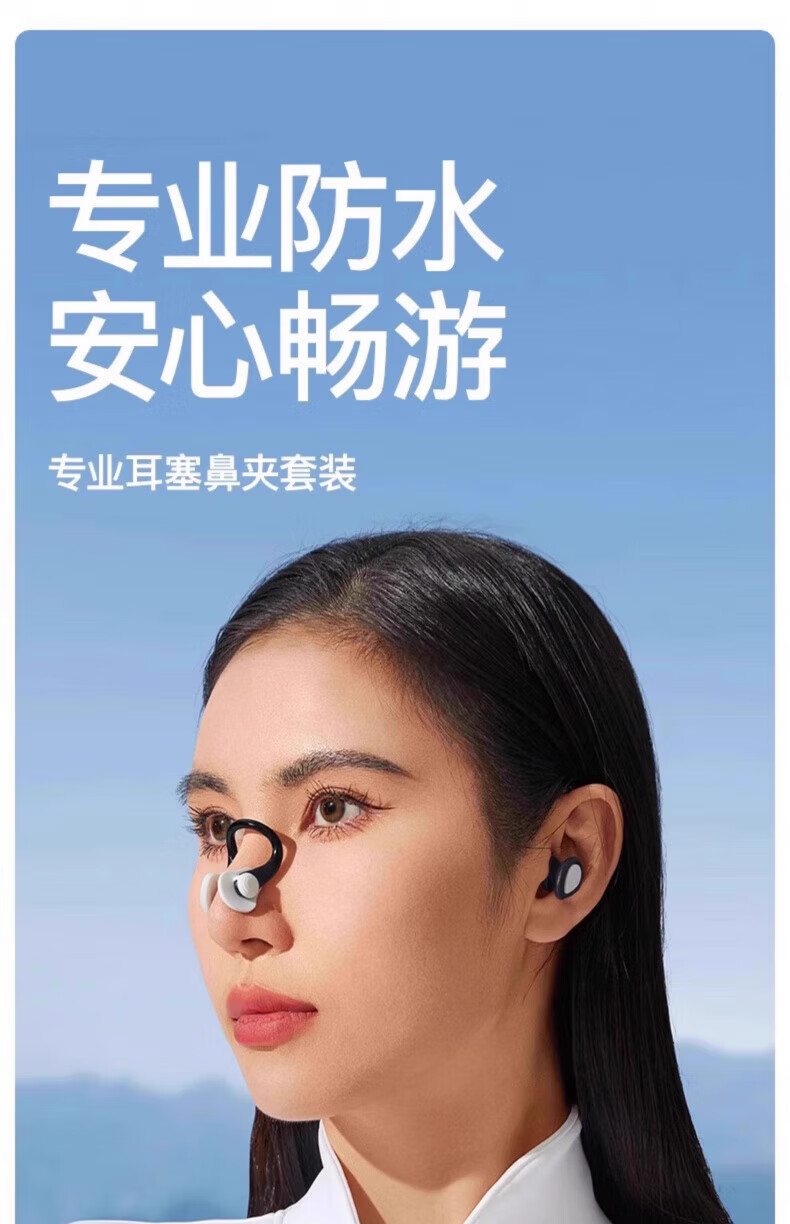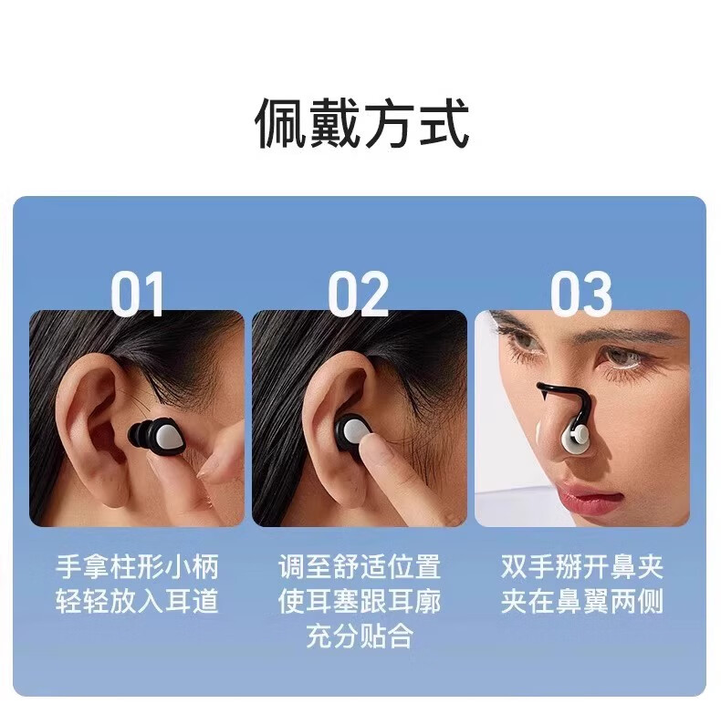 JCZS German children's swimming earplugs nose clip special waterproof anti-middle ear silicone inflammation non-swelling ear fit non-falling set removable lanyard black nose clip + earplugs