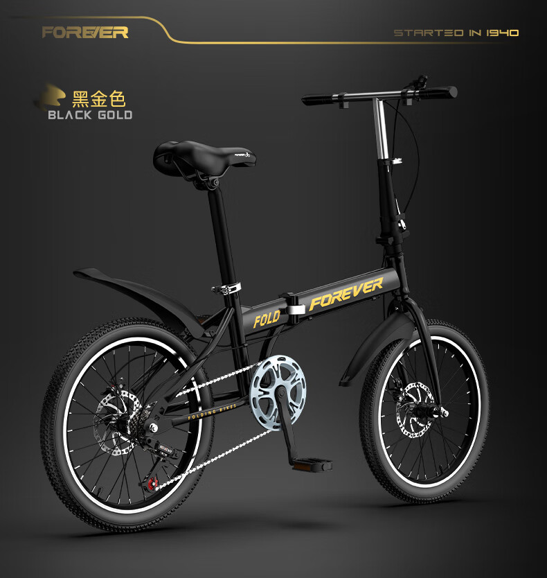 Permanent folding bicycle for adults, men and women, variable speed, ultra-light, portable student bicycle for commuting to work, no installation required, black - five dollars, rapid wind breaking, 22-inch variable speed