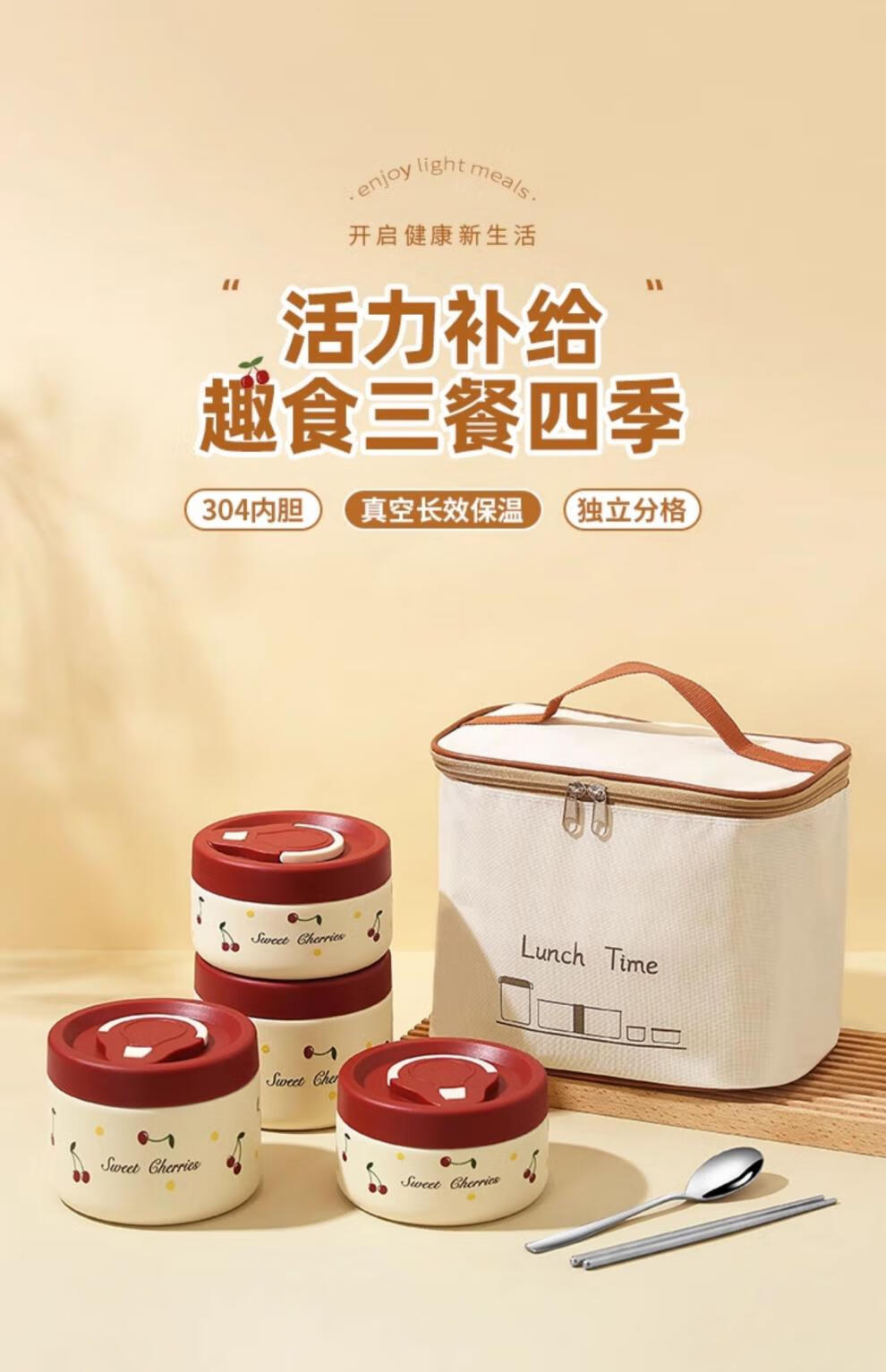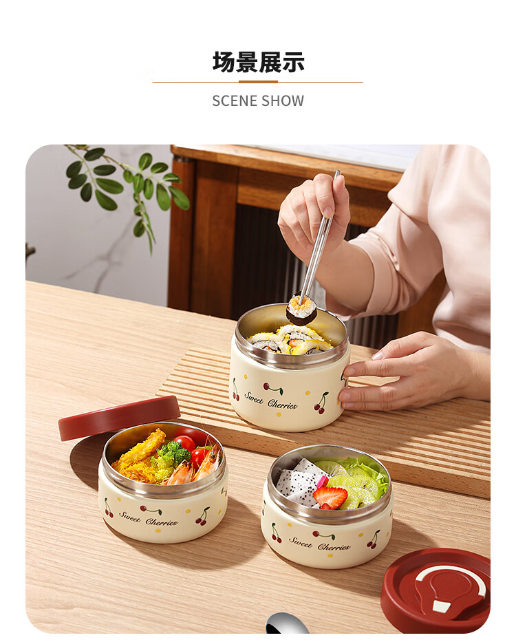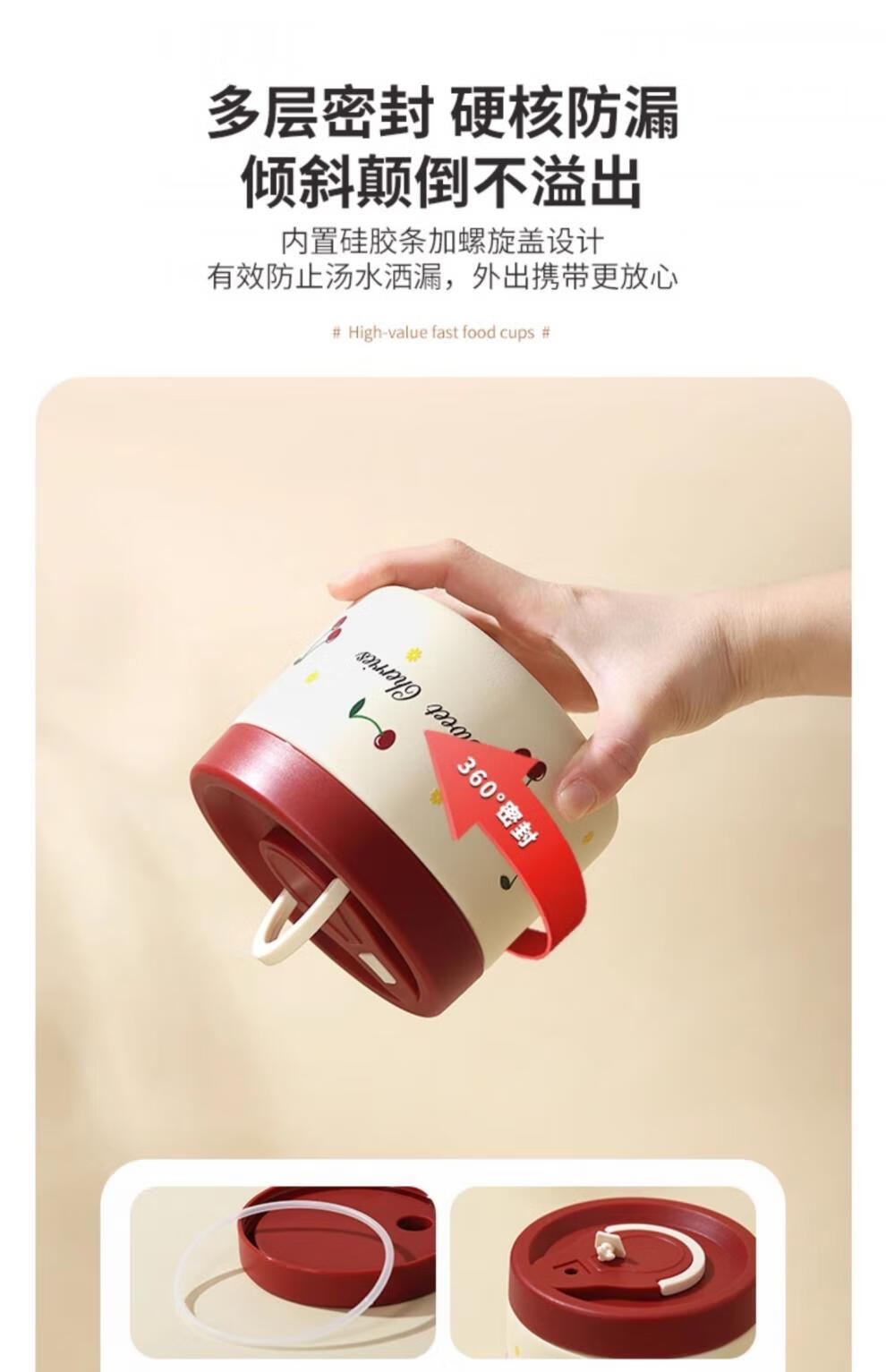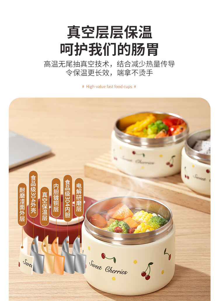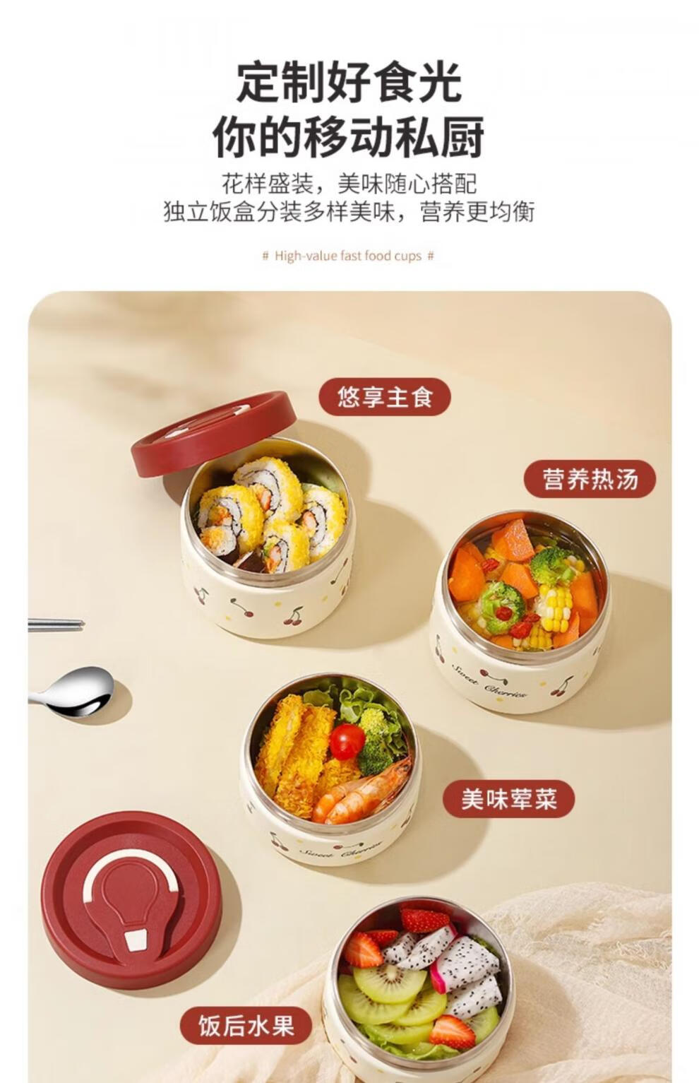 Xuan Liang Japan imported high-quality insulated bowl with lid soup bowl to take away for office workers new insulated lunch box small mini winter meal double layer - rice + vegetables vacuum insulation - cow fruit green + tableware