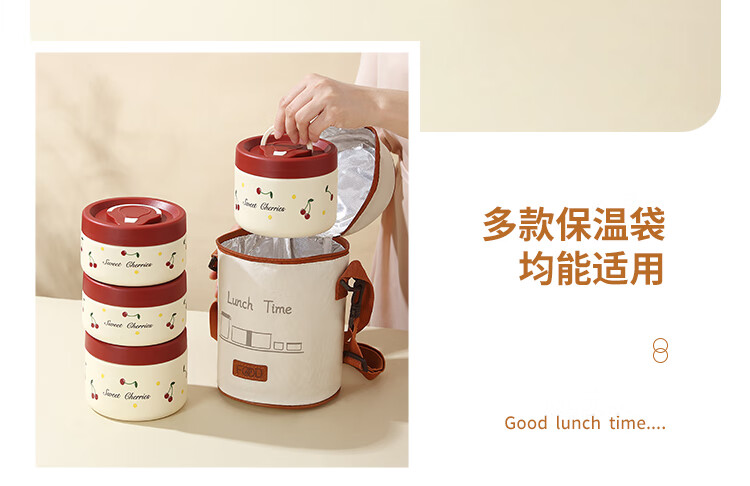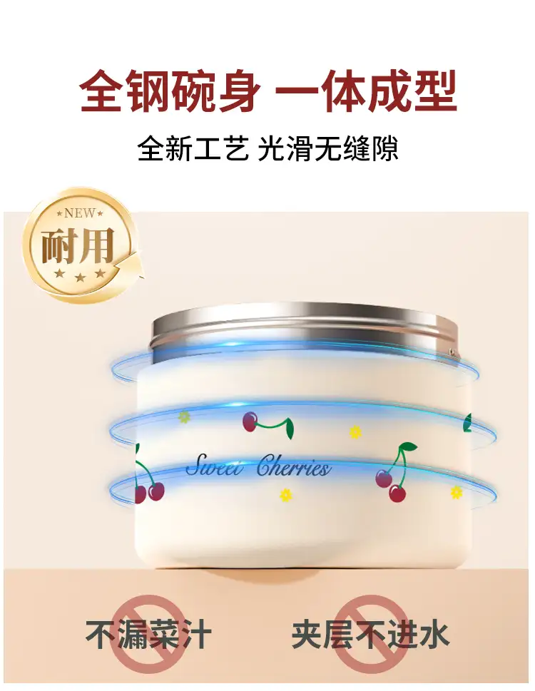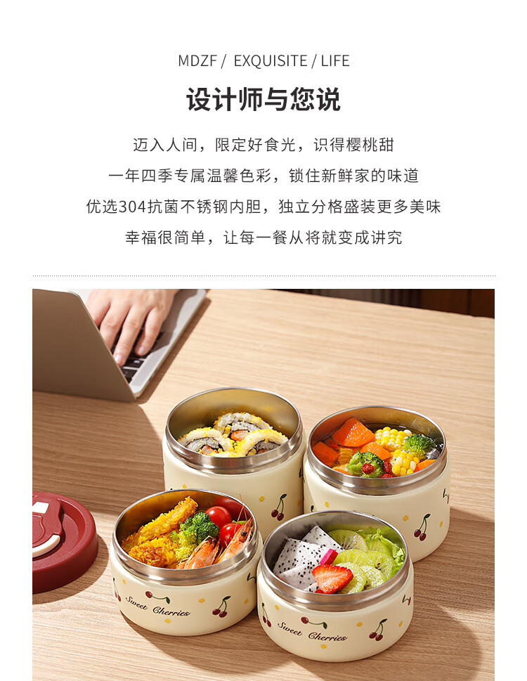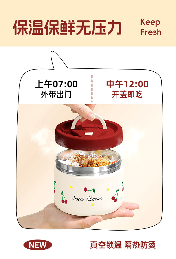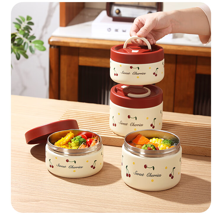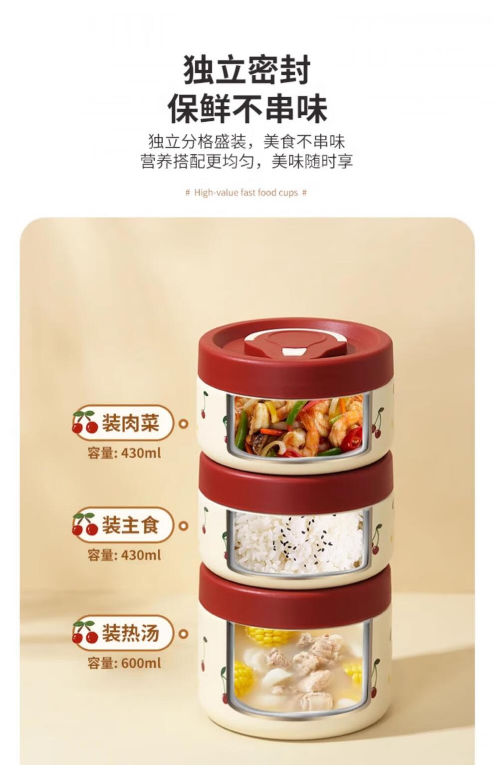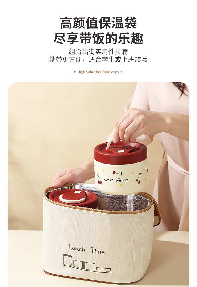 Xuan Liang Japan imported high-quality insulated bowl with lid soup bowl to take away for office workers new insulated lunch box small mini winter meal double layer - rice + vegetables vacuum insulation - cow fruit green + tableware