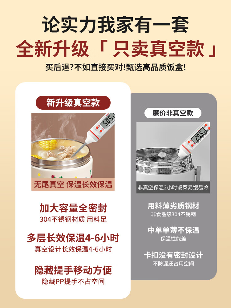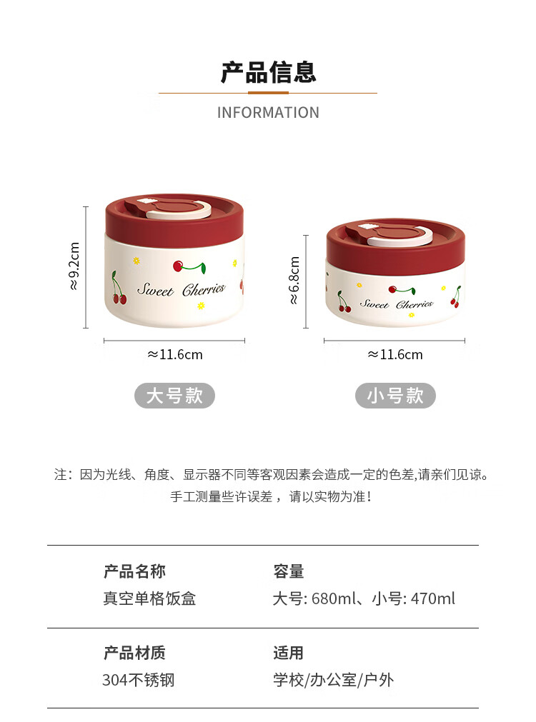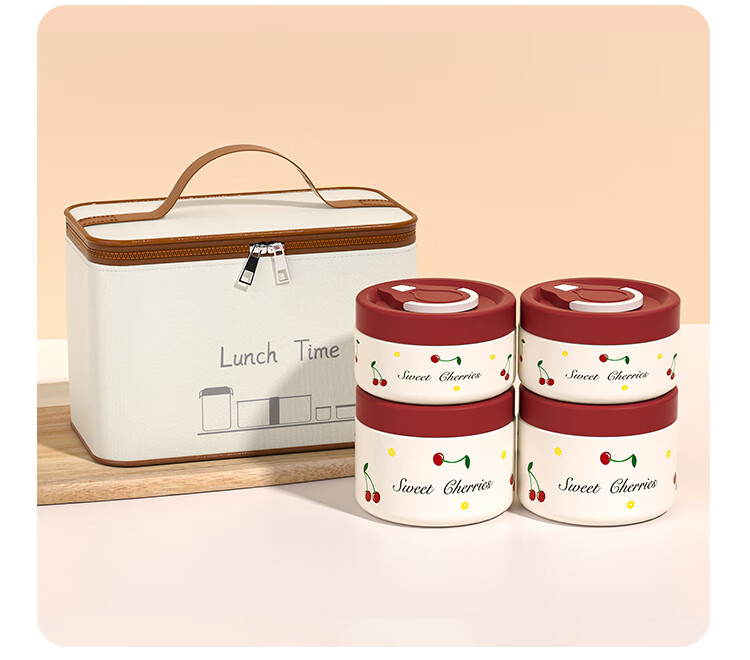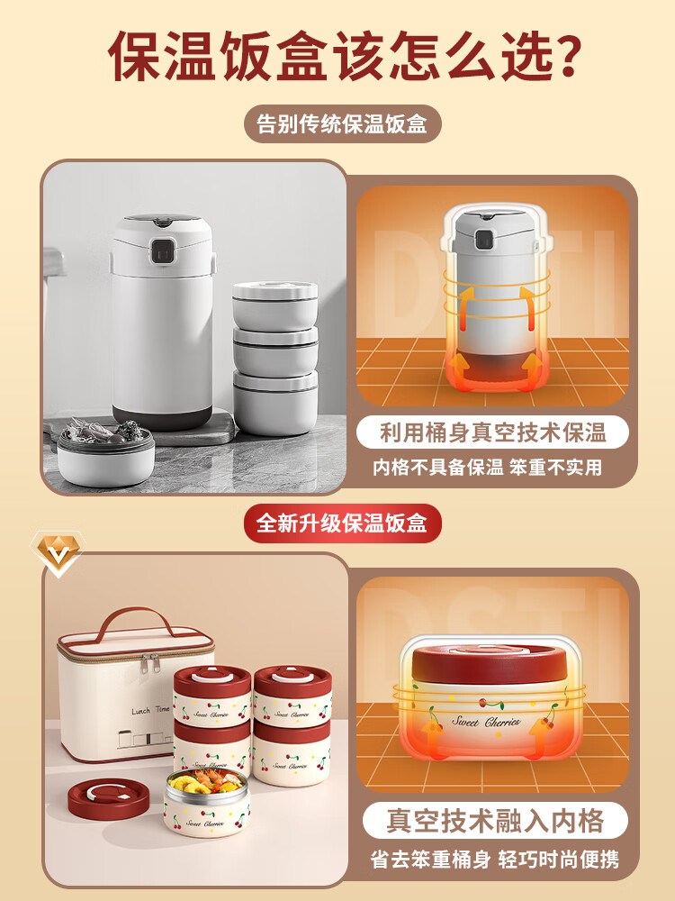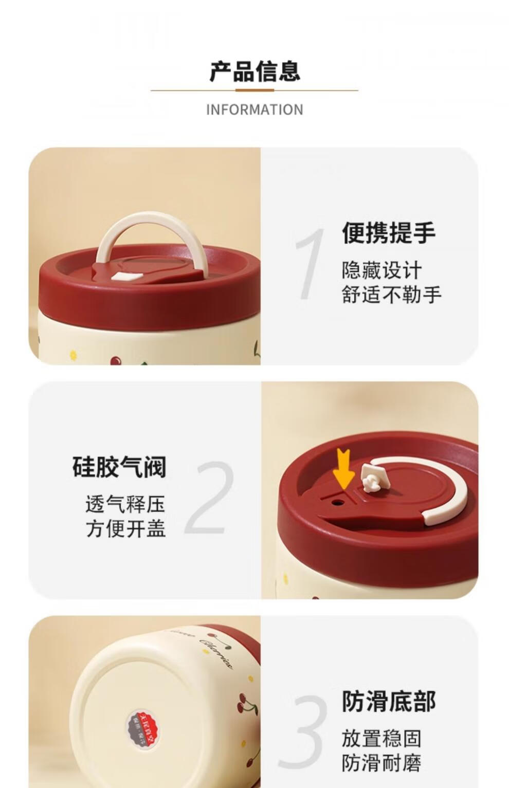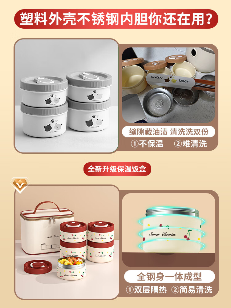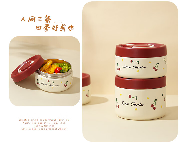 Xuan Liang Japan imported high-quality insulated bowl with lid soup bowl to take away for office workers new insulated lunch box small mini winter meal double layer - rice + vegetables vacuum insulation - cow fruit green + tableware