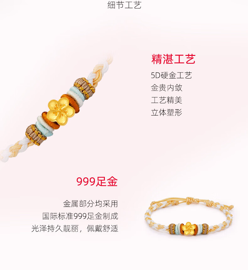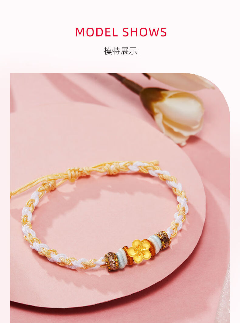 Libiao Small Peach Blossom Bracelet Gold Pure Gold 999 Transfer Beads 5D Hard Gold Bracelet as a Gift for Your Girlfriend Small Peach Blossom Bracelet About 0.12g - Light Gold