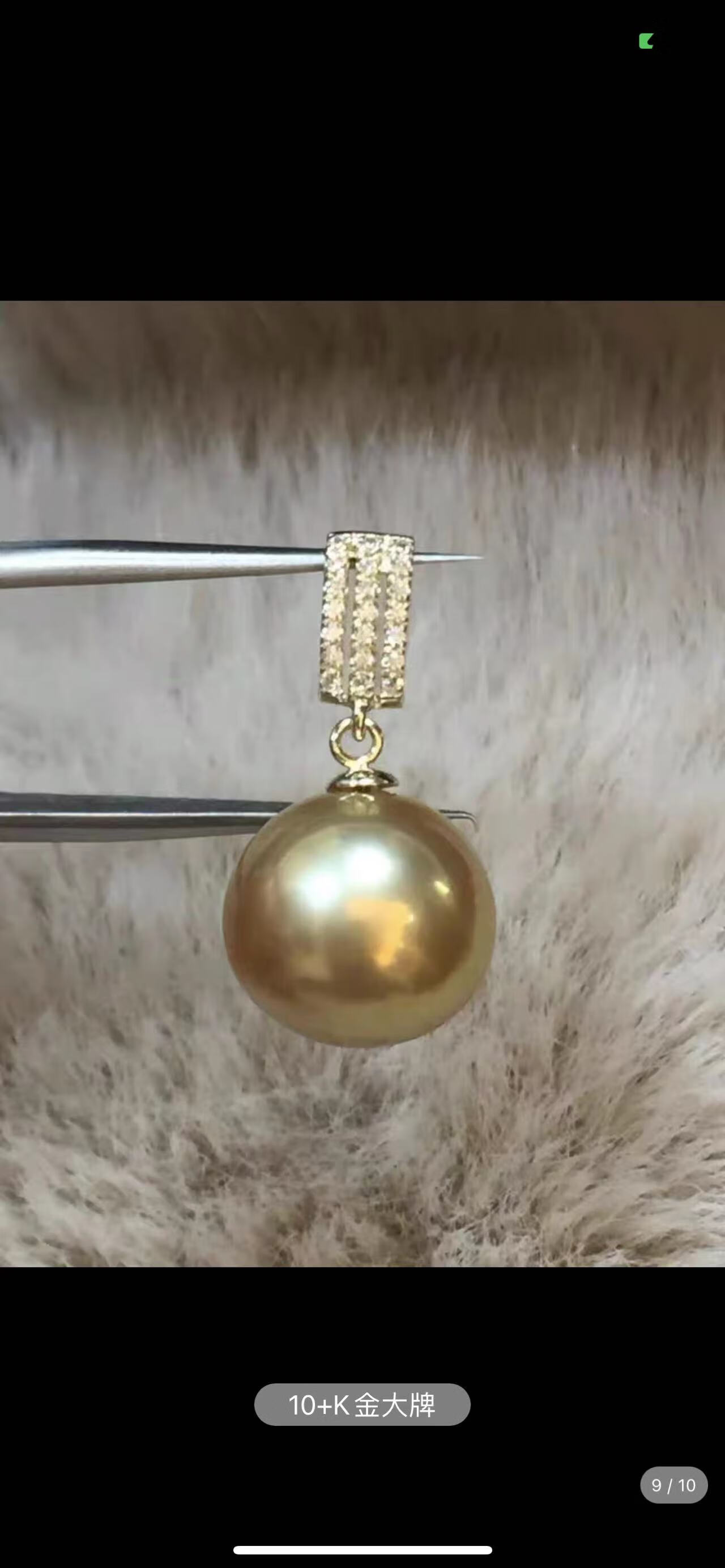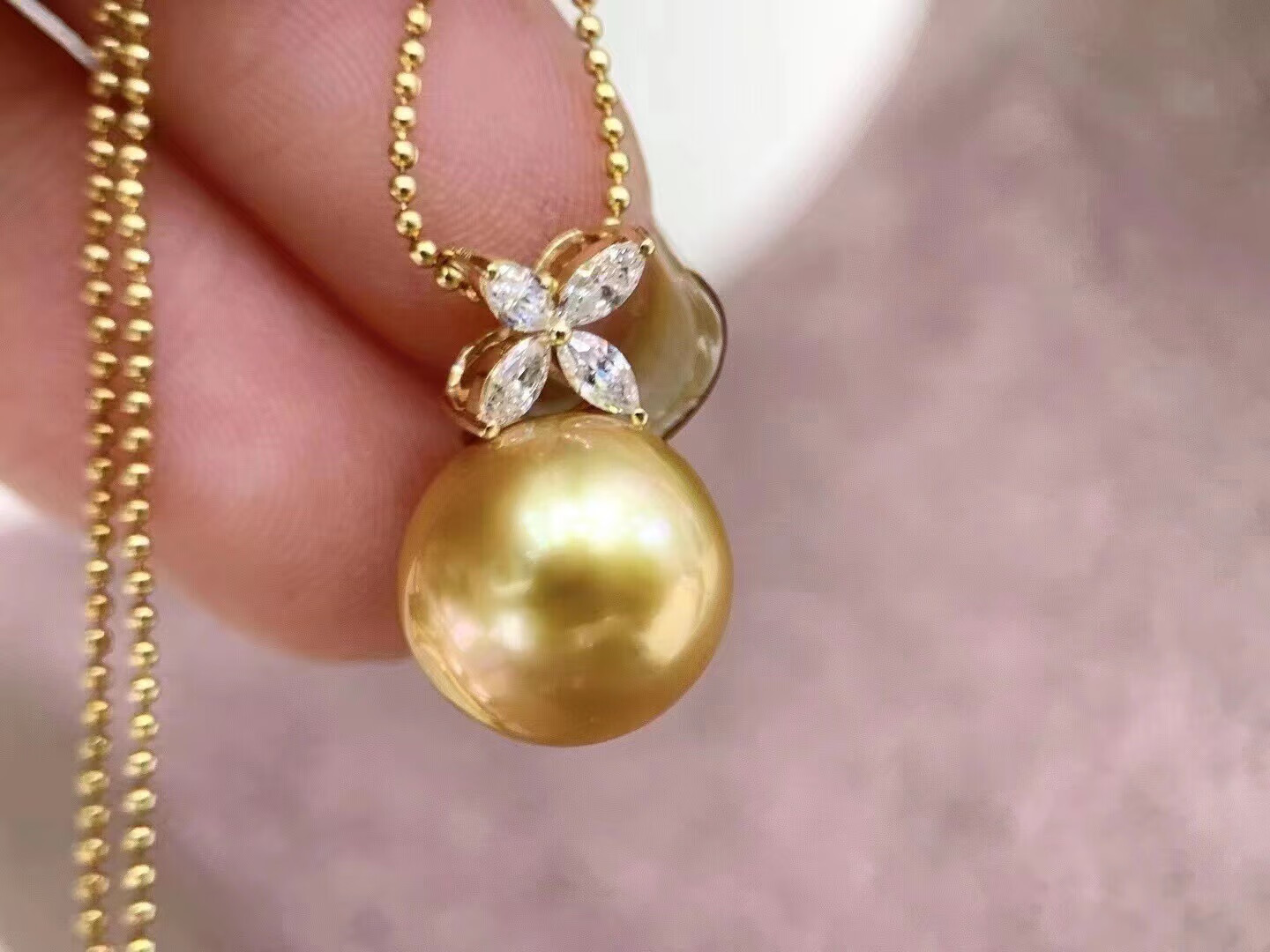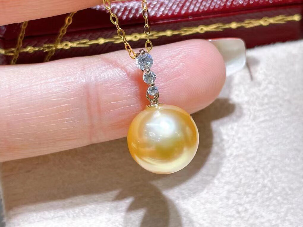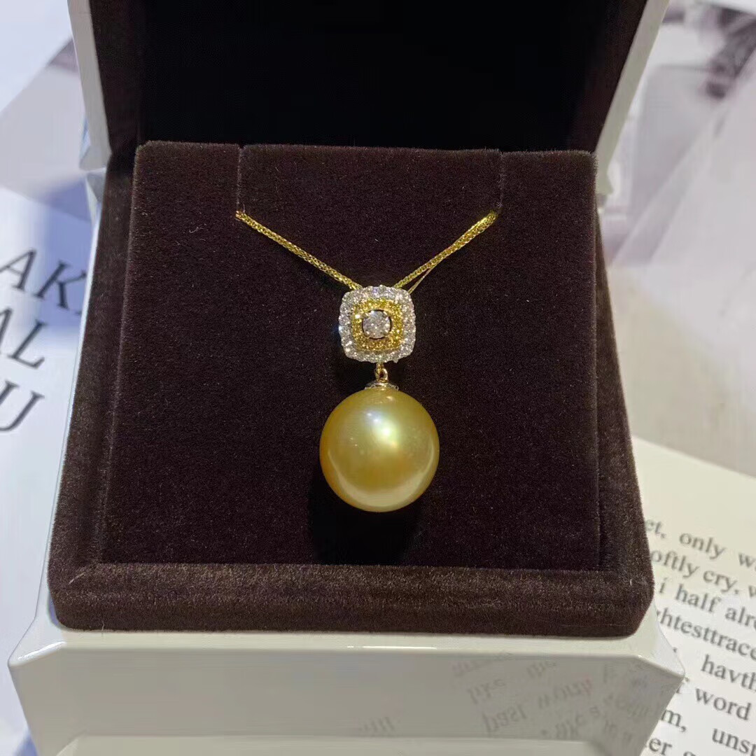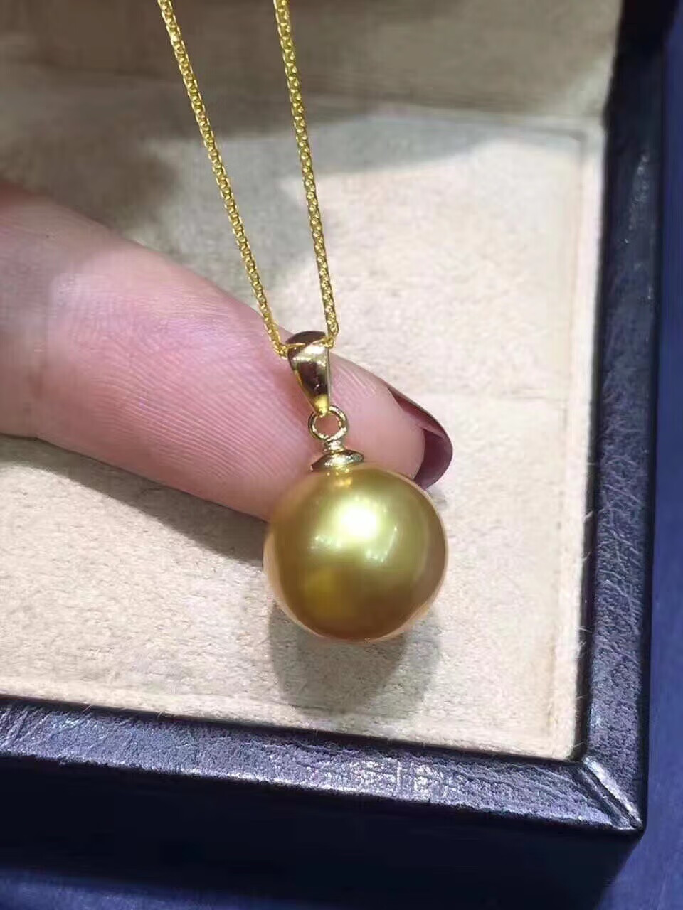 Only double pearl gold bead pendant 18K gold necklace 10-11mm thick gold tea gold perfect round strong light flawless gift AU750 10+K gold temperament pendant