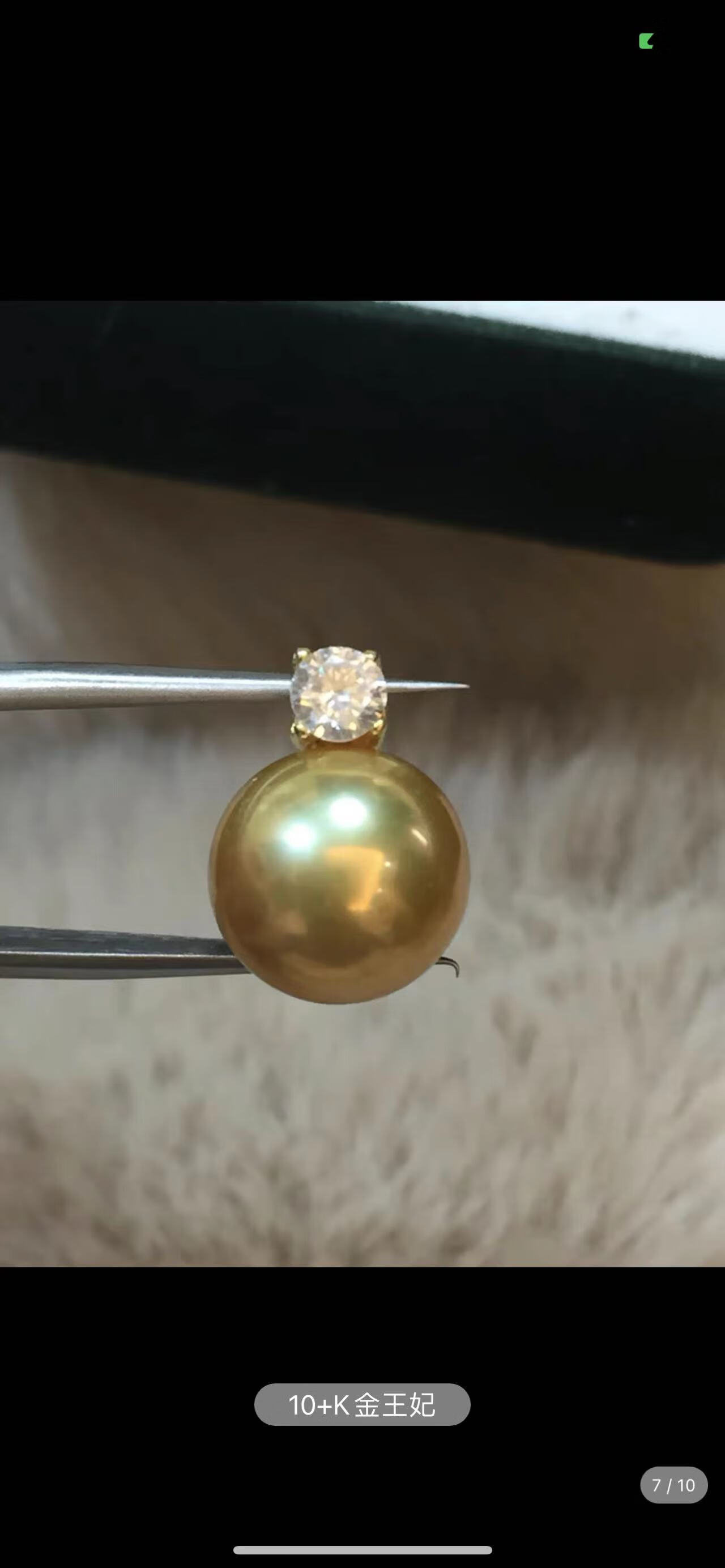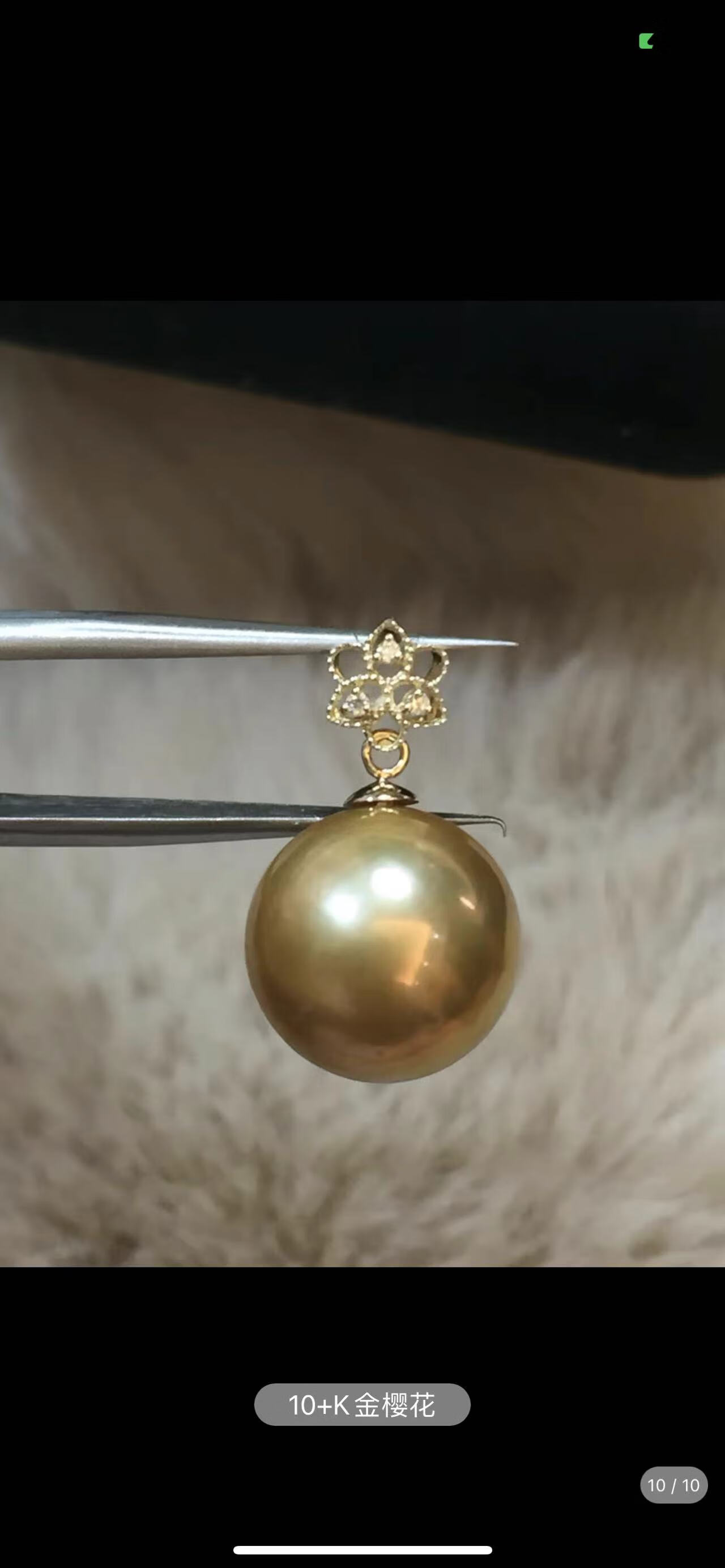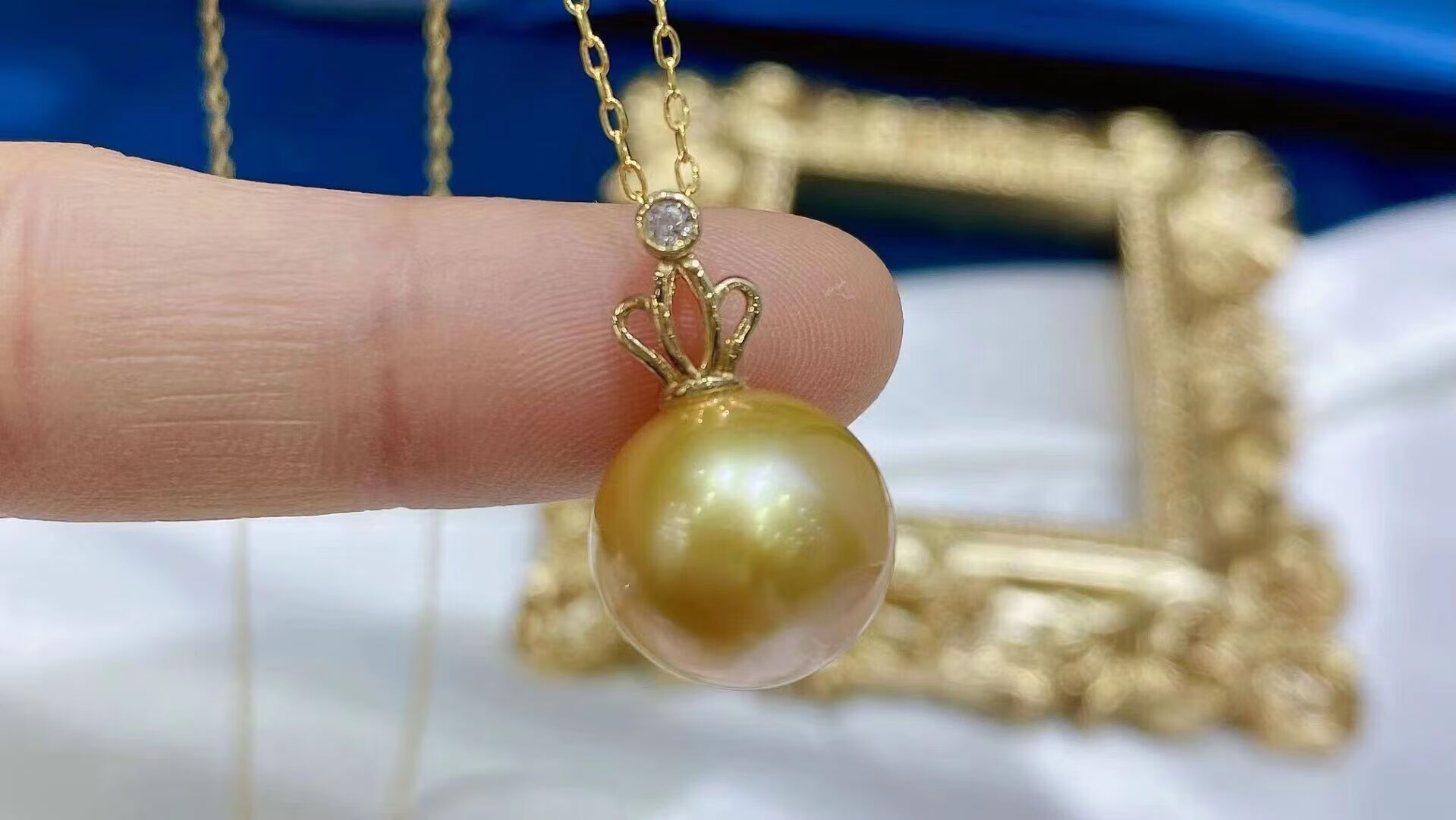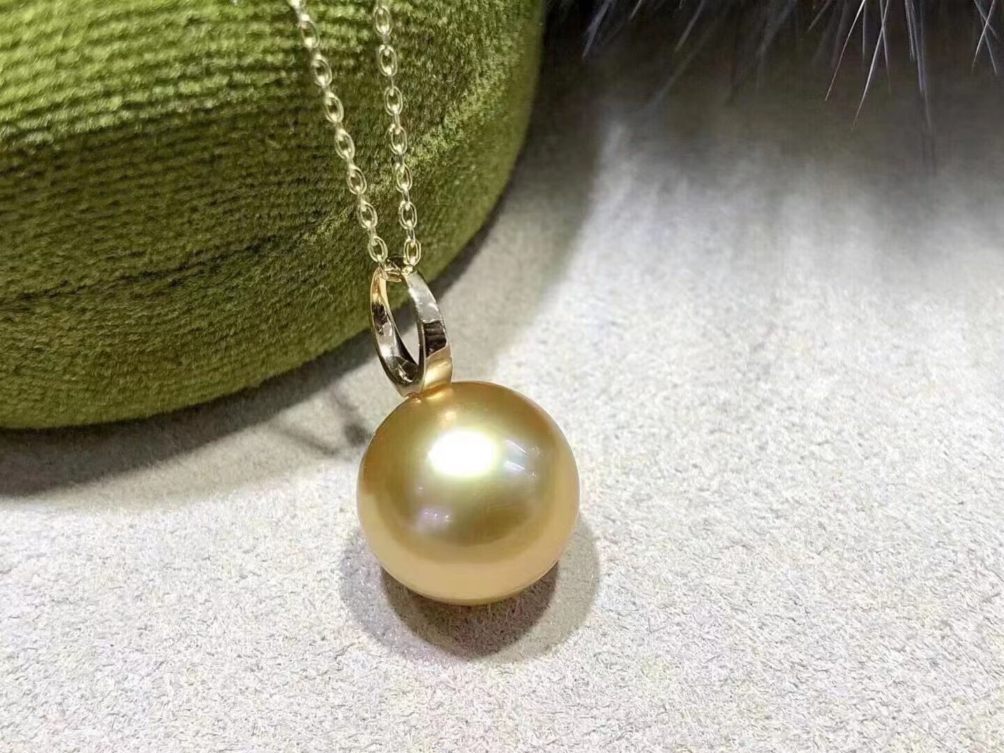Only double pearl gold bead pendant 18K gold necklace 10-11mm thick gold tea gold perfect round strong light flawless gift AU750 10+K gold temperament pendant