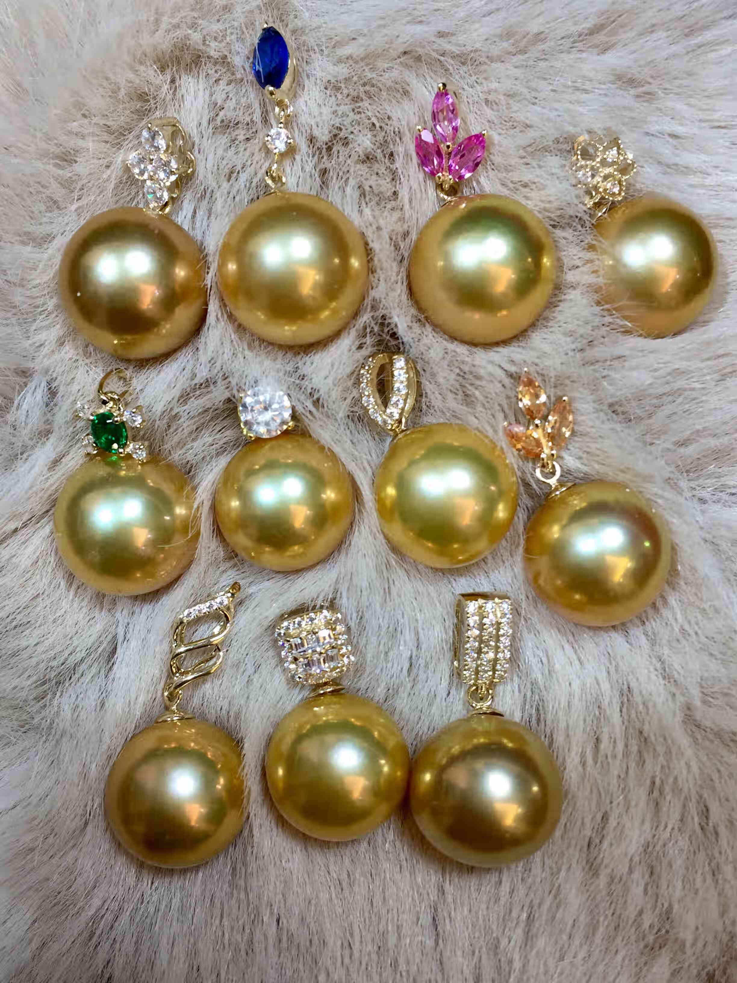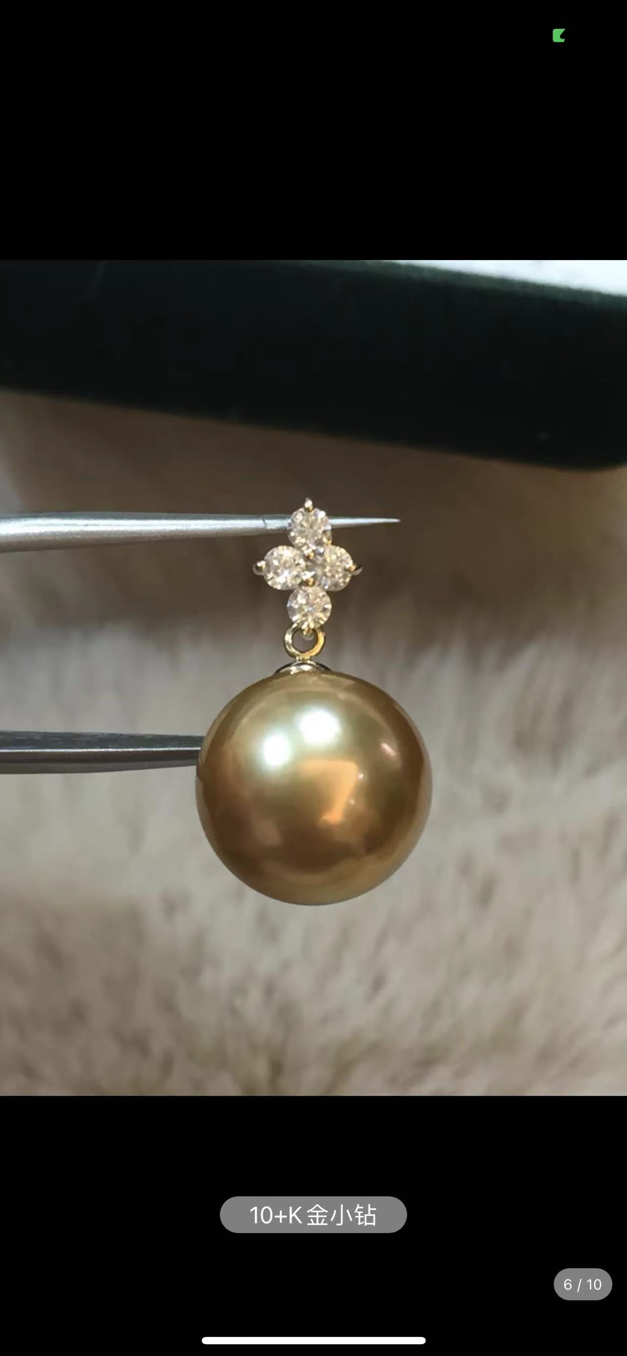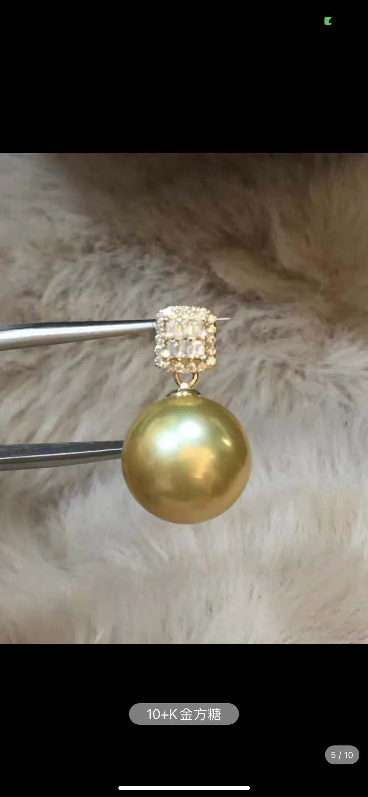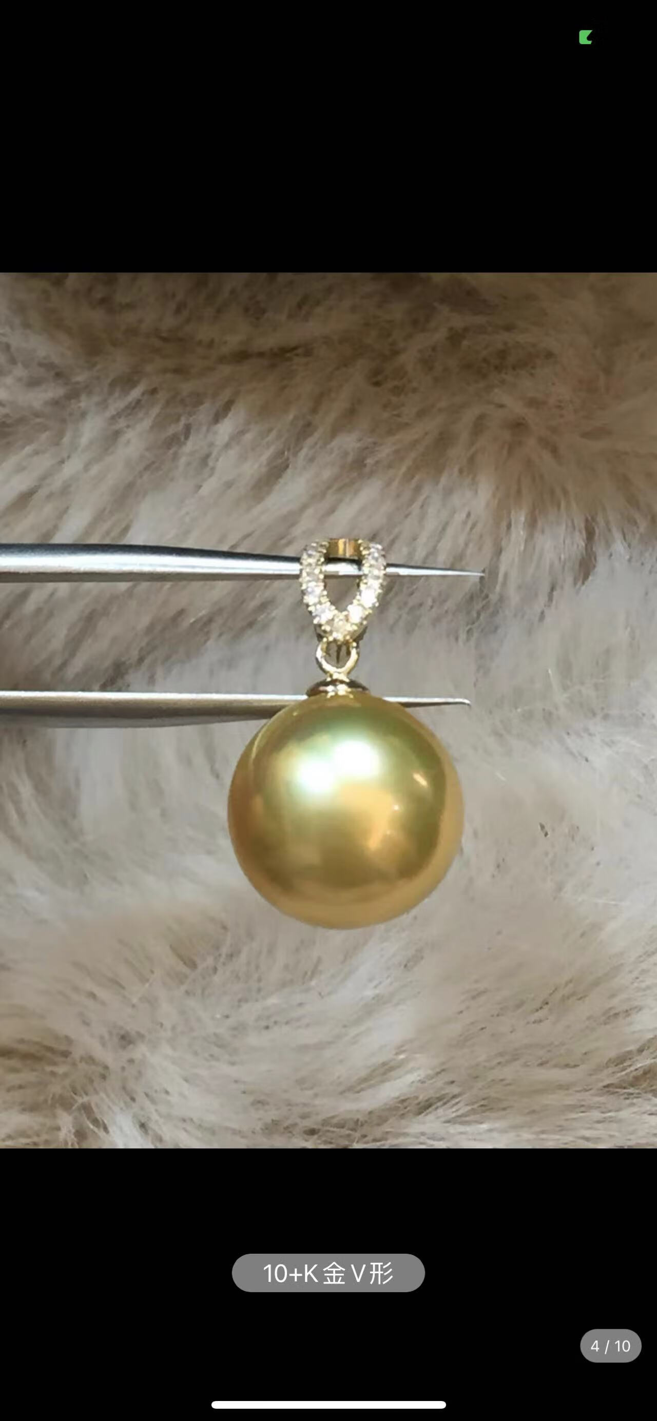 Only double pearl gold bead pendant 18K gold necklace 10-11mm thick gold tea gold perfect round strong light flawless gift AU750 10+K gold temperament pendant