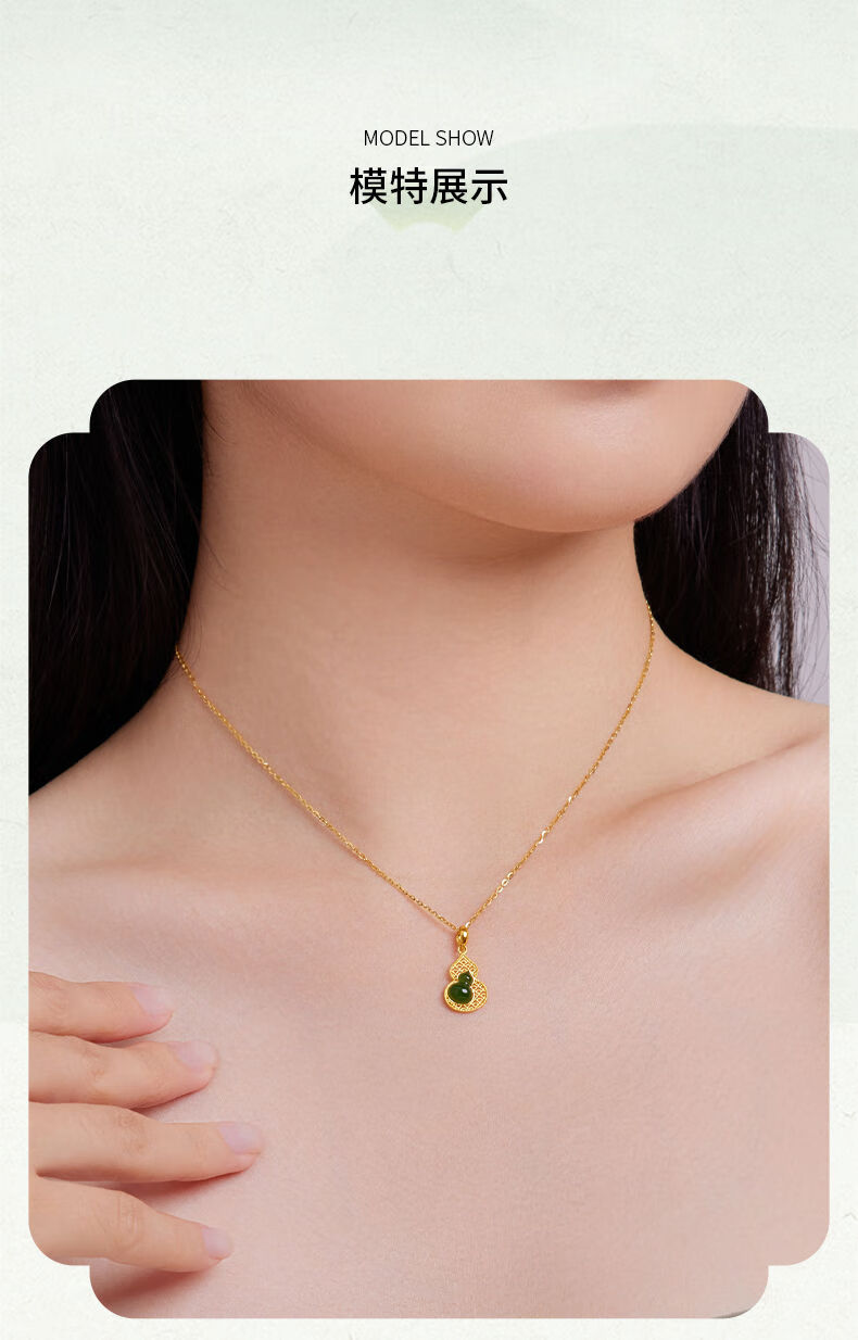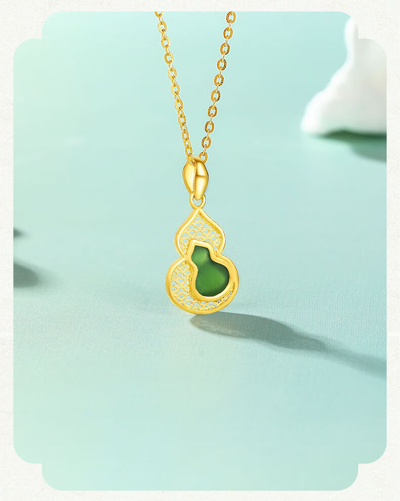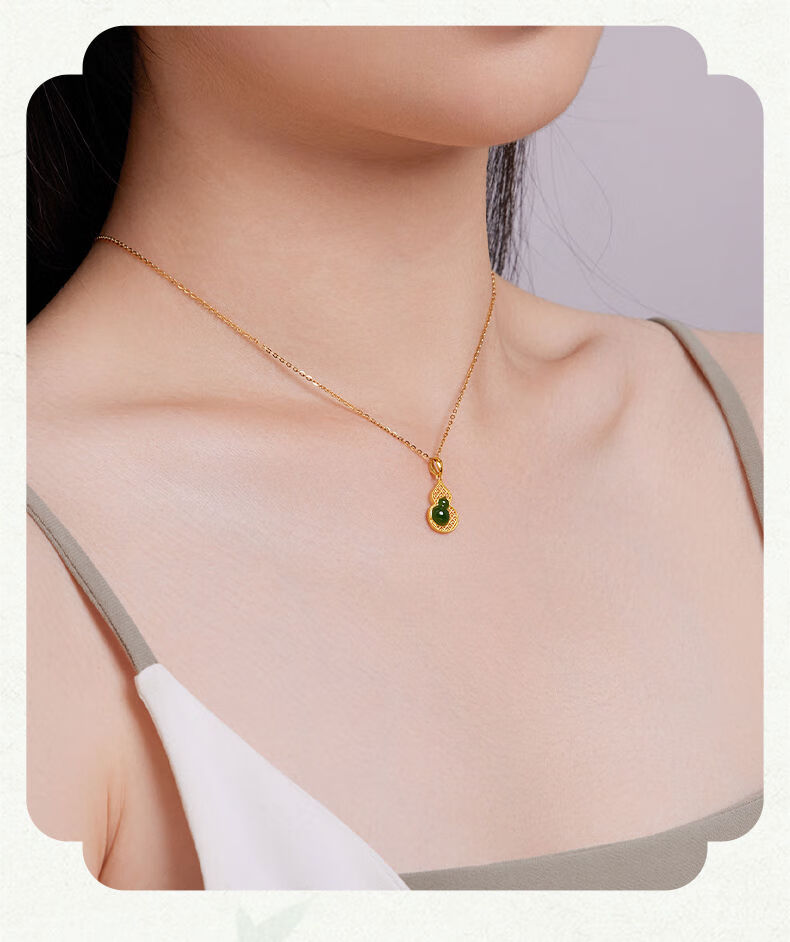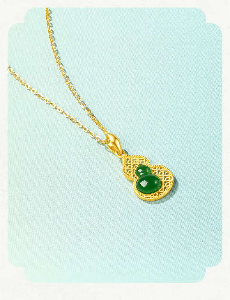 Only double/gold inlaid pendant pure gold gourd and field pendant Bifulu gift for mother 2025 gold inlaid jade gourd pendant - chain not included