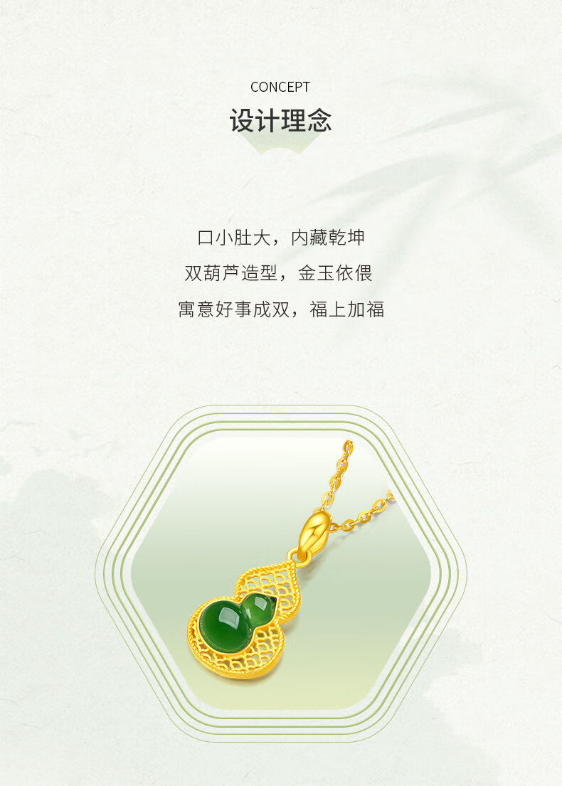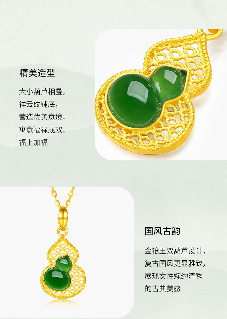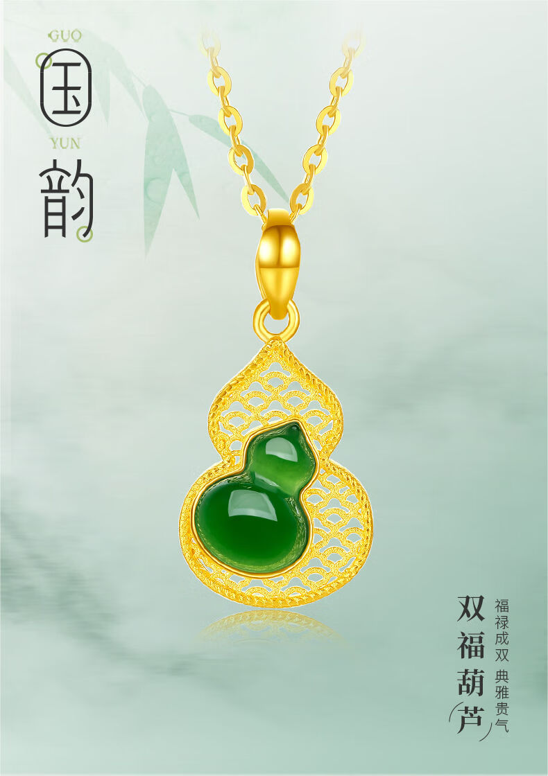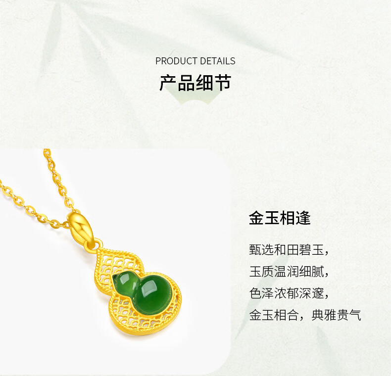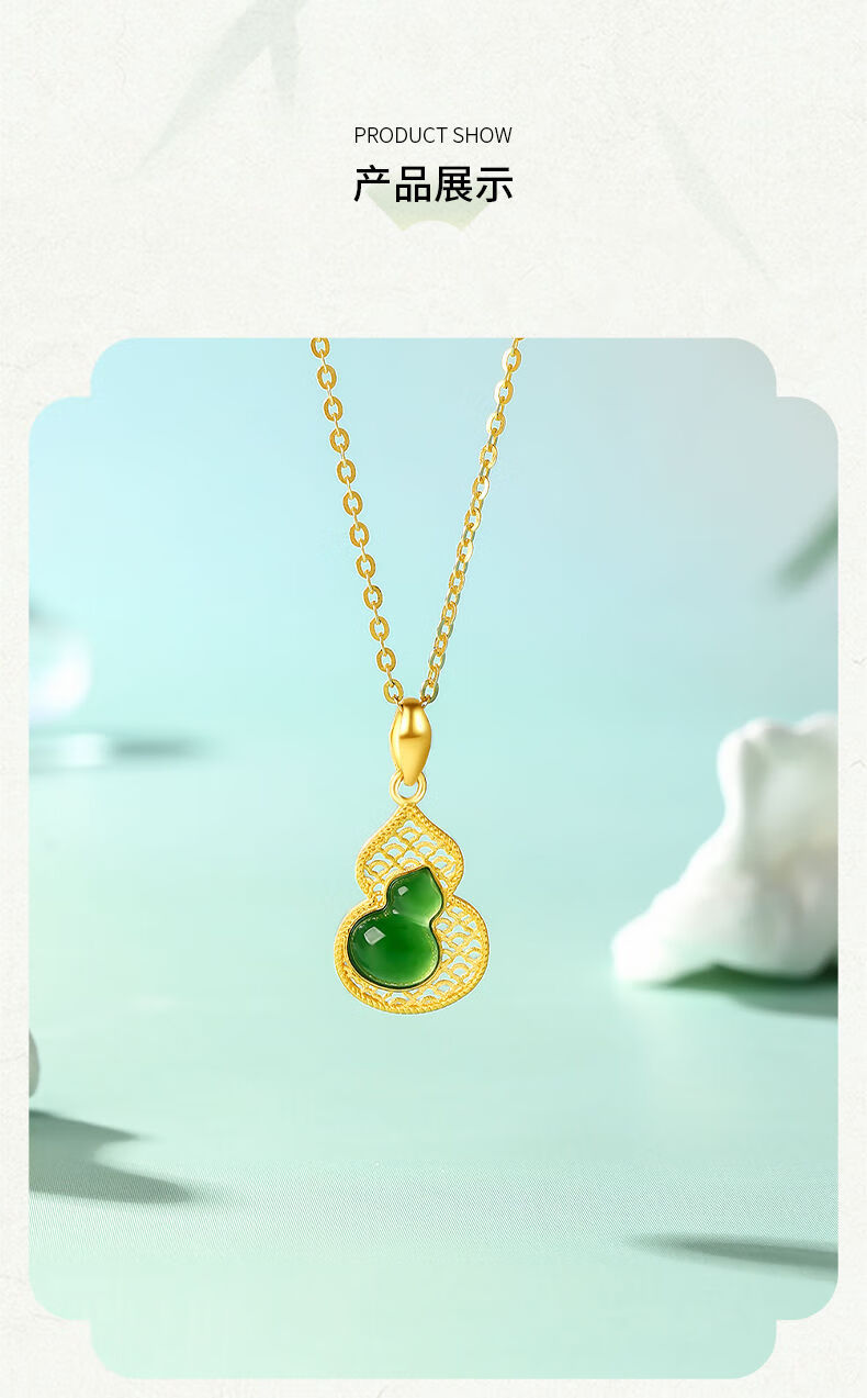 Only double/gold inlaid pendant pure gold gourd and field pendant Bifulu gift for mother 2025 gold inlaid jade gourd pendant - chain not included