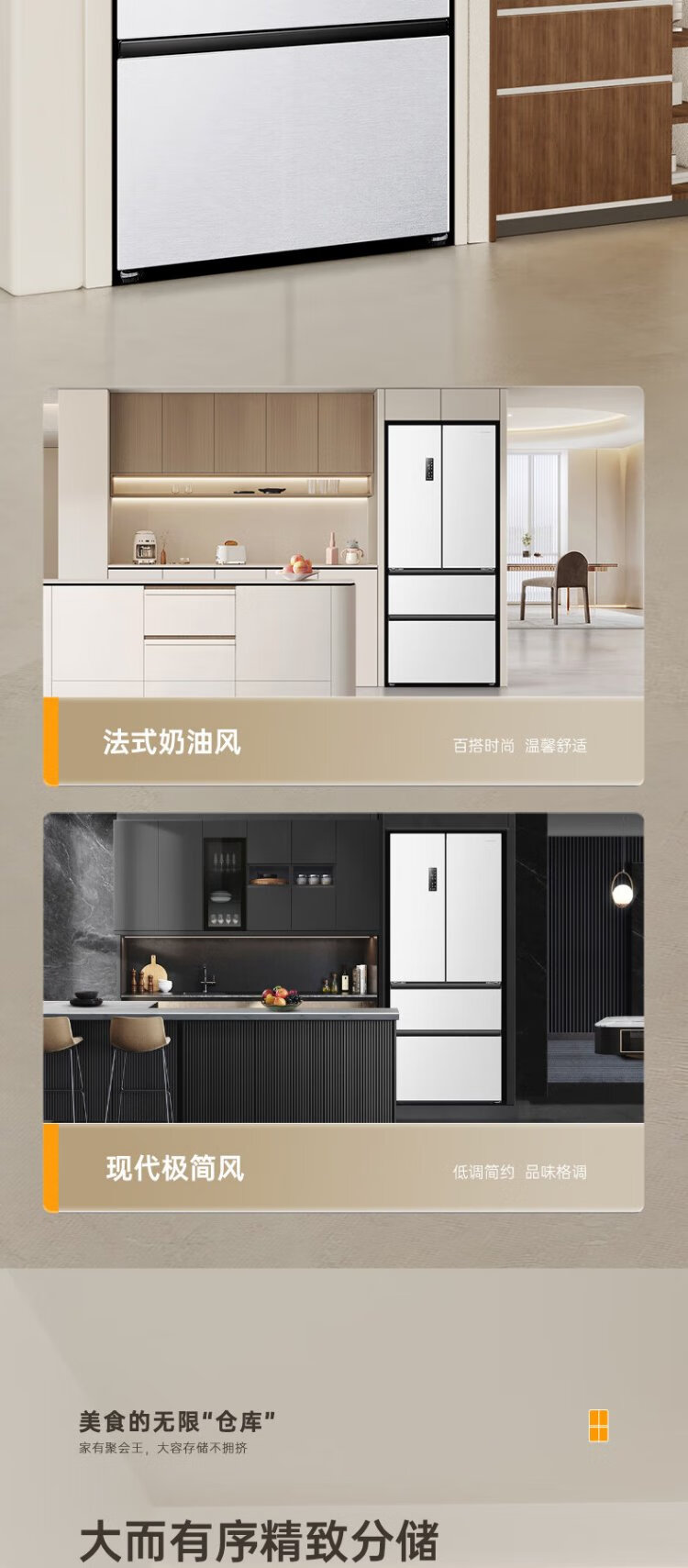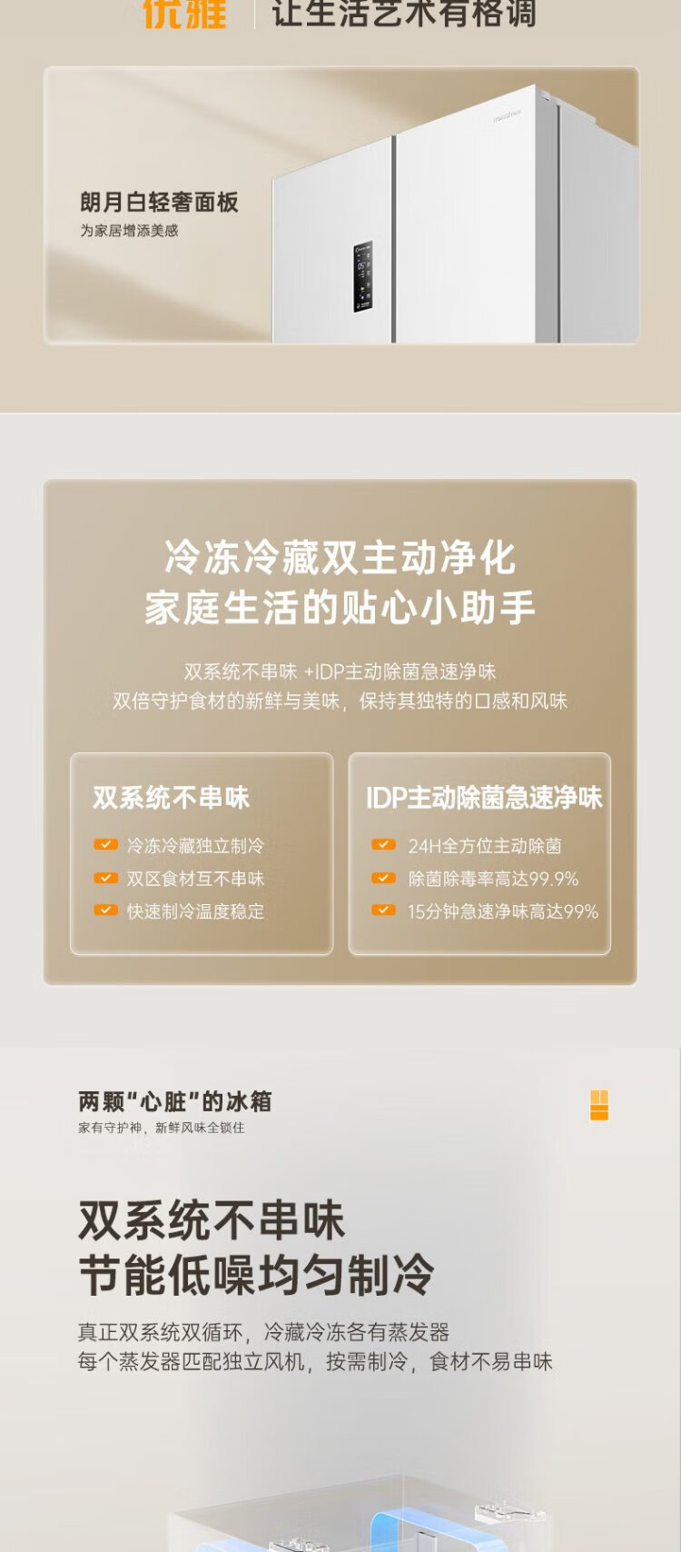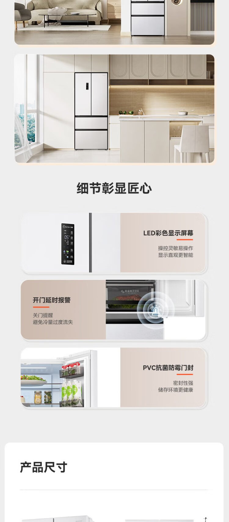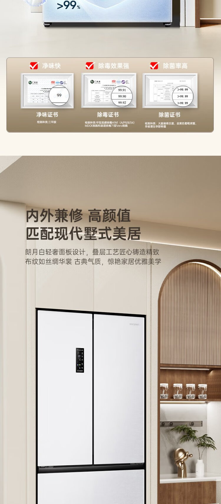 Rongsheng 526-liter dual-clean dual-system French multi-door four-door refrigerator household first-class energy efficiency air-cooled frost-free energy-saving large capacity BCD-526WD1MPA white national subsidy BCD-526WD1MPA