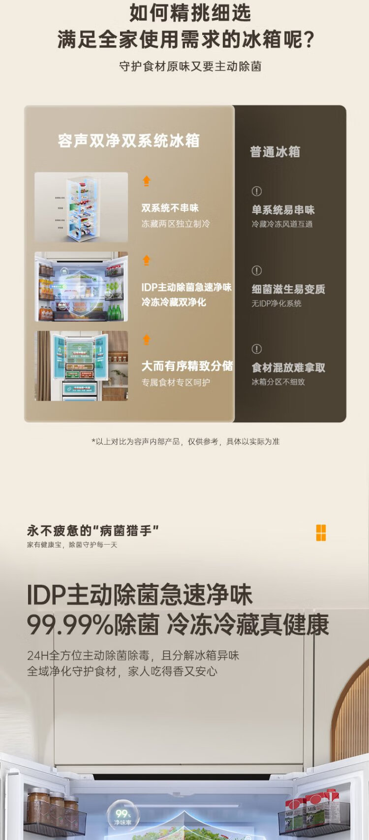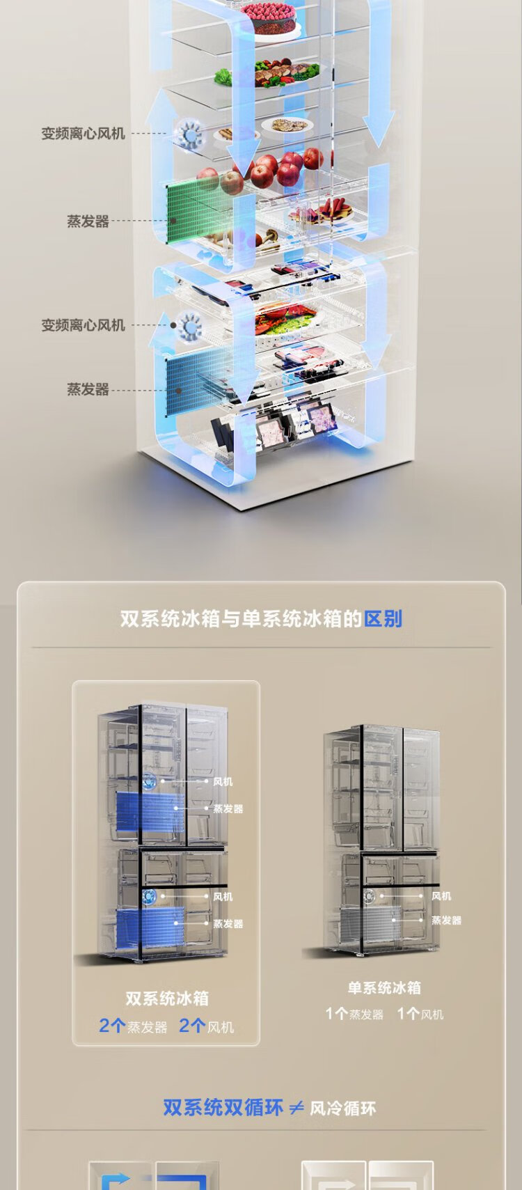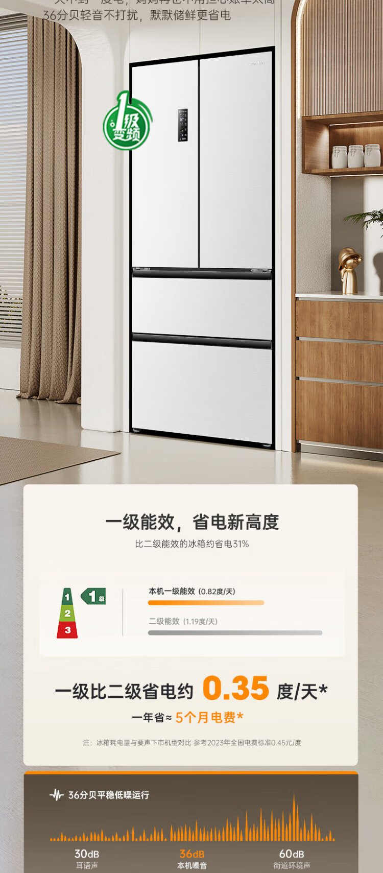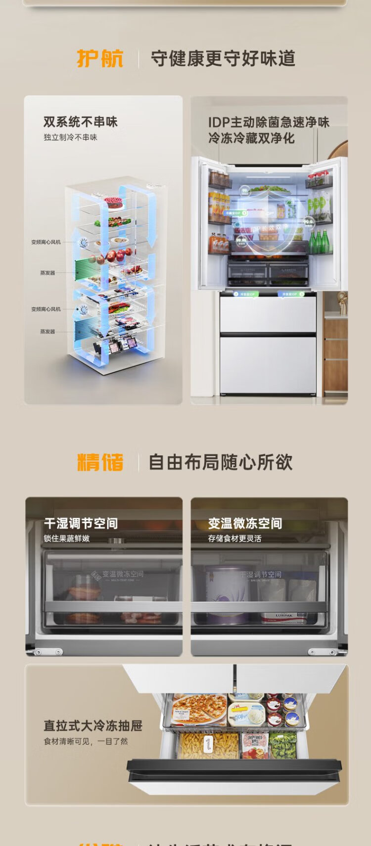 Rongsheng 526-liter dual-clean dual-system French multi-door four-door refrigerator household first-class energy efficiency air-cooled frost-free energy-saving large capacity BCD-526WD1MPA white national subsidy BCD-526WD1MPA