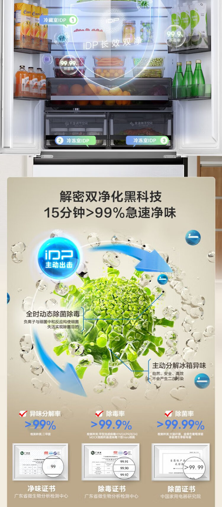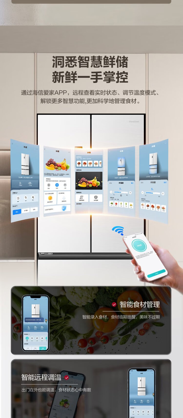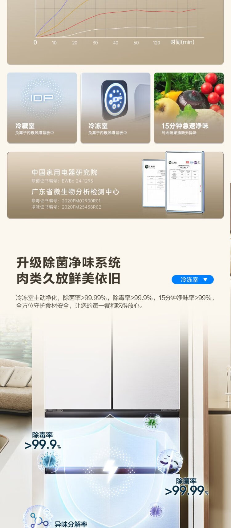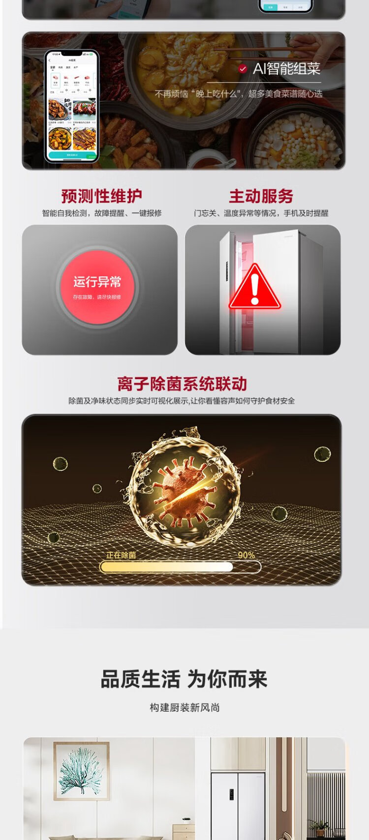 Rongsheng 526-liter dual-clean dual-system French multi-door four-door refrigerator household first-class energy efficiency air-cooled frost-free energy-saving large capacity BCD-526WD1MPA white national subsidy BCD-526WD1MPA