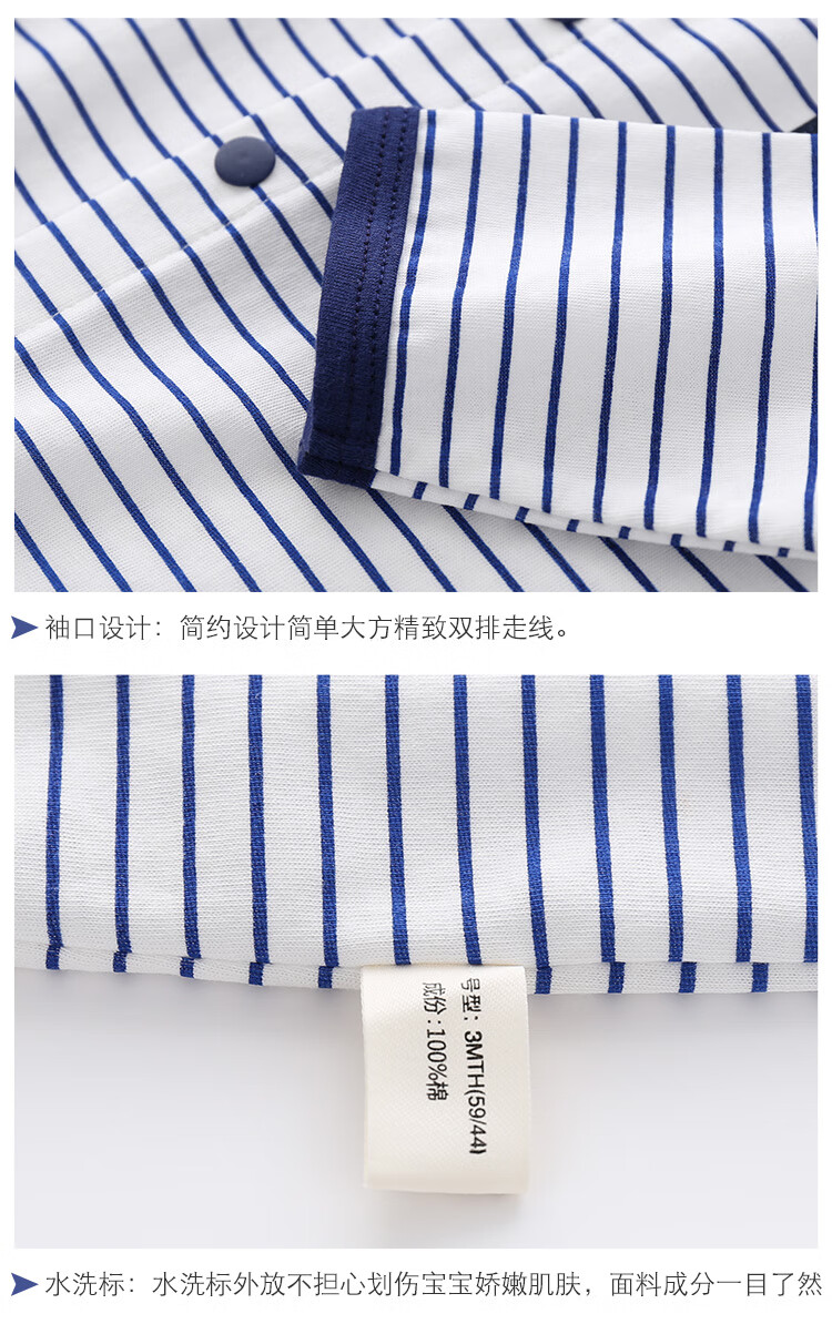 Baby summer ultra-thin pure cotton jumpsuit for men and women, baby crawling clothes, home clothes, thin clothes, baby clothes, Category A, boat + stripes (thin style) two-pack 80cm 16-22Jin Jin is equal to 0.5 kg