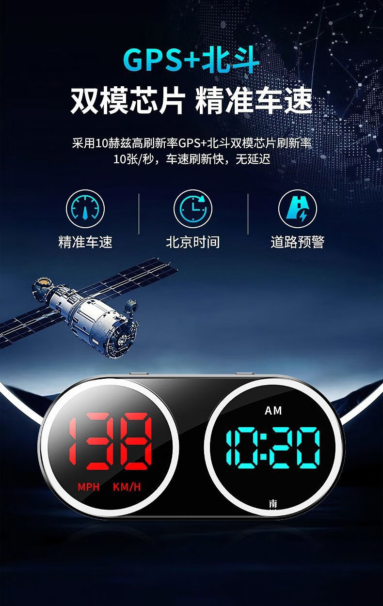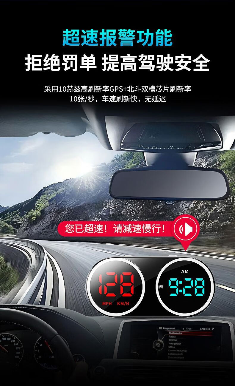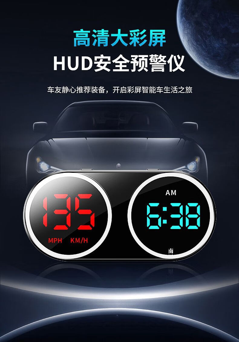 Universal electronic dog 2025 new head-up HUD dual-screen safety warning device intelligent car voice broadcast speed measurement dual-dial warning device