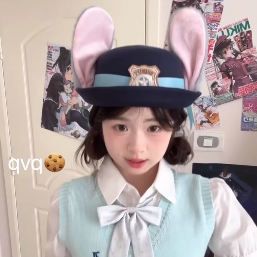 Zootopia Judy Rabbit Officer Flip-brim Hat Cute and Sweet Girly Heart Beret Cartoon Rabbit Ears Hat Judy Hat Children's Version (54CM)