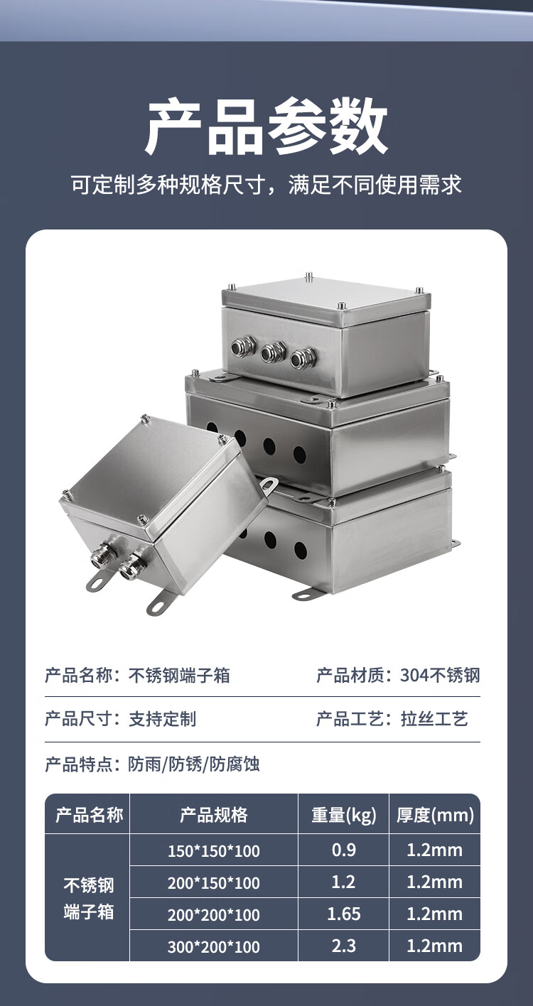Outdoor stainless steel waterproof junction box 304/316 customized cable branch junction box three-proof UK waterproof junction box 150*150*100304
