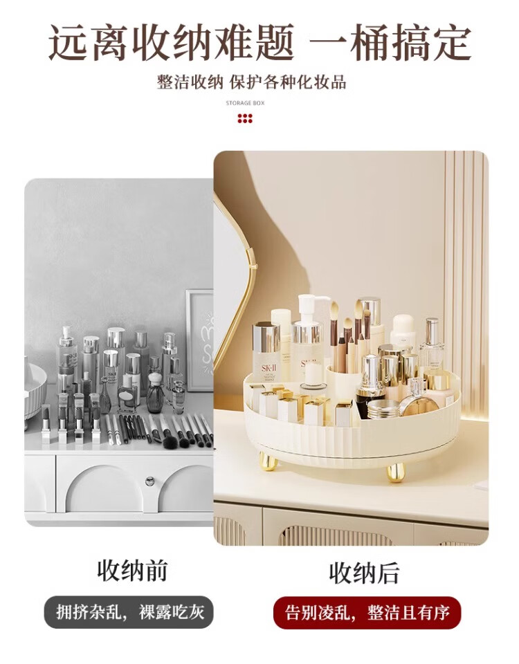 Rotating cosmetic storage box desktop large capacity skin care product lipstick storage box dressing table internet celebrity storage shelf cream platinum 360 rotating storage