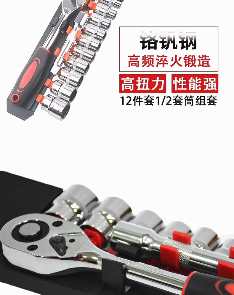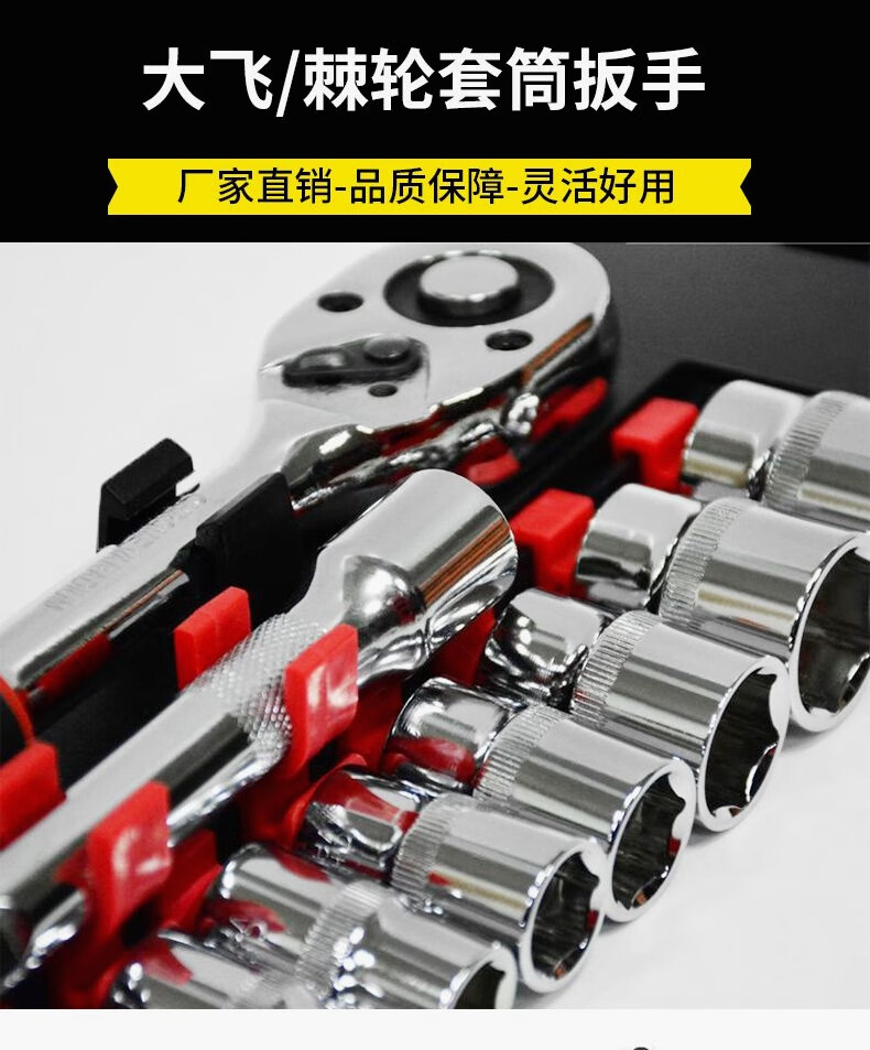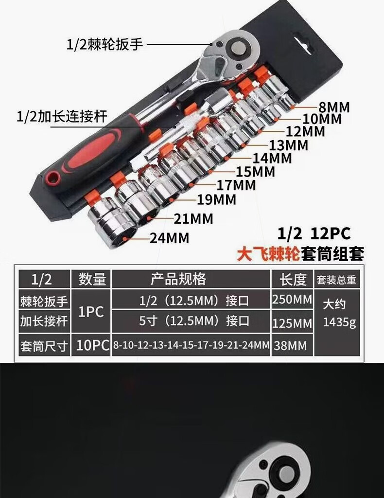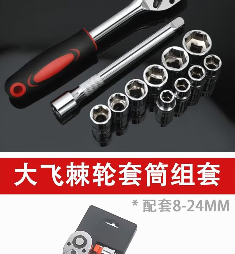 Dafei 12-piece ratchet wrench labor-saving quick repair socket tool car and motorcycle manual wrench combination 8-24 chrome-plated 1/2 Dafei 12-piece combination