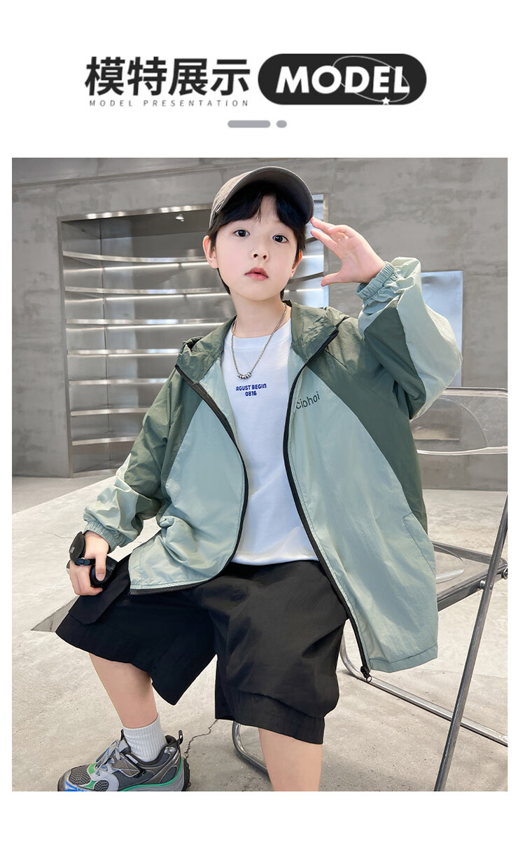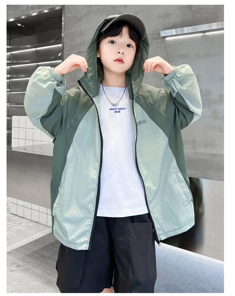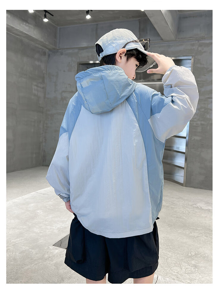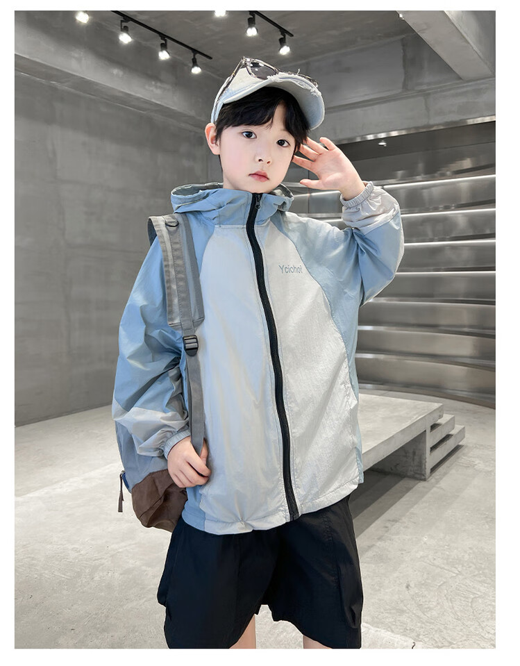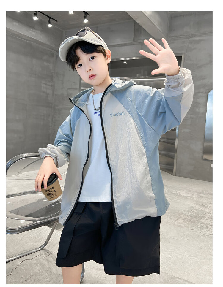 Children's clothing, children's sun protection clothing, summer 2025 new boys' summer clothing, medium and large children's ice silk sun protection clothing, light skin clothing, gray 160 cm