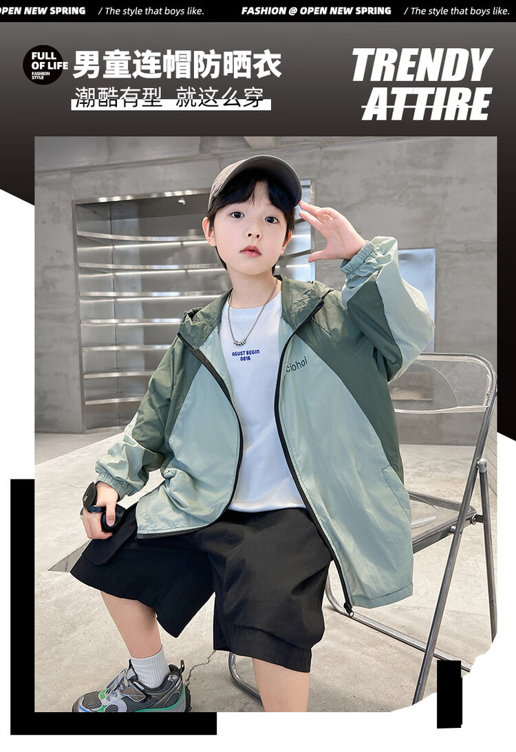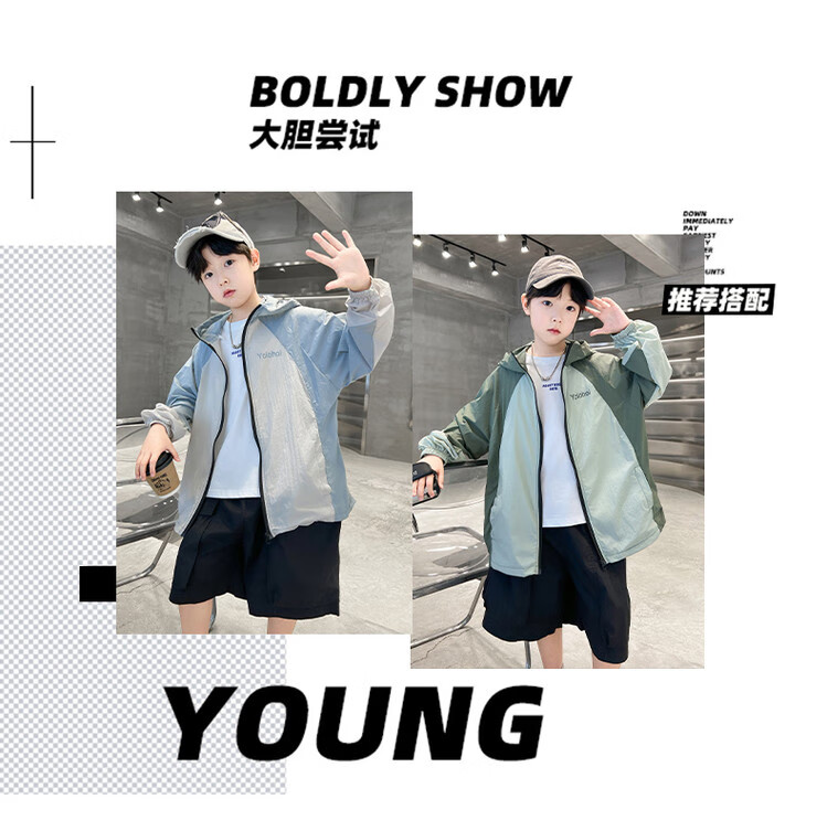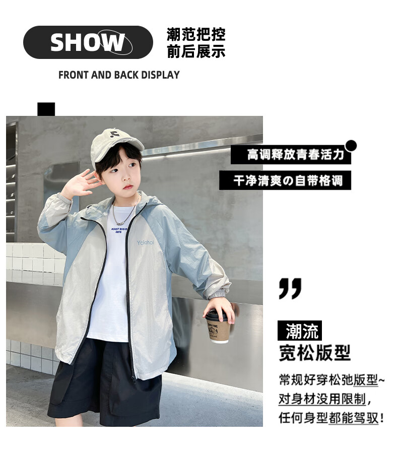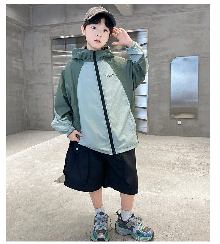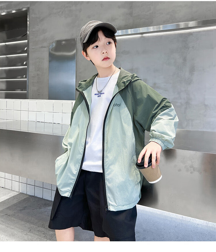Children's clothing, children's sun protection clothing, summer 2025 new boys' summer clothing, medium and large children's ice silk sun protection clothing, light skin clothing, gray 160 cm