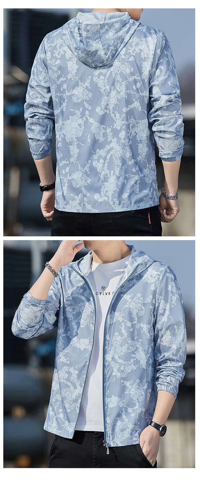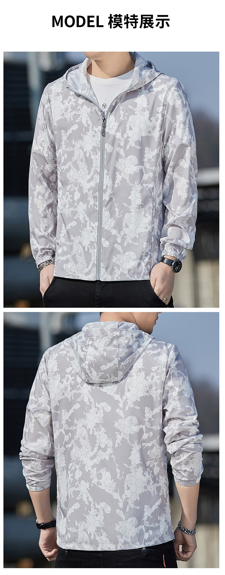 Summer thin sun protection clothing for men, outdoor breathable sun protection clothing, men's hooded jacket, outdoor fishing clothing, light gray 2XL