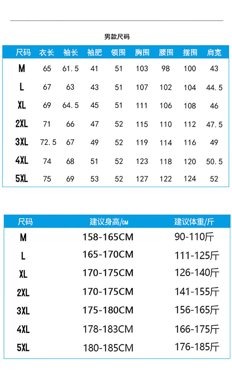 China (cm) 165 / 88-90 170 / 96-98 175 / 108-110 180 / 118-122 185 / 126-130