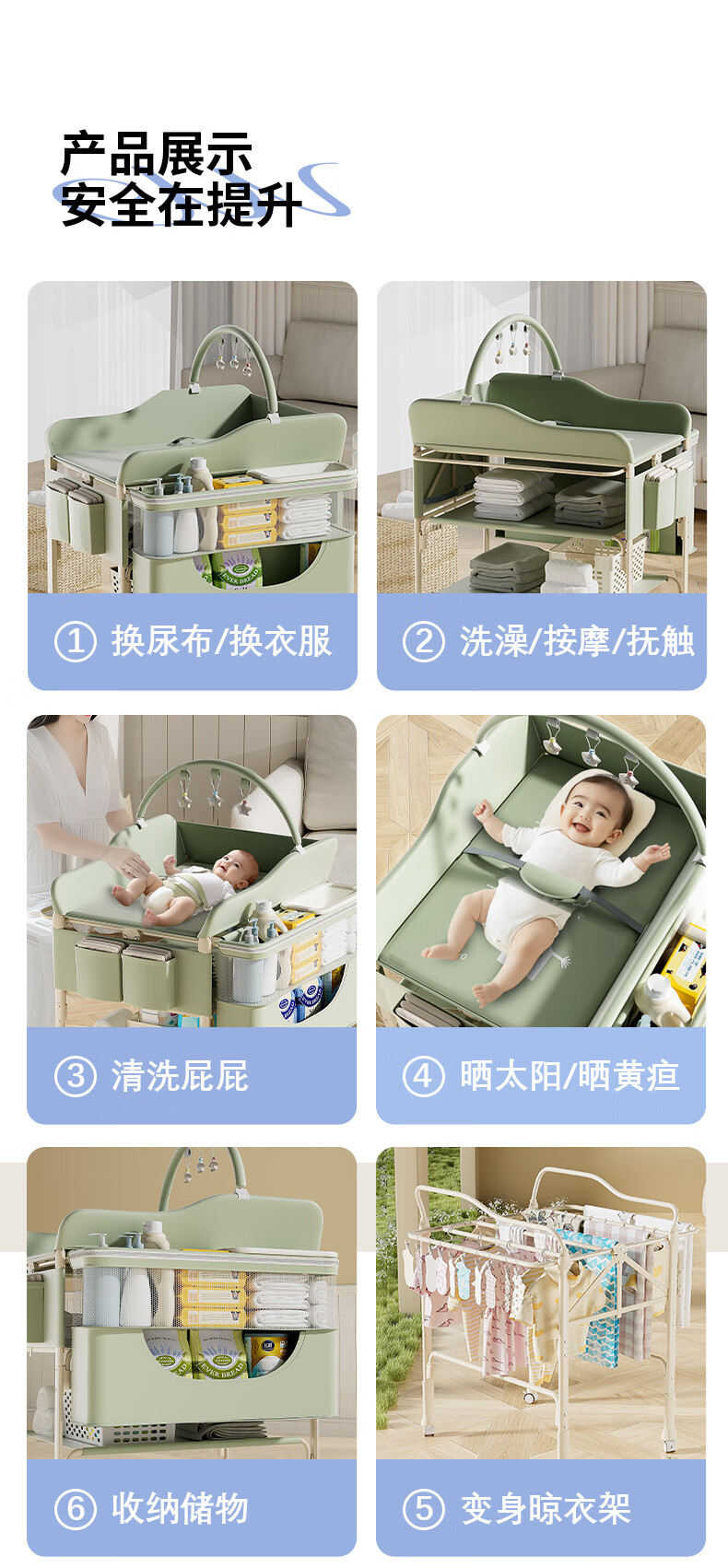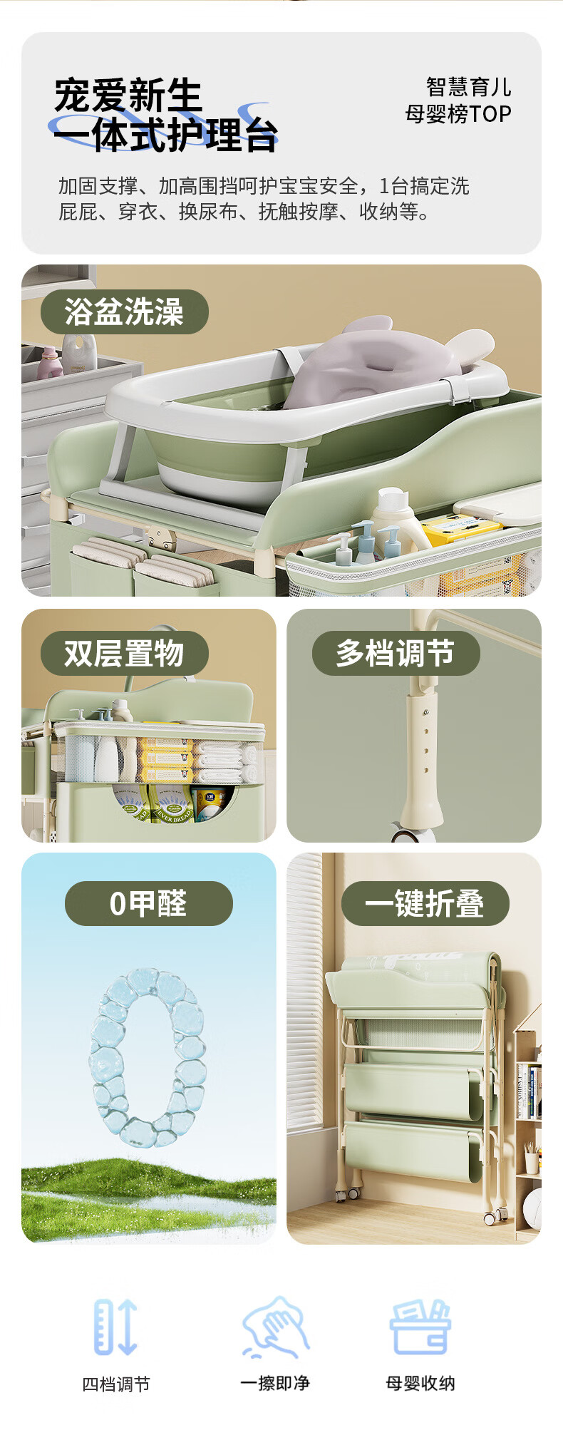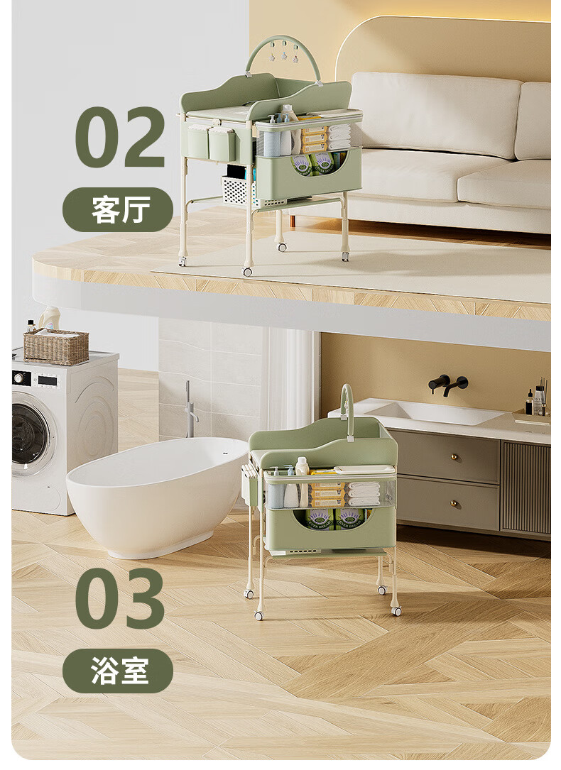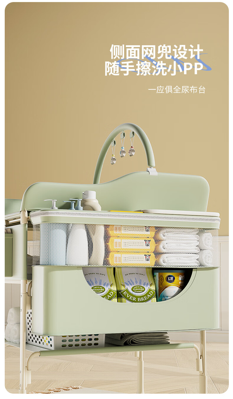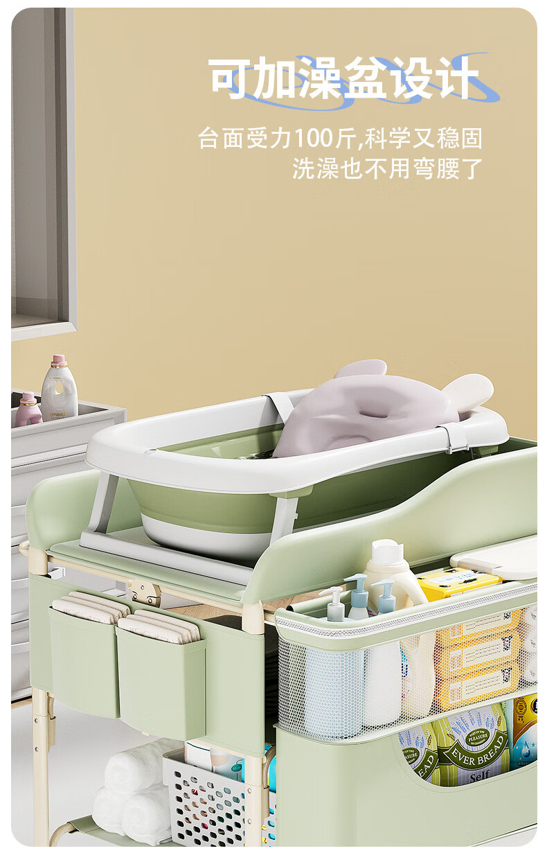 Tong Xien Diaper Table Baby Care Table Baby Changing Table Newborn Bath Massage Touching Table Foldable Beige-Exclusive Edition