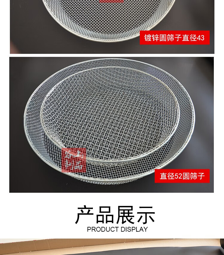 Wire sieve, coal carbon slag screen, chestnut sieve, sand and gravel sieve, workpiece sieve, grain sieve, diameter 52 cm, 8 mm hole