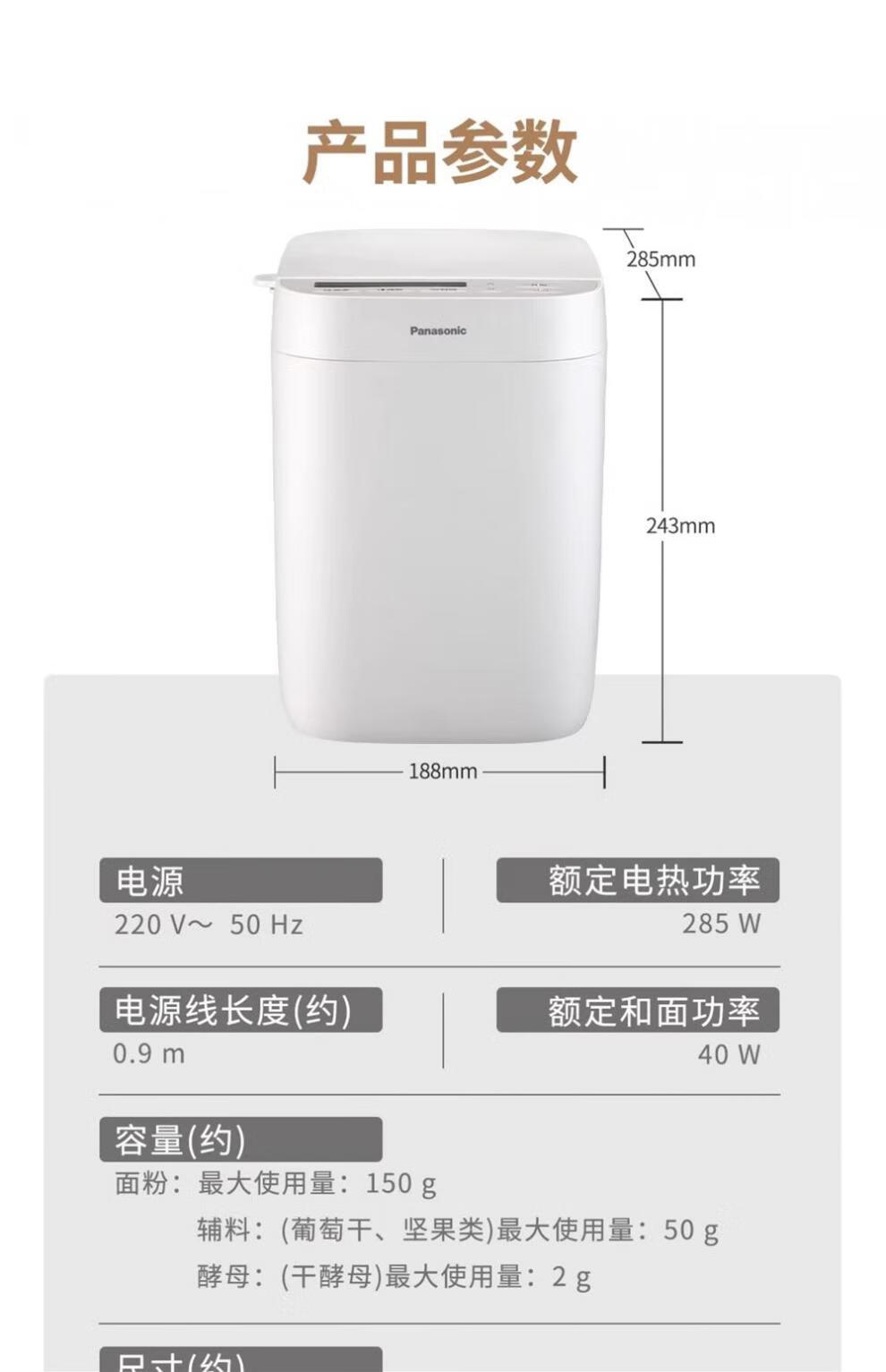 Panasonic Bread Machine Home Bread Machine Reservable Fully Automatic Intelligent Kneading Multifunctional Bread Machine PD051 PD051 White Prototype Trial Body Slightly Flawed