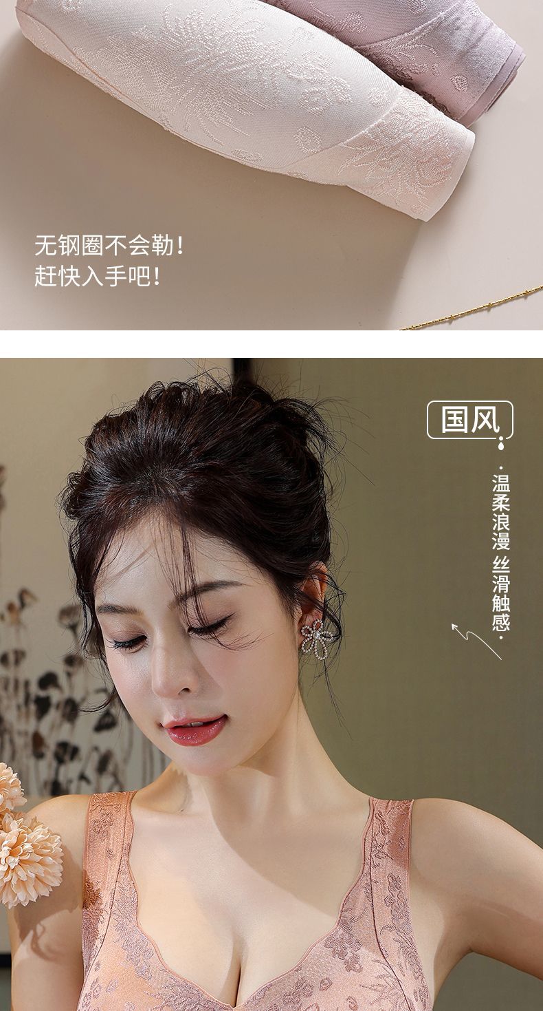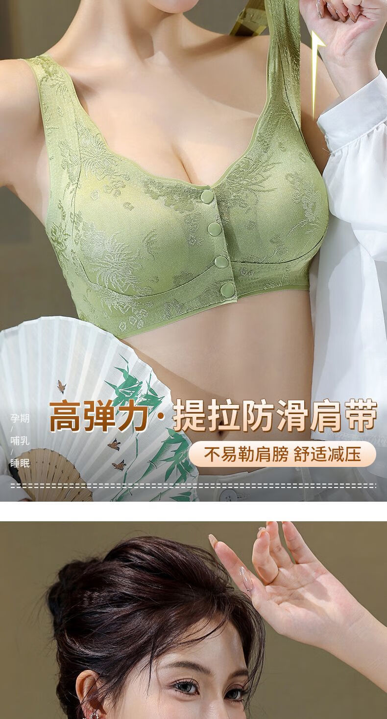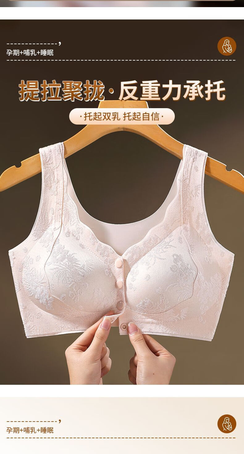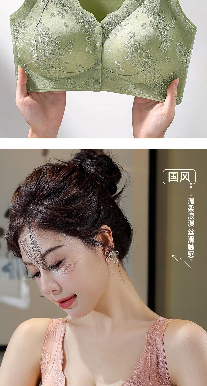 LangSha's new style seamless Chinese style embossed front button underwear for women push-up anti-sagging ice silk beautiful back bra thin vest two-piece sandalwood coffee + ink black XL suitable for 120-140 Jin Jin equals 0.5 kg