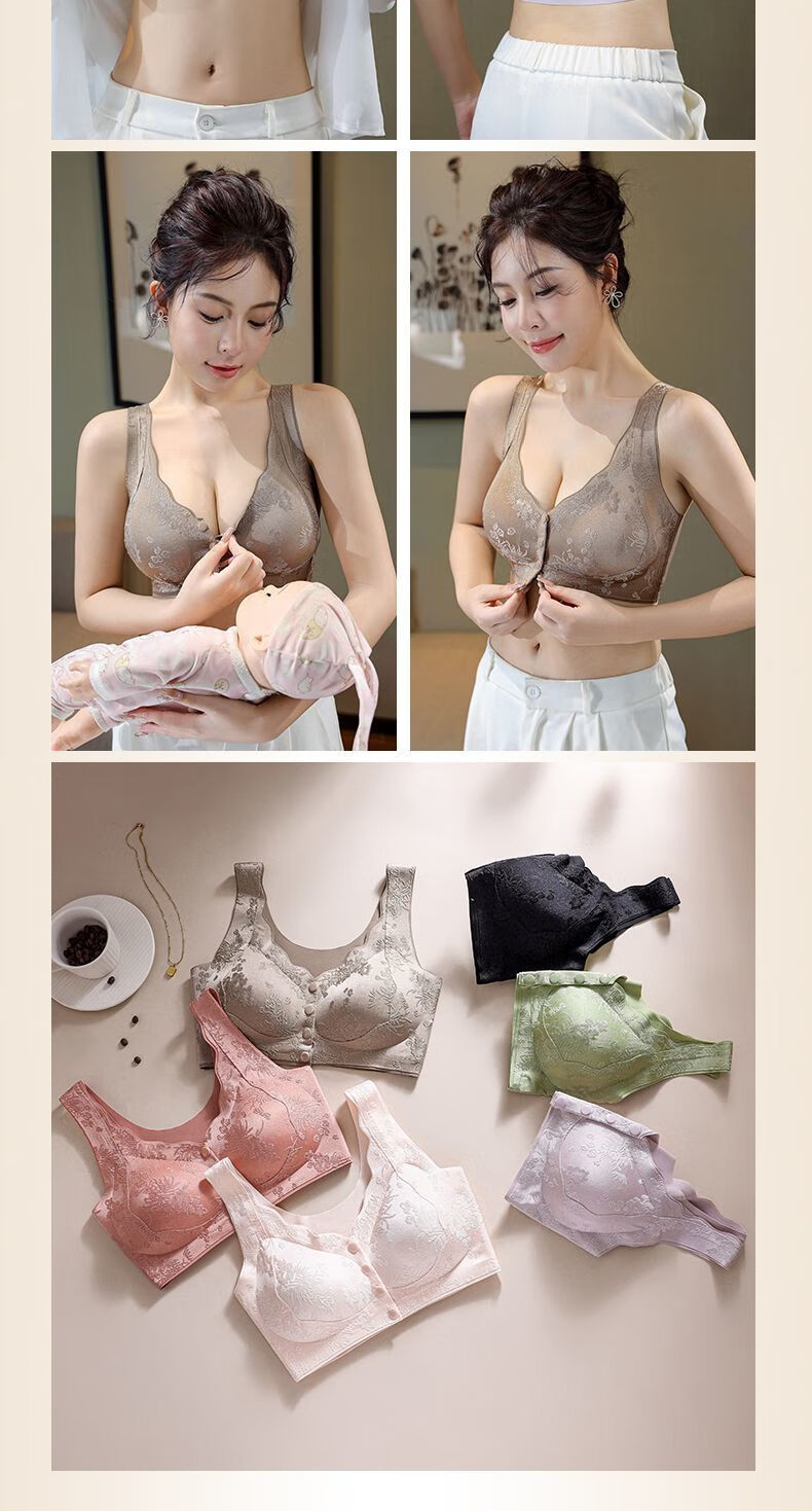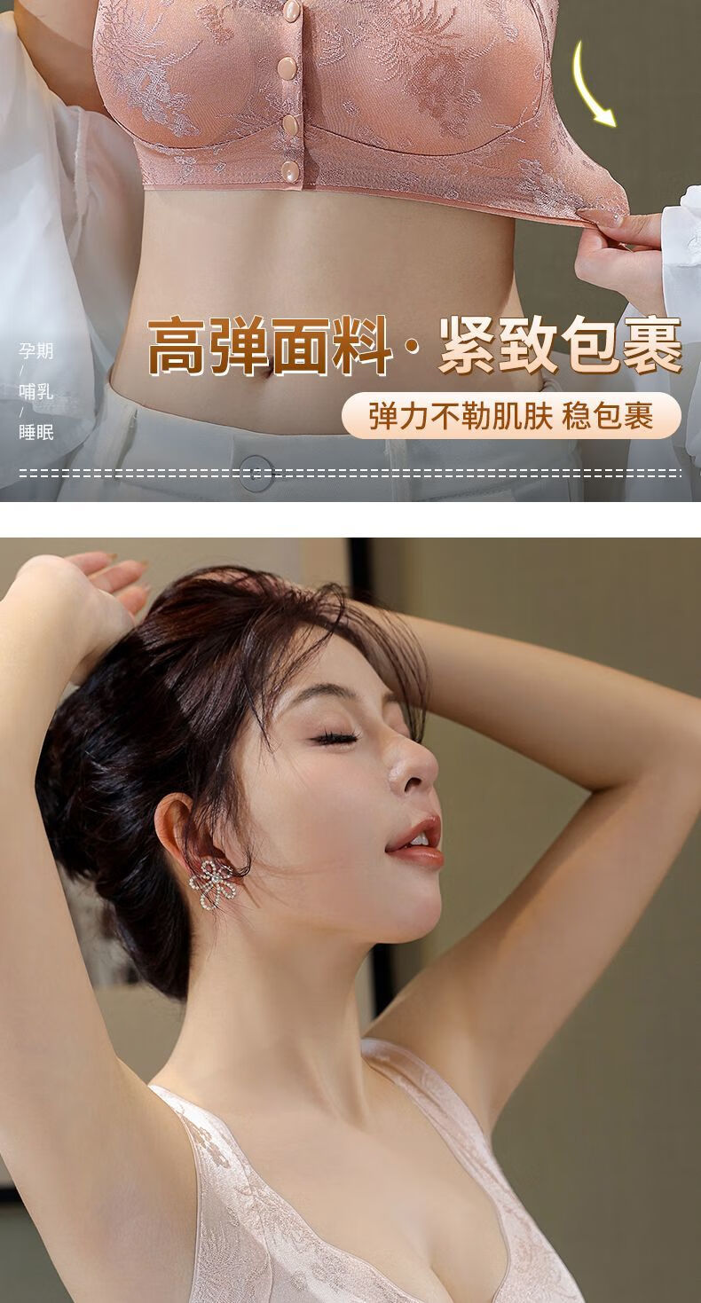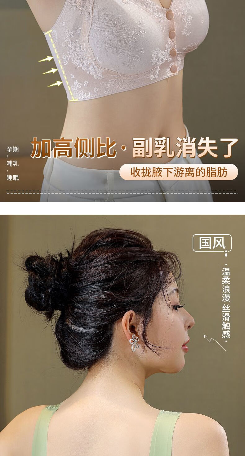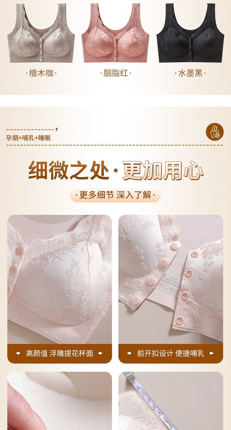 LangSha's new style seamless Chinese style embossed front button underwear for women push-up anti-sagging ice silk beautiful back bra thin vest two-piece sandalwood coffee + ink black XL suitable for 120-140 Jin Jin equals 0.5 kg