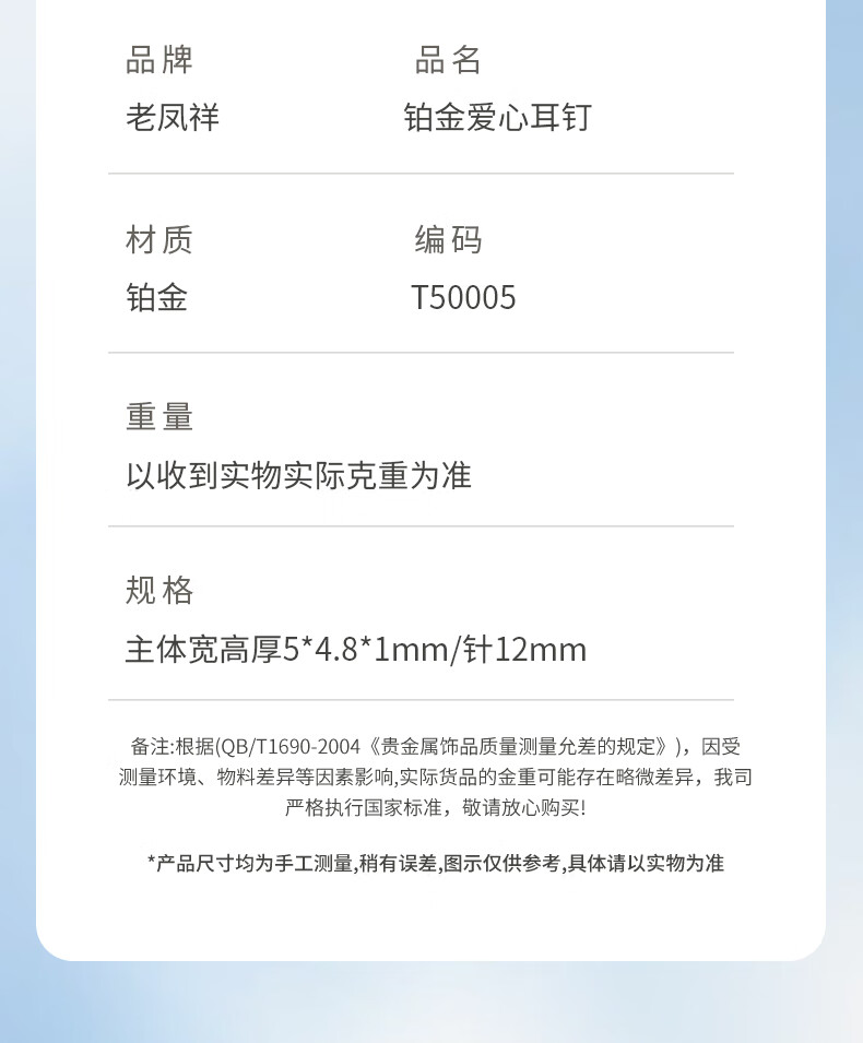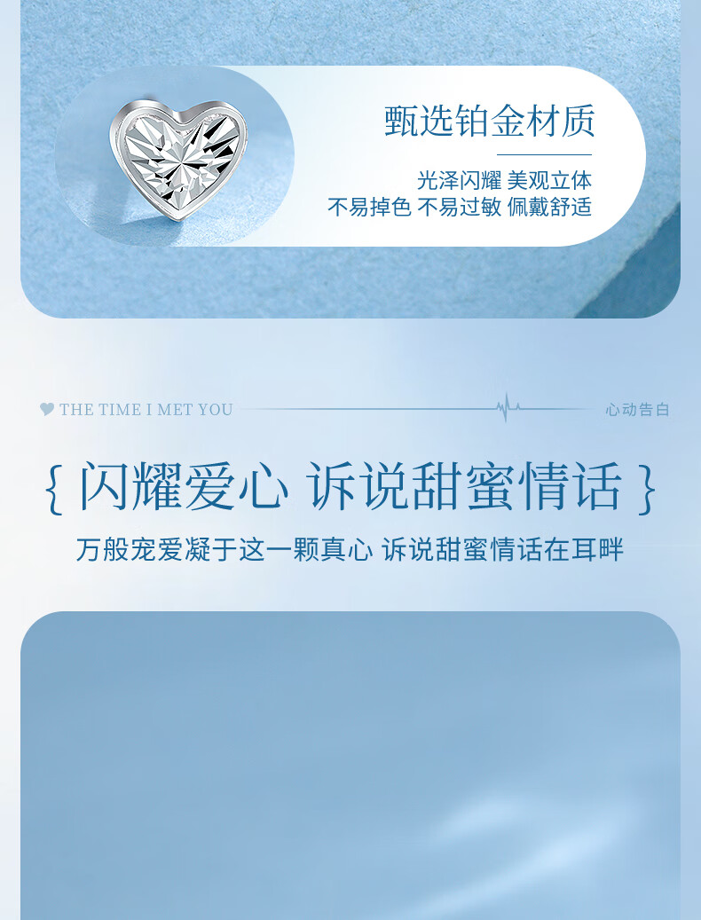 Lao Fengxiang platinum love earrings for women platinum confession earrings priced wedding anniversary gift for girlfriend and wife platinum love earrings