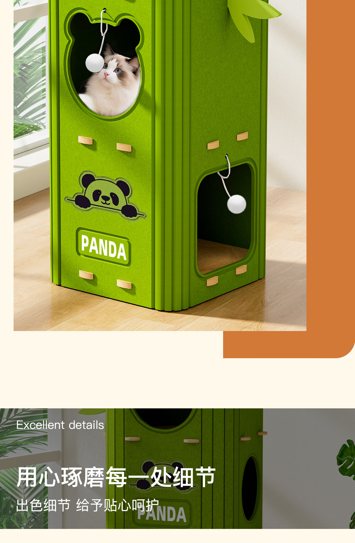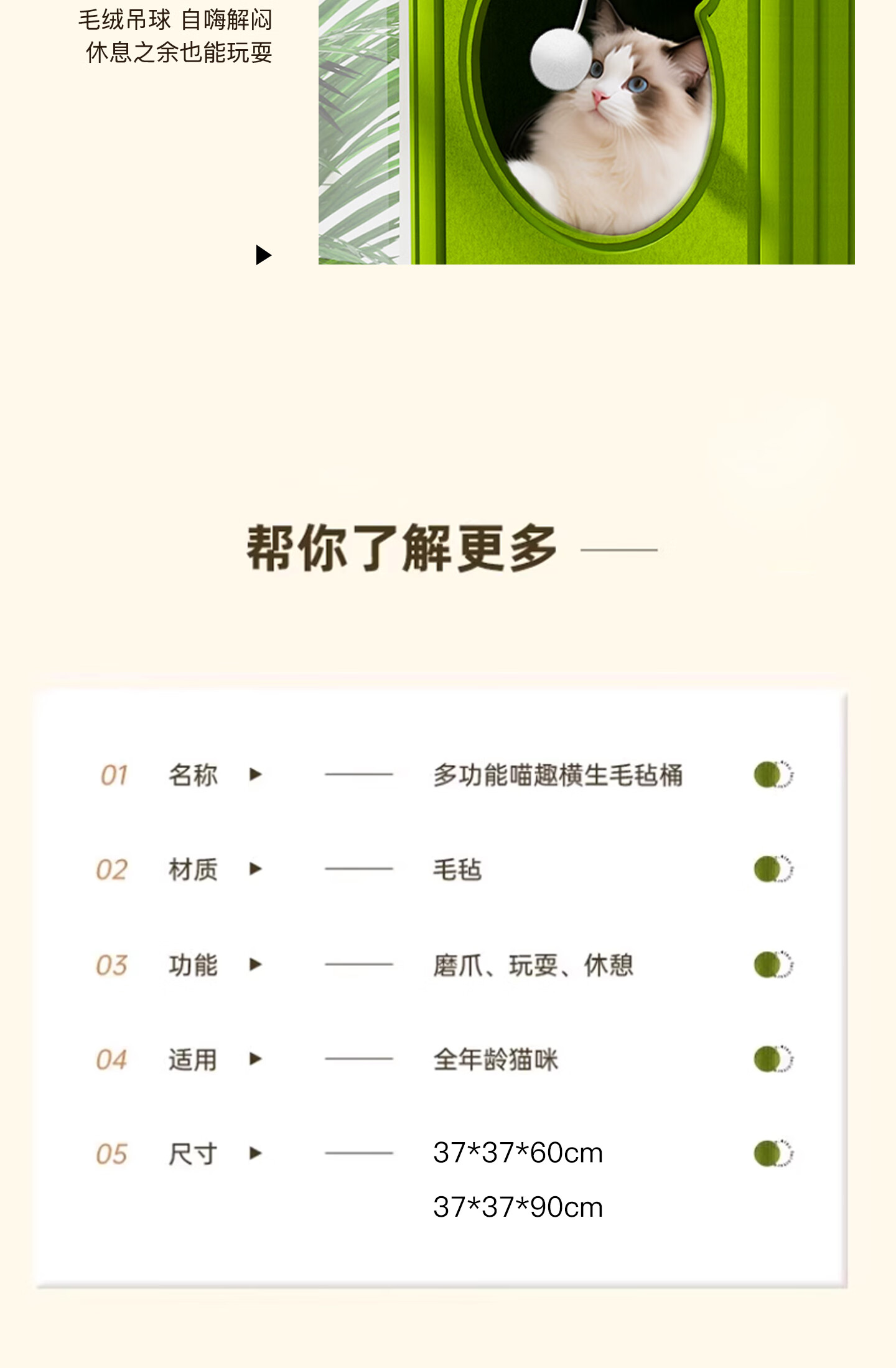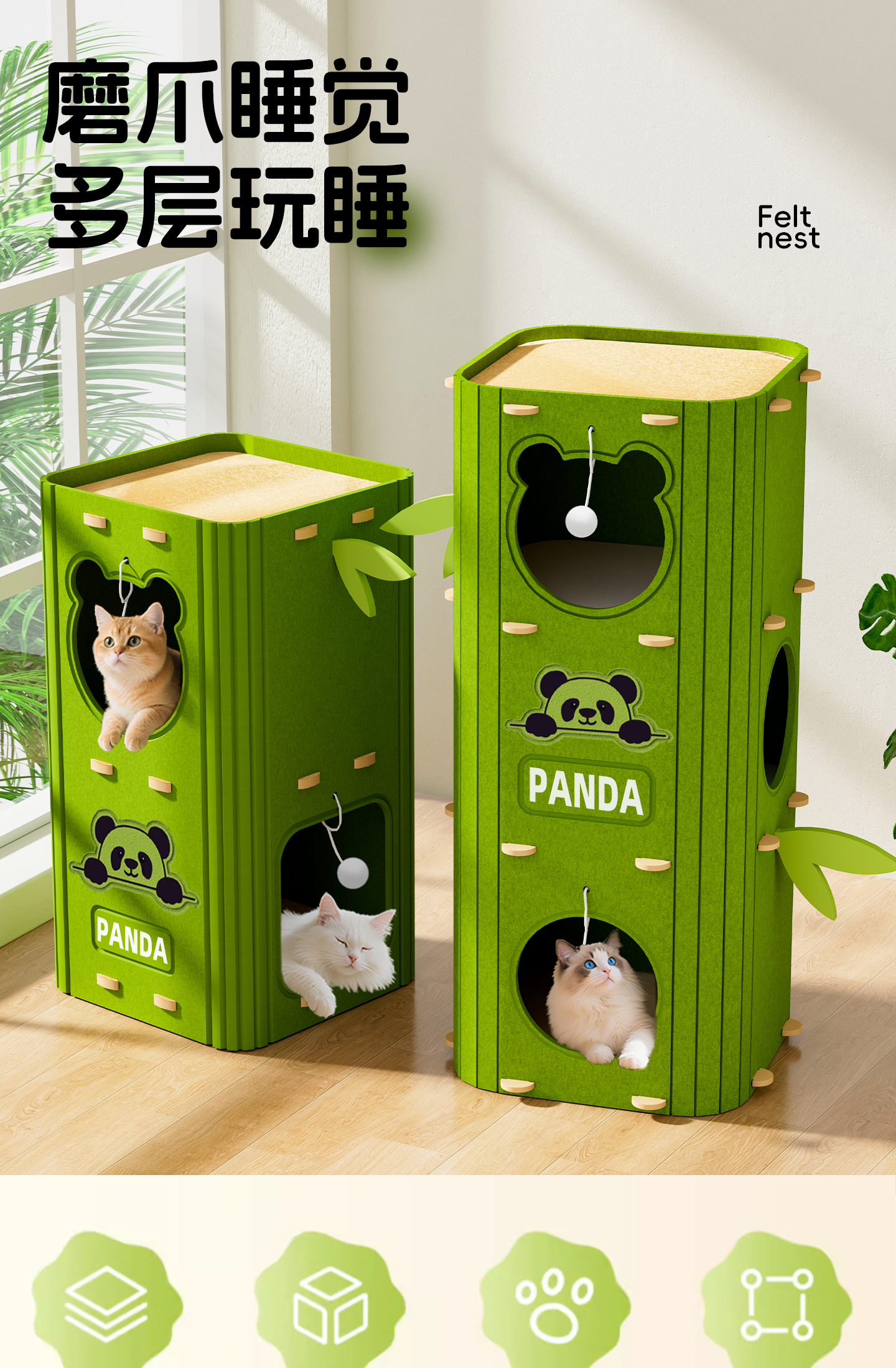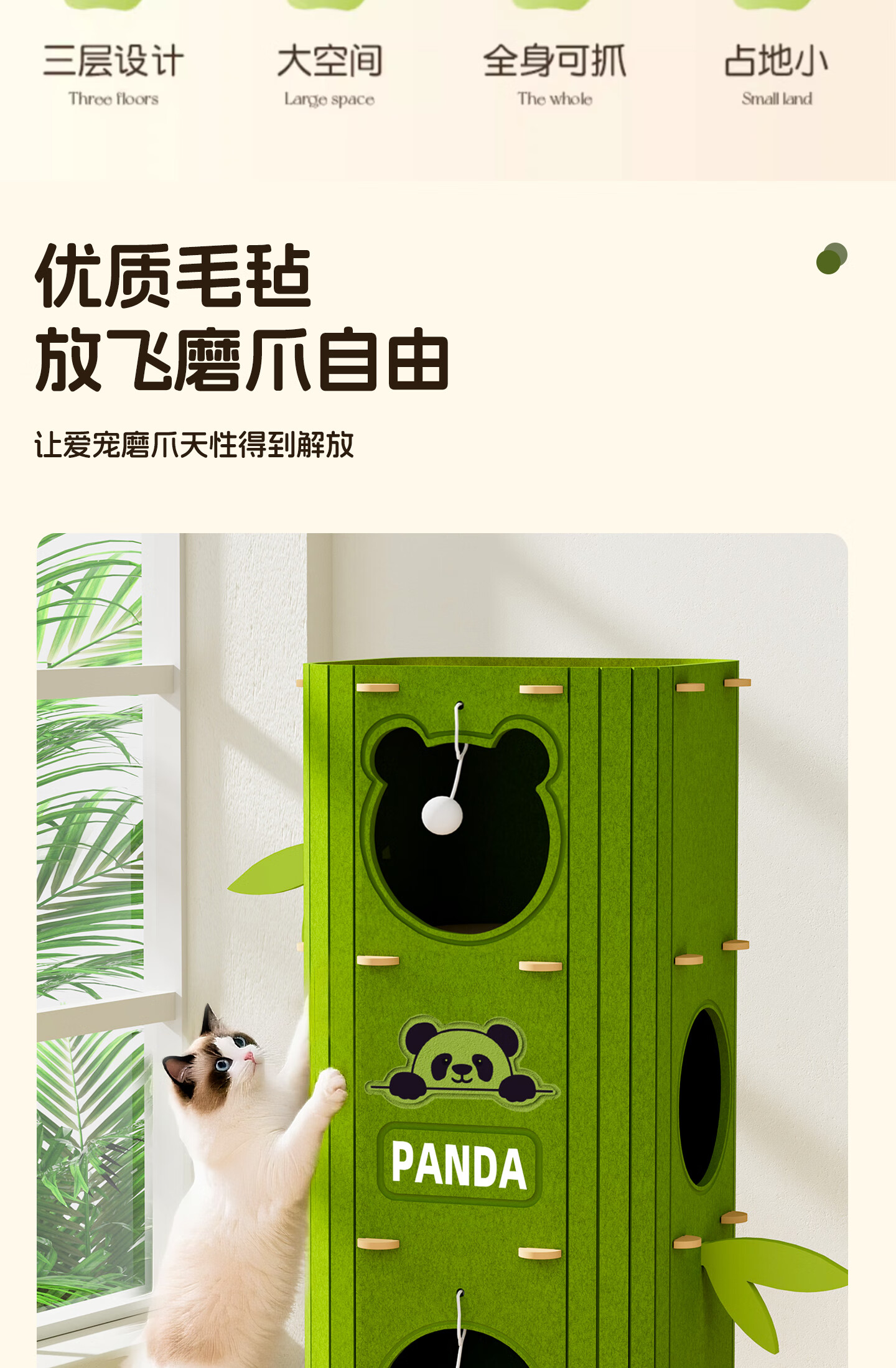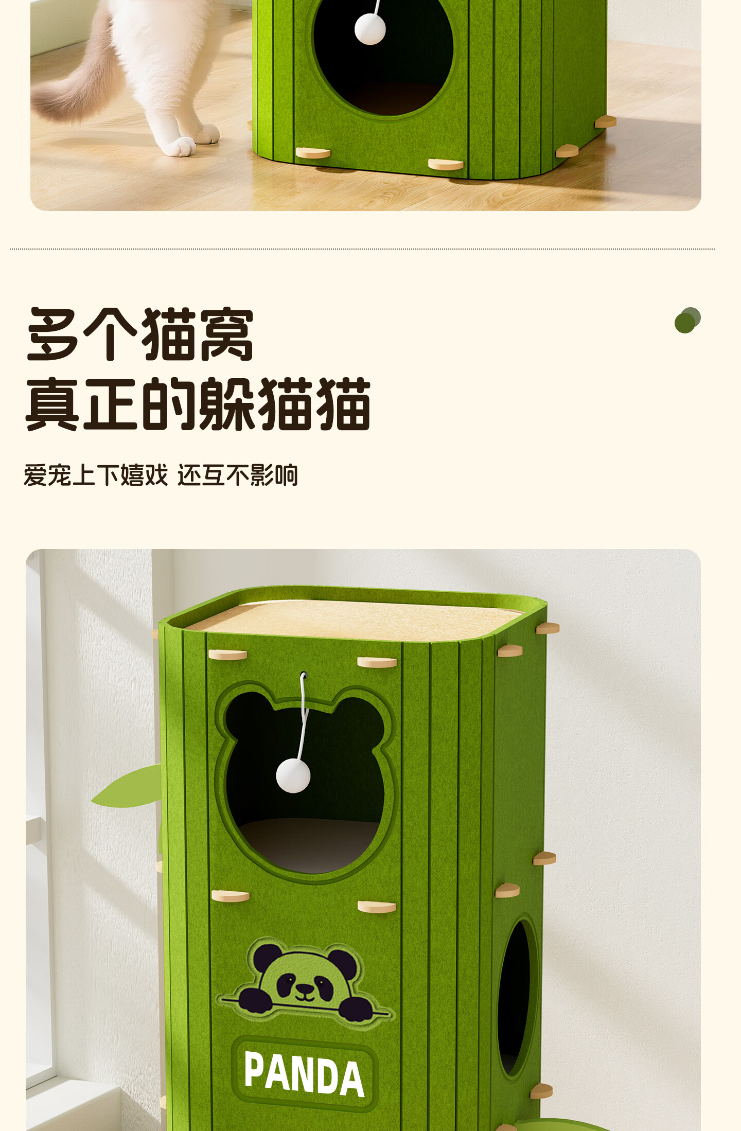 Yupetfang Tree Cave Cat Nest Cat Villa Multi-layer Cat Nest Four Seasons Universal Cat Climbing Frame Cat Scratching Board Jumping Platform All-in-one Wear-Resistant and Non-shedding Three-layer Olive Green Villa Cat Nest