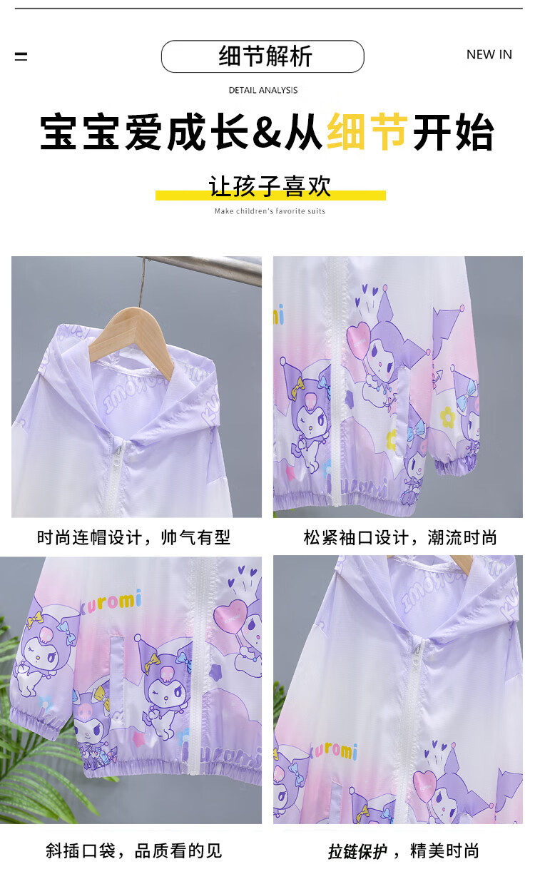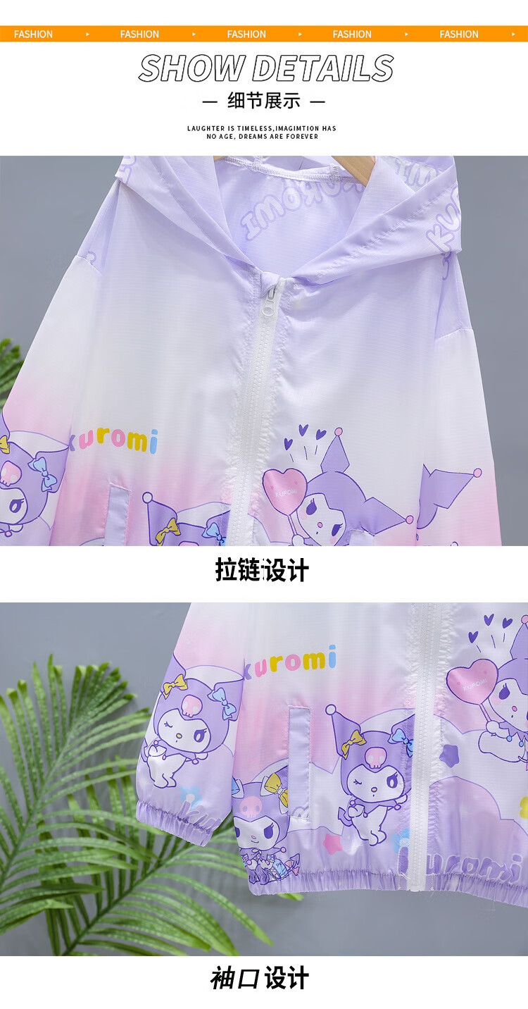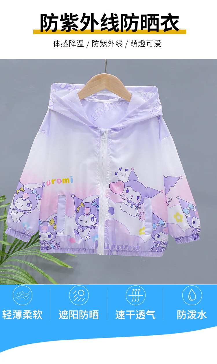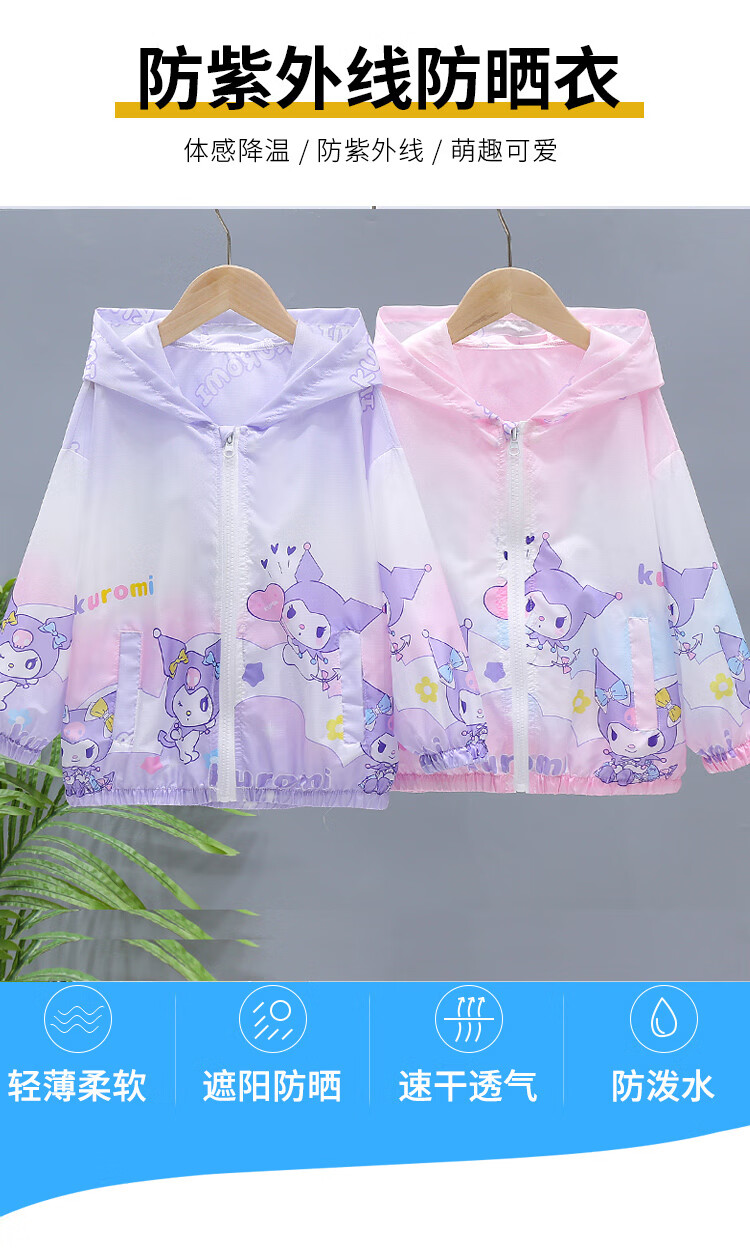 Disney Girls' Sun Protection Clothing Summer Thin 2025 New Children's Air Conditioning Shirt Summer Jacket Kuromi Sun Protection Clothing Lightweight Pink 120 Recommended height 110 cm