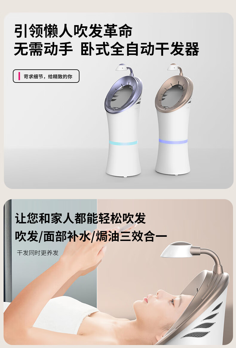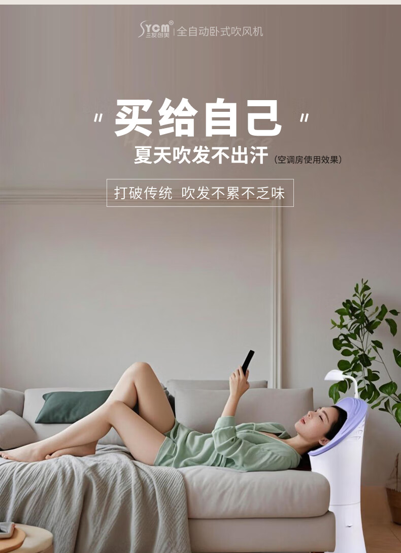 SYCM fully automatic horizontal hair dryer smart hair dryer vertical lazy hands-free home constant temperature hot and cold negative ion hair care barber shop high power quick dry elegant white (host + recliner)