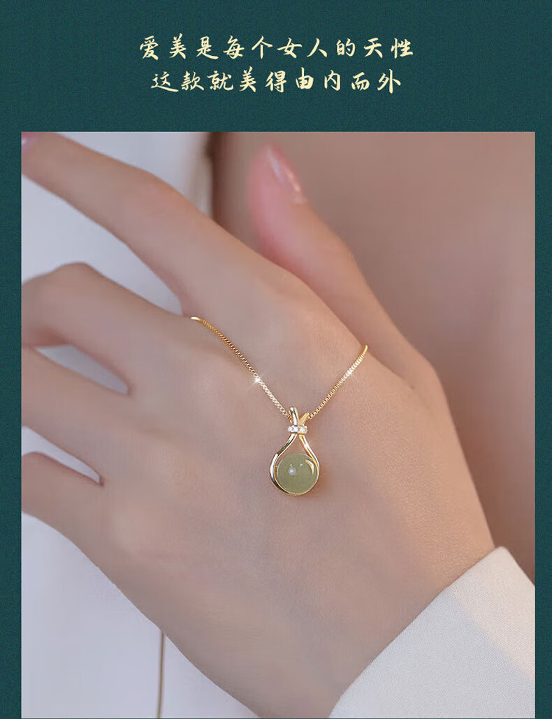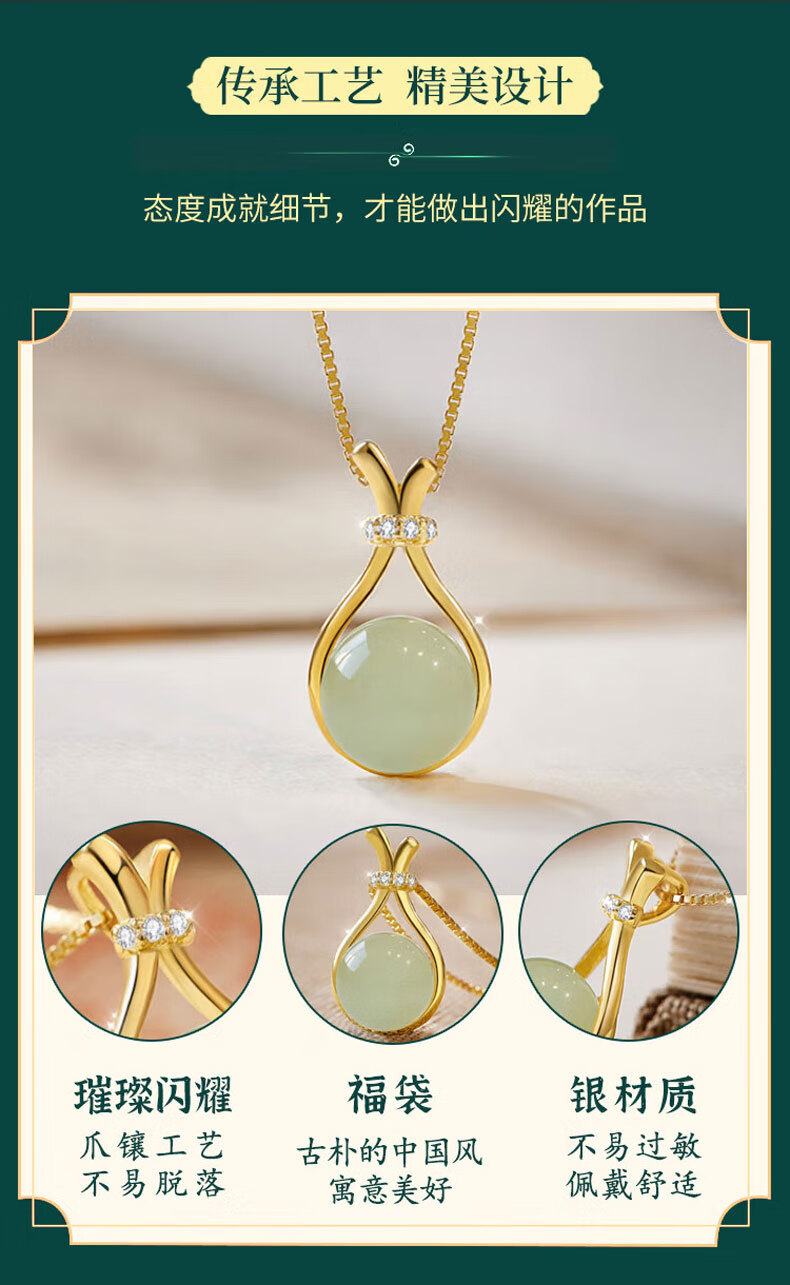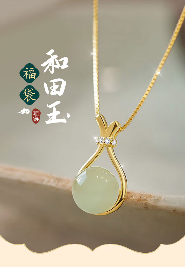 Lao Fengxiang S925 Silver Hotan Jade Lucky Bag Necklace Light Luxury Jewelry Pendant 520 Valentine's Day Birthday Gift for Girlfriend and Lover When/Next Day Delivery - S925 Hotan Jade Lucky Bag Necklace Type A