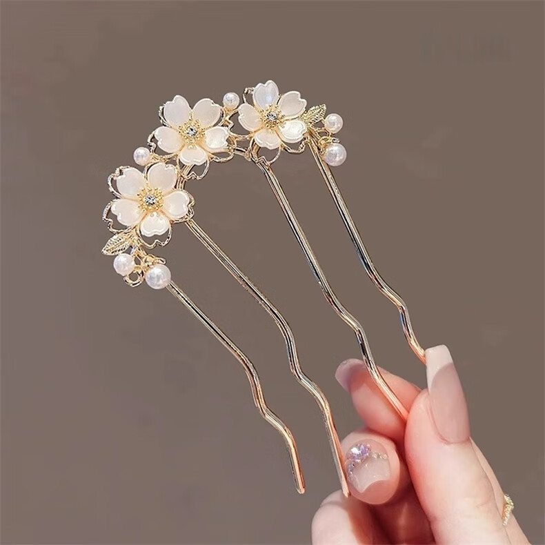 High-end forest style ins style pearl flower wavy hair comb new simple U-shaped hairpin hairpin for hair on the back of the head rhinestone flower insert comb hairpin