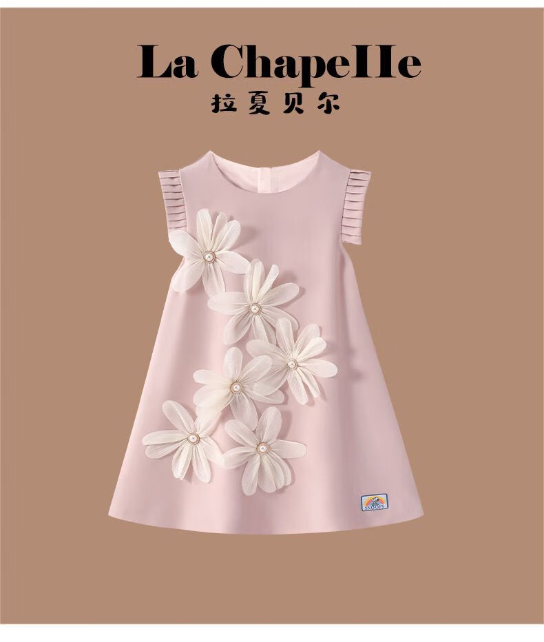 La Chapelle Girls Summer Dress 2026 New Dopamine Princess Dress Girls Fashionable Fresh Flower Dress Yellow Princess Dress 90 Recommended Height 80-90cm