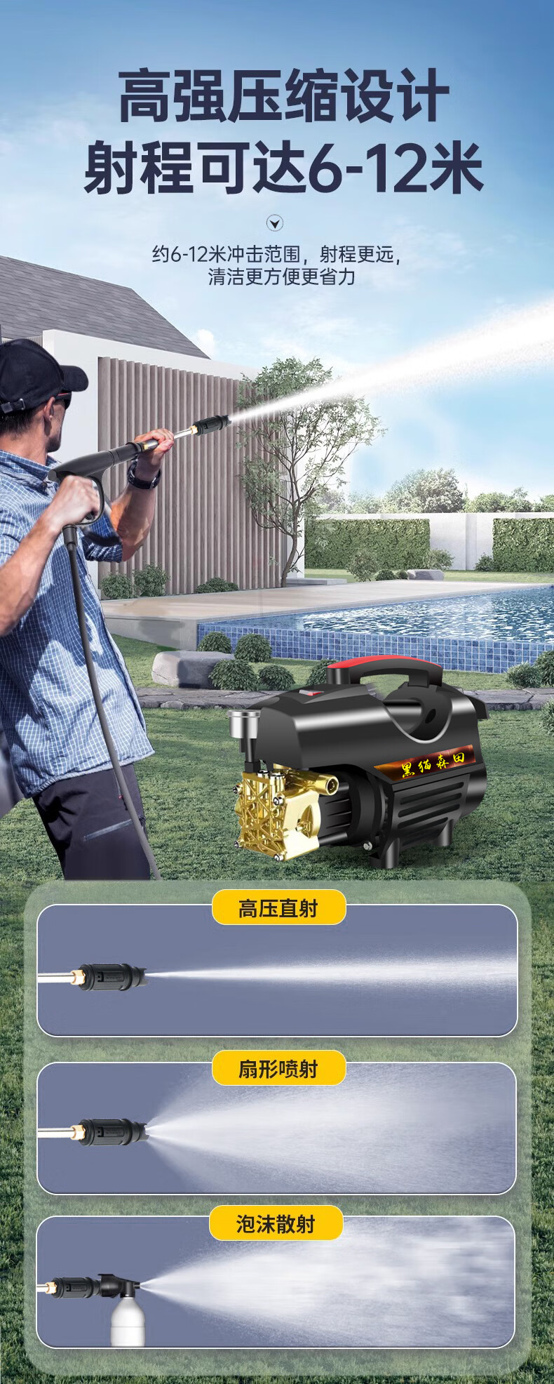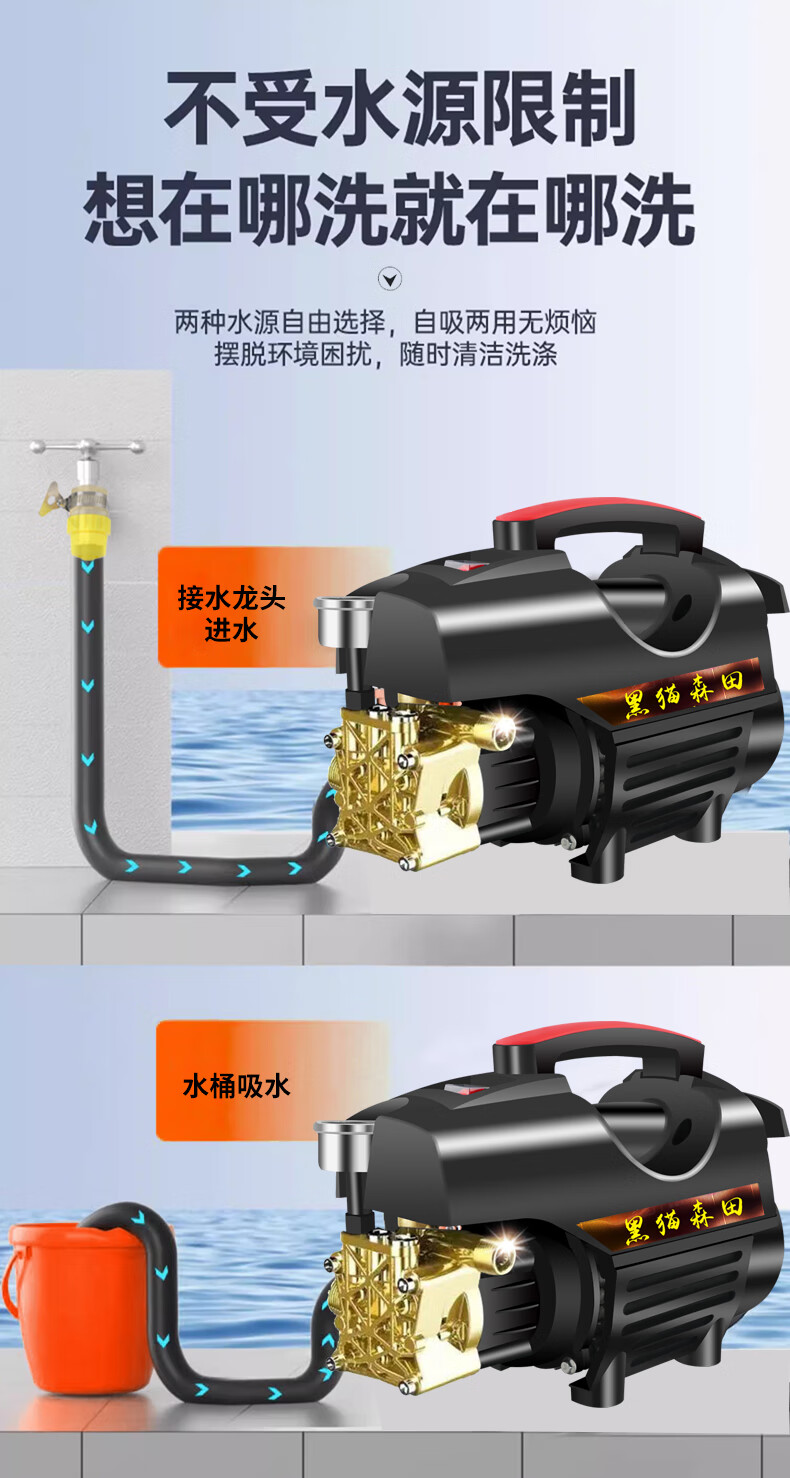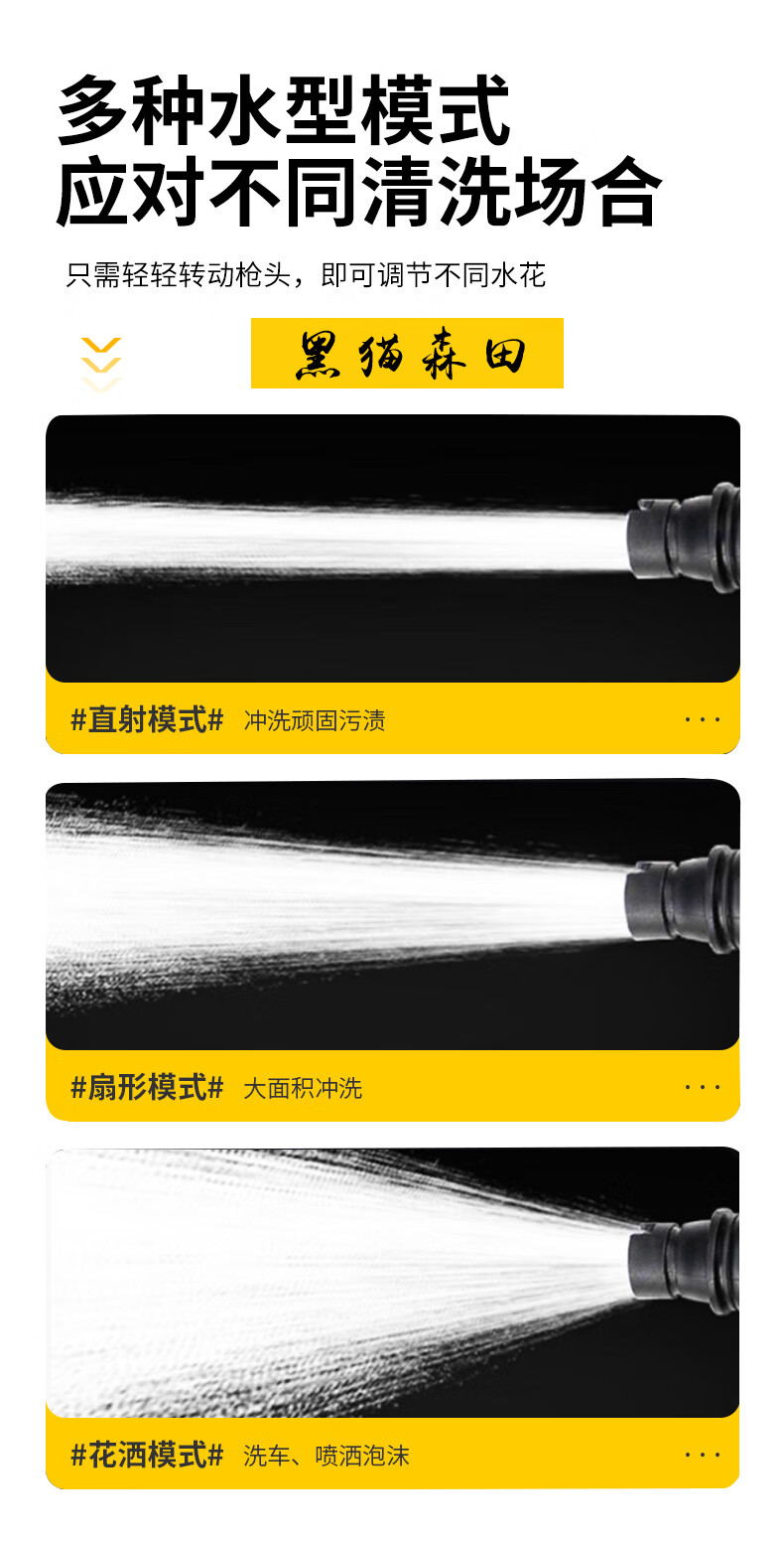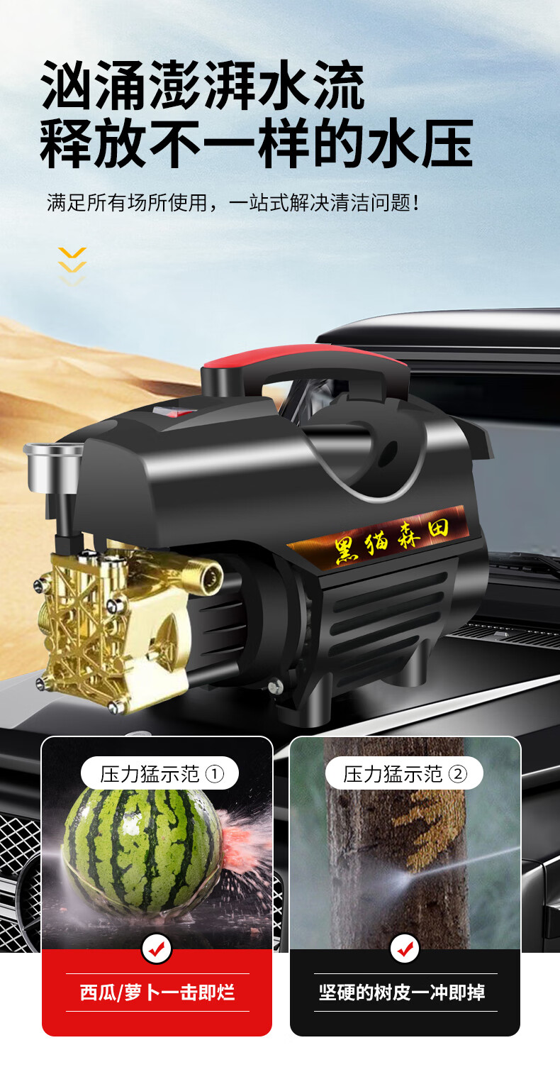 Black Cat Morita household high-pressure car washing machine 220V powerful flushing floor spray gun cleaning machine brush car washing tool full set of water gun 2800W long water gun + 8 meter tube + foam pot