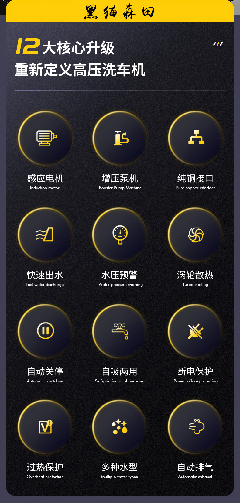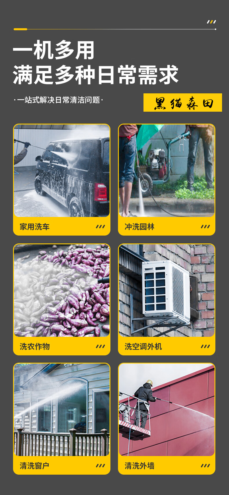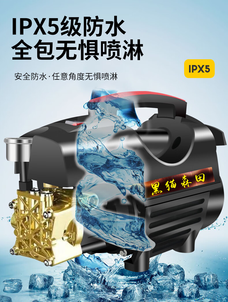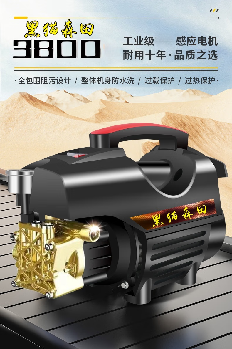 Black Cat Morita household high-pressure car washing machine 220V powerful flushing floor spray gun cleaning machine brush car washing tool full set of water gun 2800W long water gun + 8 meter tube + foam pot