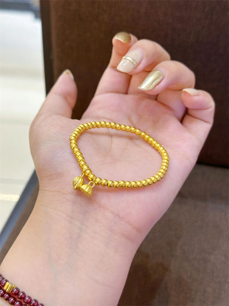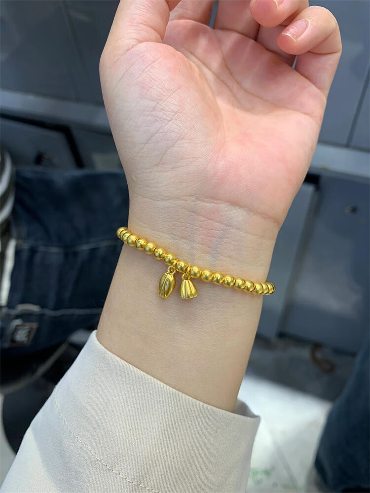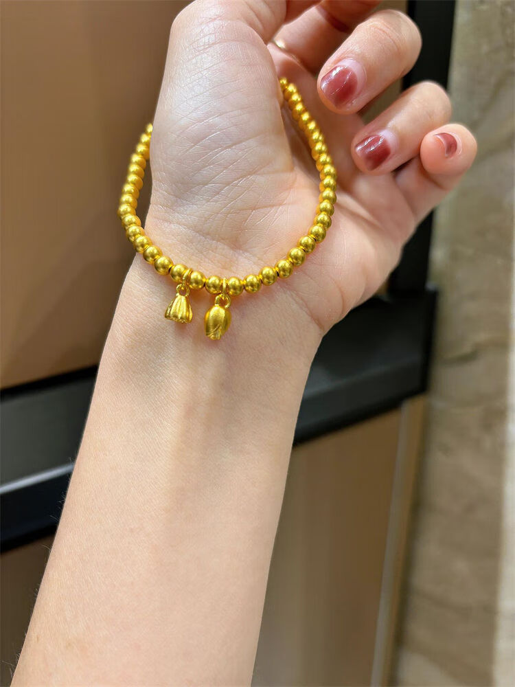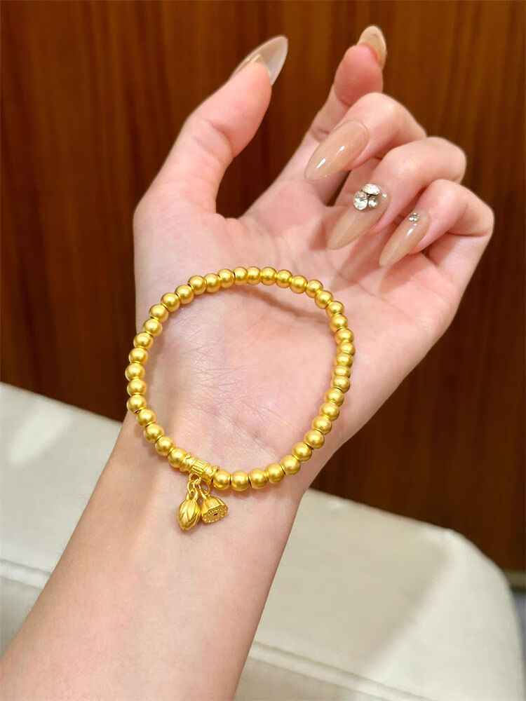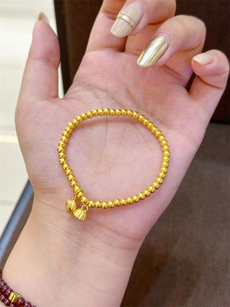 Only double ancient method inherited gold-plated silver two-life joy bracelet for women, fashionable and simple lotus lotus rope transfer bead bracelet bracelet two-life joy lotus bracelet, gold-filled about 0.4 grams