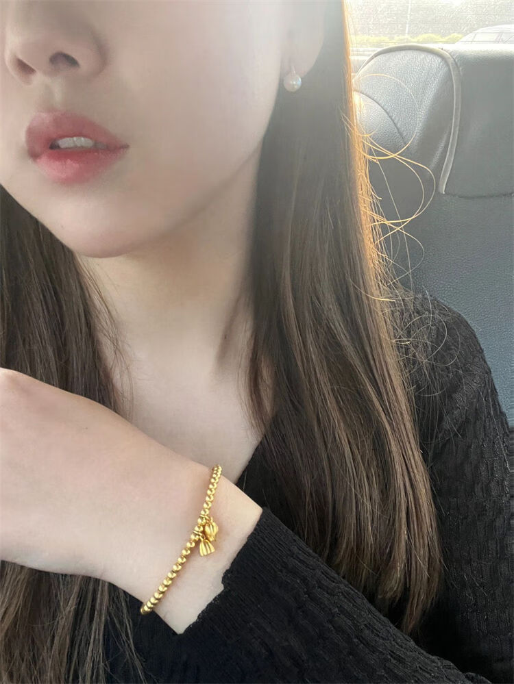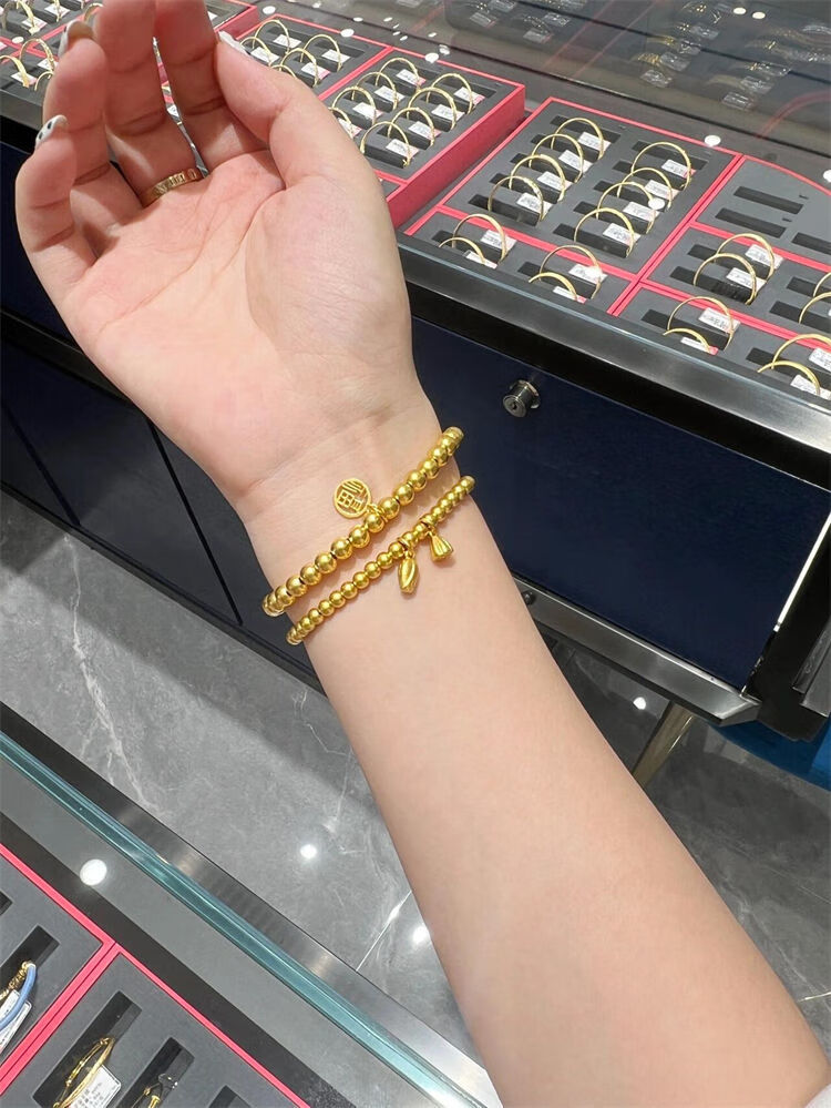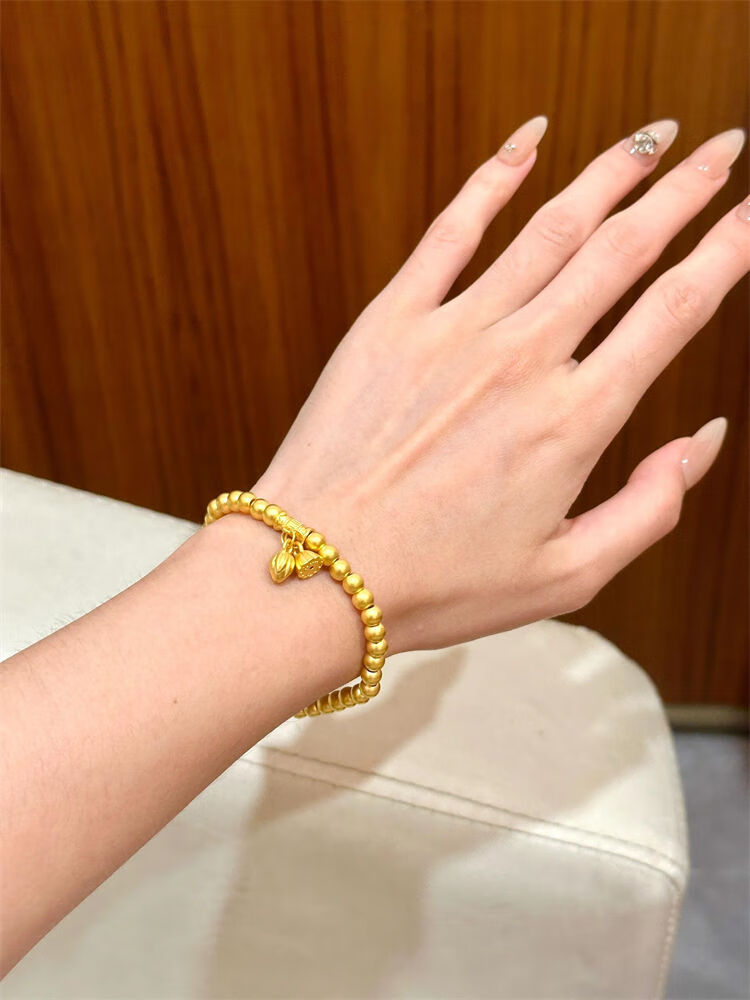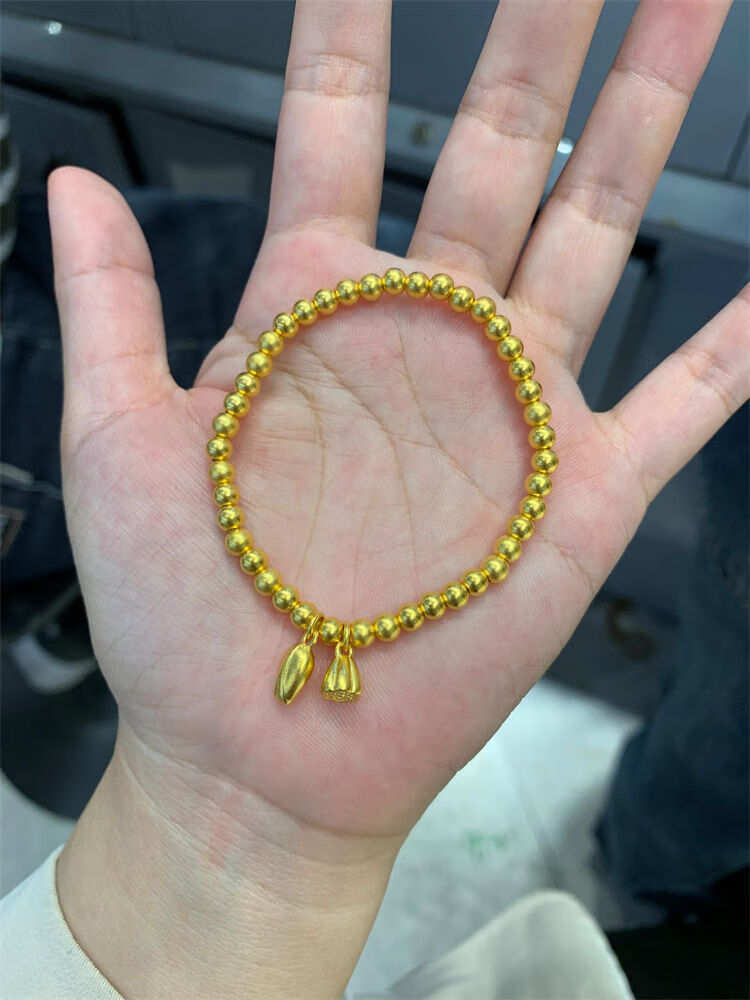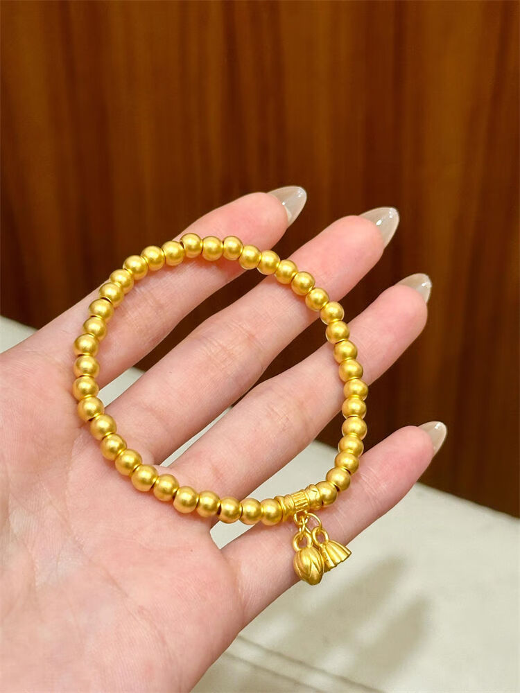 Only double ancient method inherited gold-plated silver two-life joy bracelet for women, fashionable and simple lotus lotus rope transfer bead bracelet bracelet two-life joy lotus bracelet, gold-filled about 0.4 grams