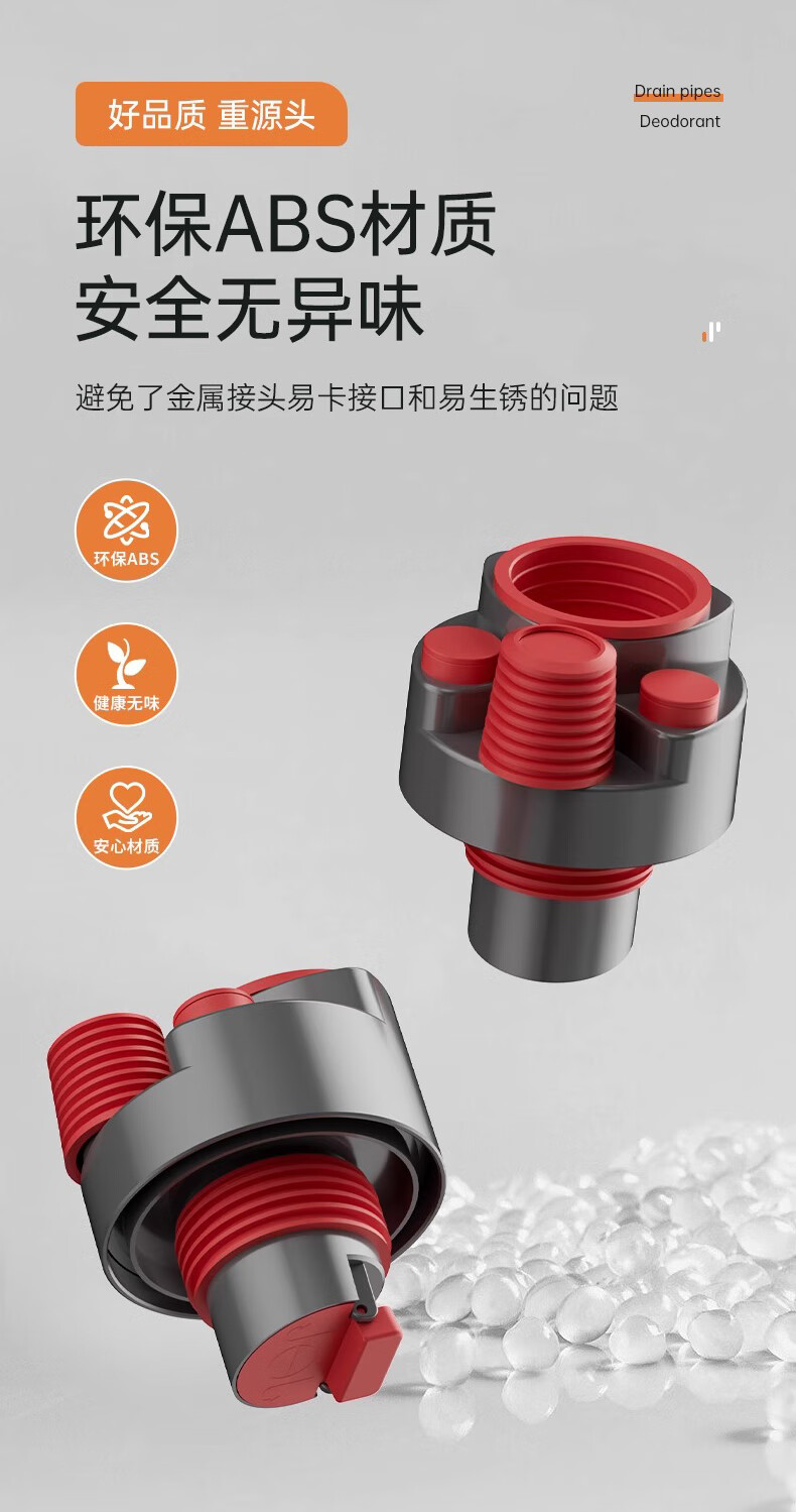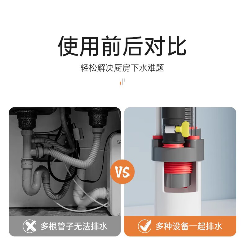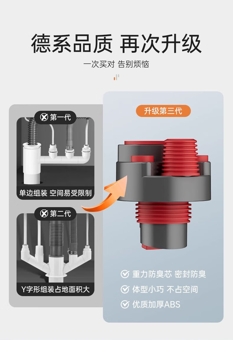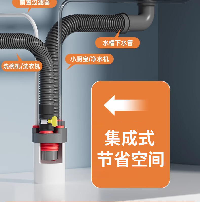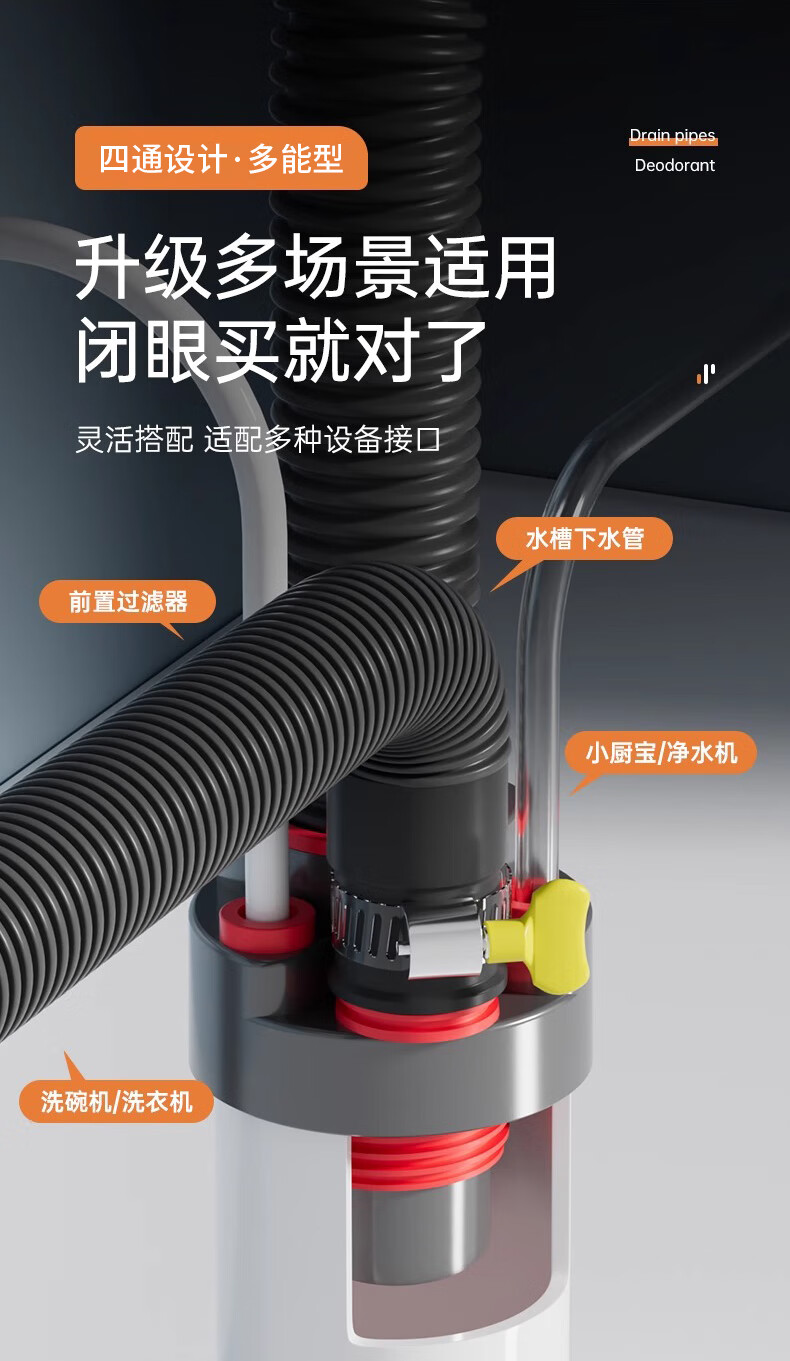 GuGuGo Germany sewer anti-reflux artifact washing machine drain three-way kitchen drain pipe three-in-one joint gray red kitchen 4-way sink + dishwasher + water purifier + front