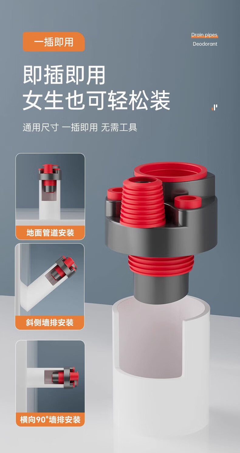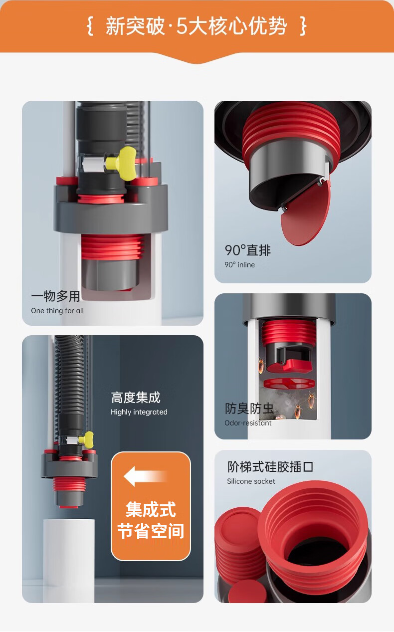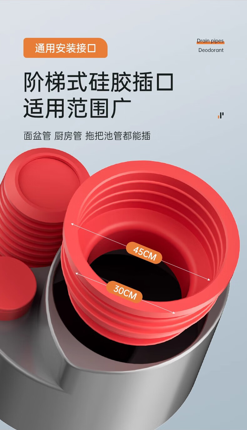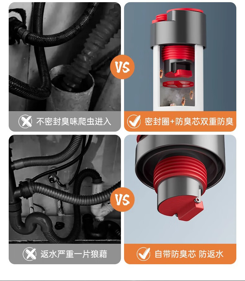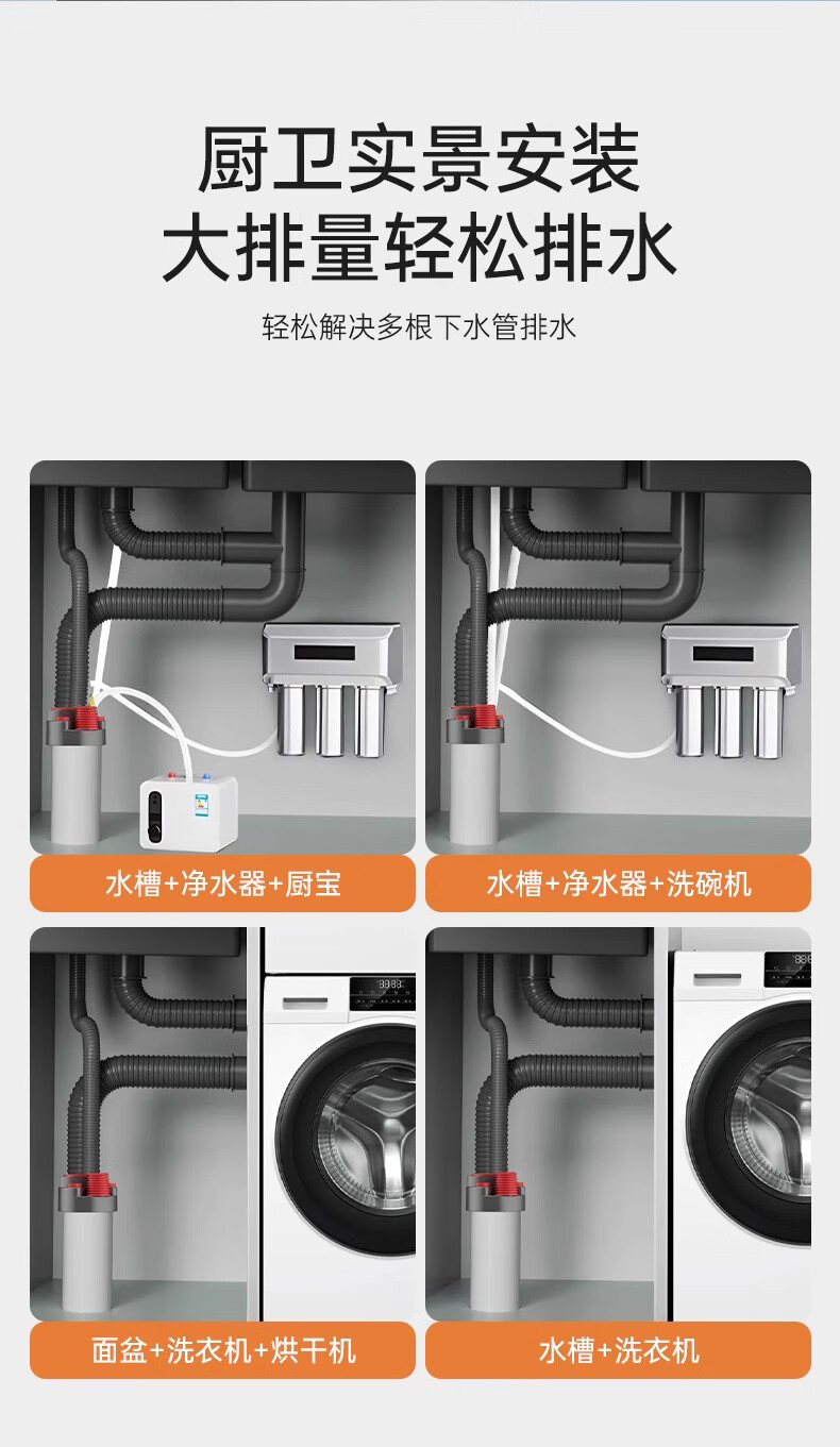 GuGuGo Germany sewer anti-reflux artifact washing machine drain three-way kitchen drain pipe three-in-one joint gray red kitchen 4-way sink + dishwasher + water purifier + front