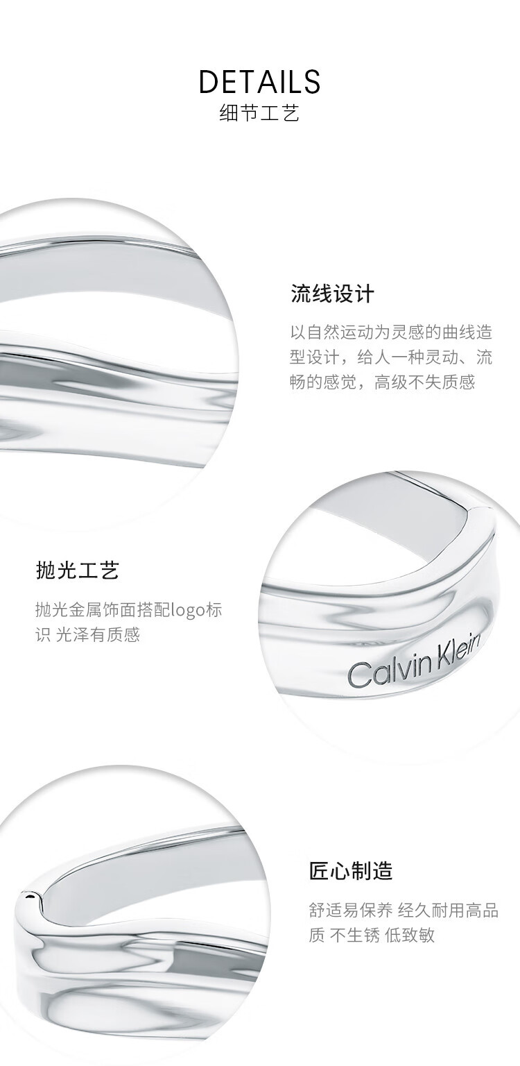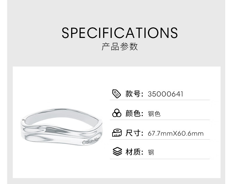 CAOX CalvinKlein official CK bracelet for women, simple fashionable design bracelet for women, steel color 35000641