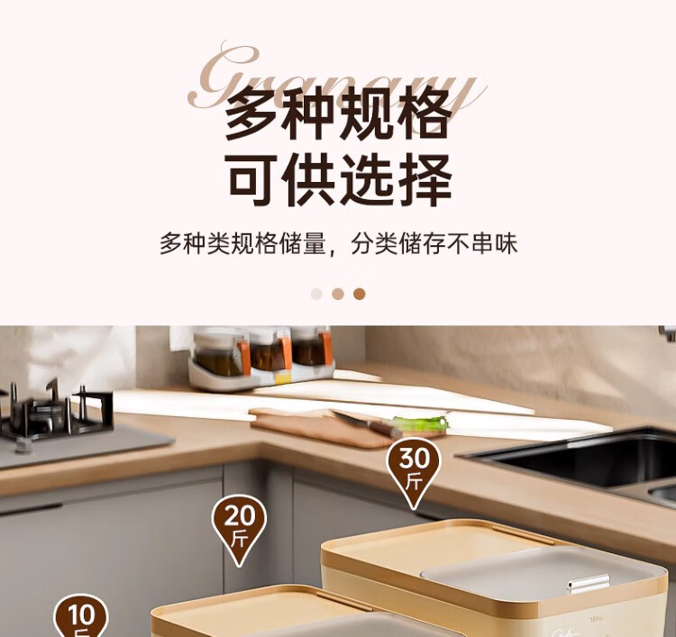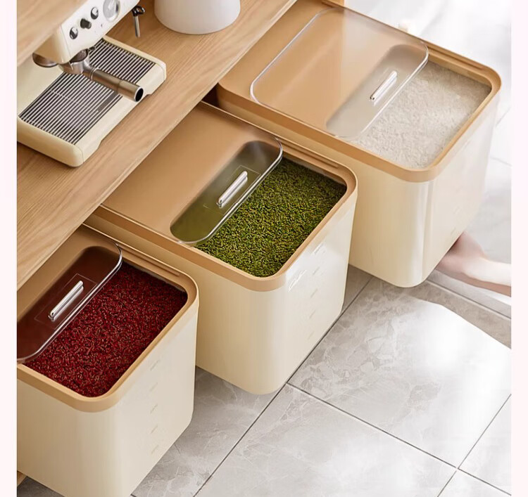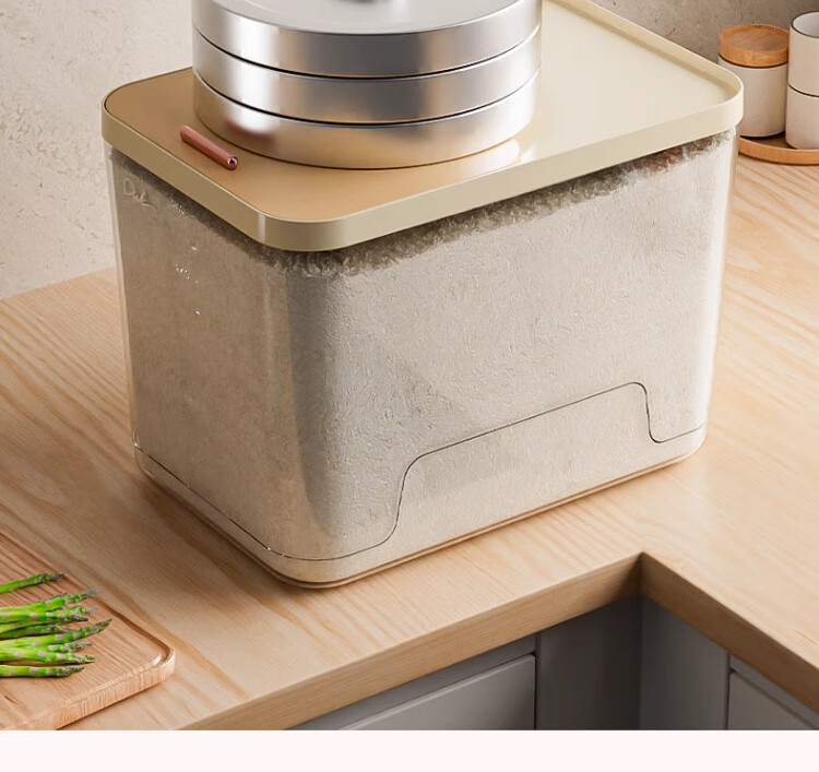 Axco 2026 new rice bucket household insect-proof and moisture-proof sealed flour storage tank container rice box rice tank storage box thickened upgraded light luxury white 30Jin Jin equals 0.5 kg