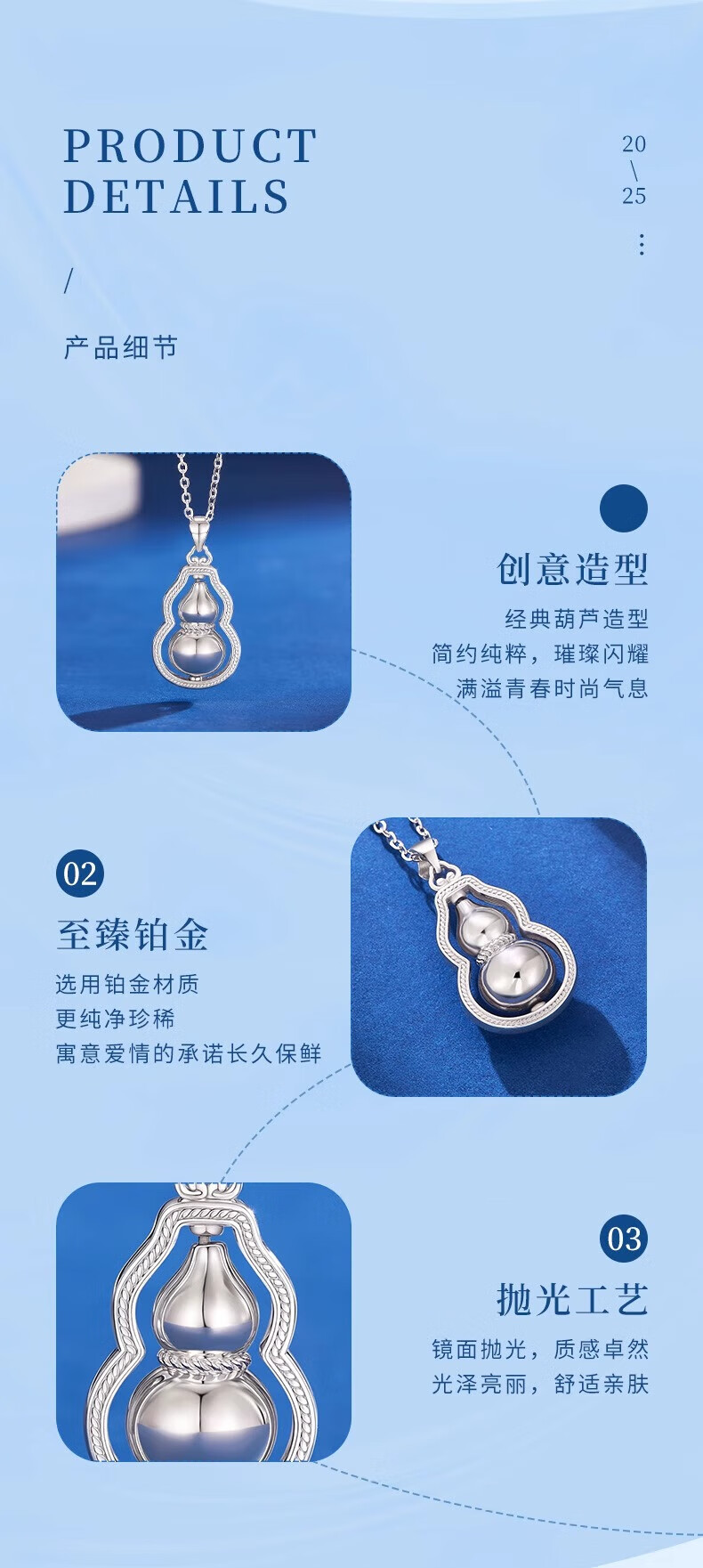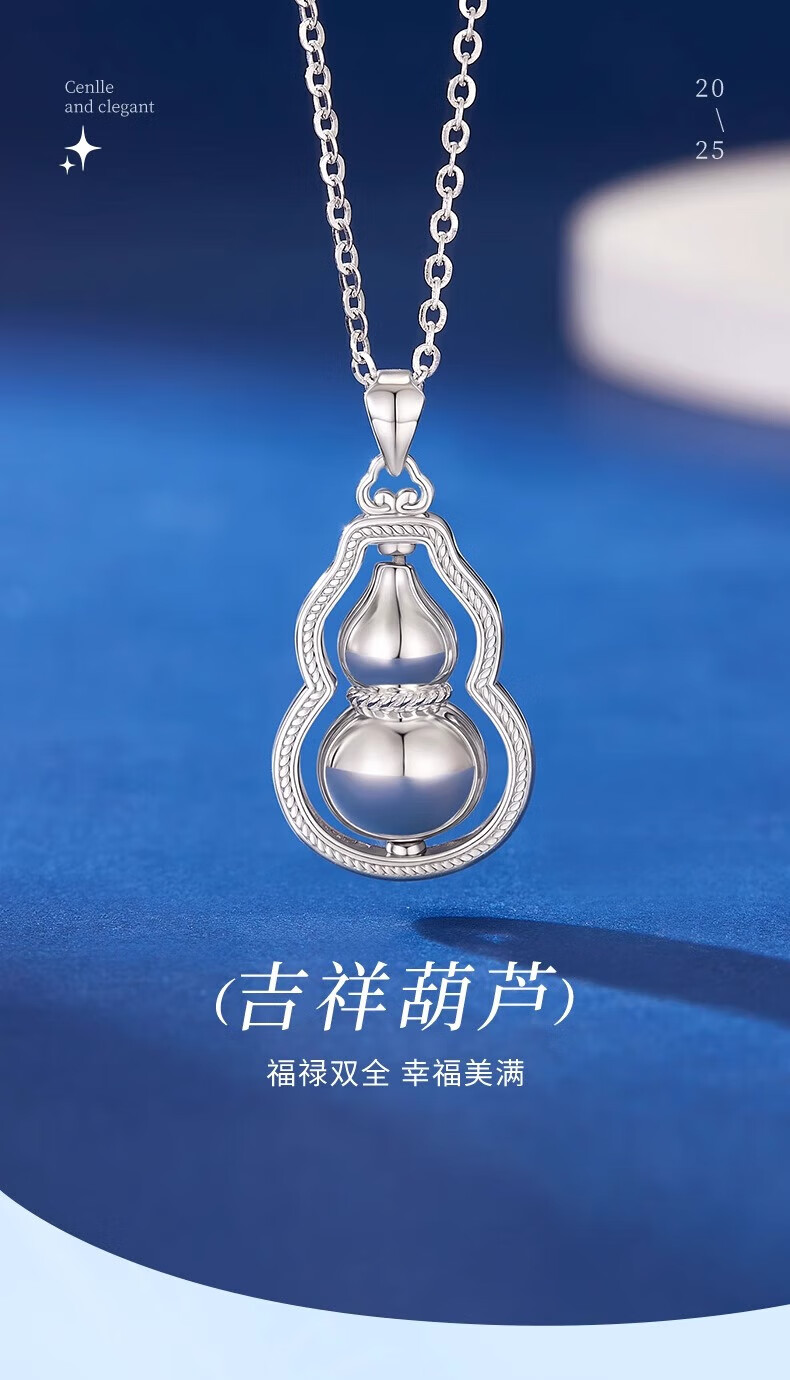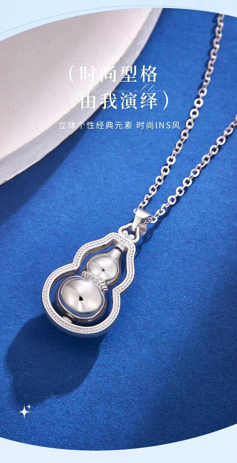 Lao Fengxiang PT950 platinum Fulu pendant necklace for women, platinum versatile lock, Valentine's Day birthday gift for girlfriend and wife, platinum Fulu pendant, about 6.9g, free sterling silver chain + brand gift box